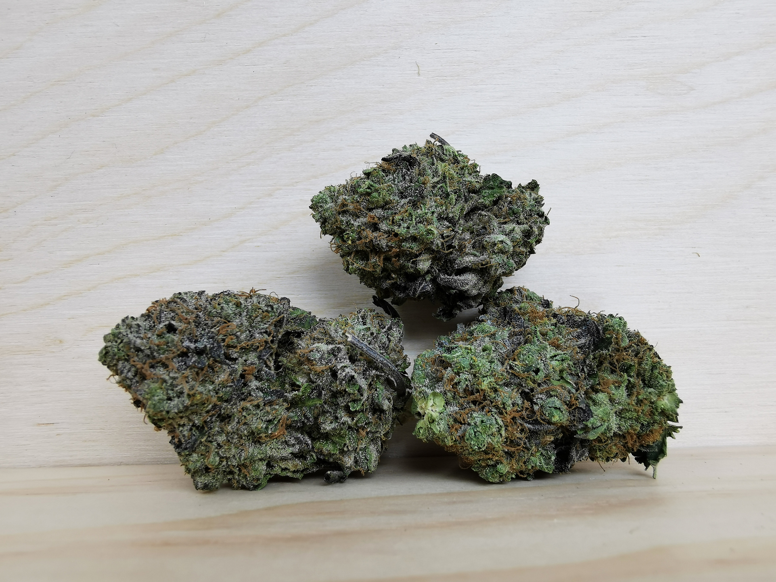 If this happy strain evokes images of childhood board games, it’s no accident. It’s mostly sativa, a crossbreed of Granddaddy Purps and Platinum Cookies. Those genes make for an upbeat, stimulating high that spurs creativity and provides energy for daytime tasks. Euphoria is the prominent effect when smoking Candyland, with a strong mood boost and some relaxation. The exact sativa-to-indica ratio of this strain is unclear, but it contains as much as 24% THC, making it a fairly powerful choice. CBD levels are lower but could still be useful in treating seizures and other conditions. Candyland as a strong sweet flavor and smell, with an earthy, spicy undertone. Its appearance is compact and camouflage-colored, with flecks of gold and shimmering trichomes. It’s an ideal strain for treating anxiety and depression, along with bipolar disorder, chronic pain, and ADHD. Dry mouth is a distinct possibility, as are dry eyes and dizziness, while paranoia is less likely. Best for daytime activities, Candyland is a sweet treat any time of day. It’s most popular on the West Coast, in Colorado, and in Michigan.