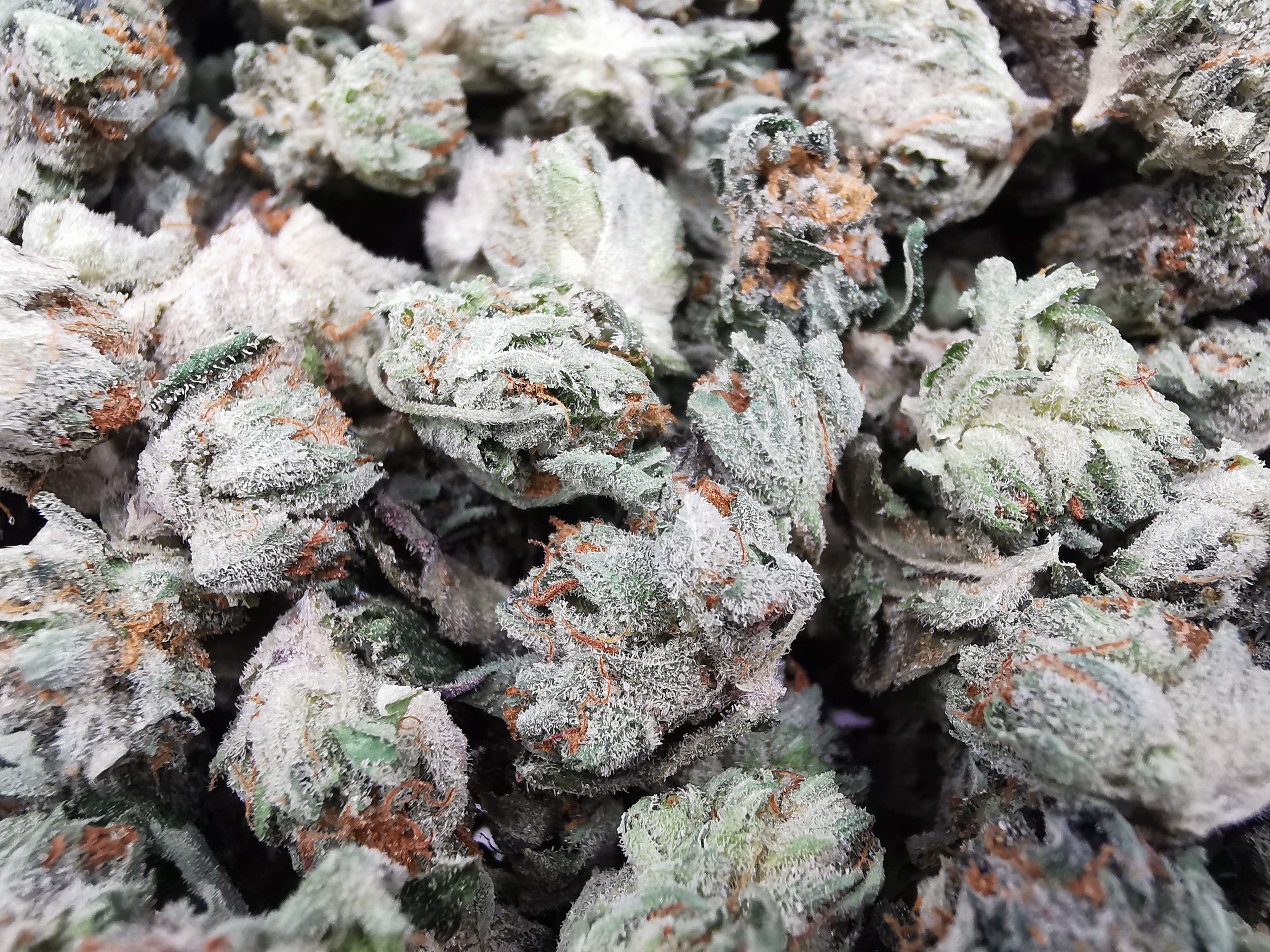 With a near-even balance between sativa and indica (sativa/indica ratio of 45/55), Chemdawg, also known as Chemdog, delivers on both fronts. A clear cerebral high drives creativity while a stony, sleepy body high fights insomnia and relaxes the muscles. This strain has THC levels up to 19%, meaning it’s more potent than most. It has a powerful spicy, plant-like taste and smell with a hint of diesel; the aroma alone can alert snoopy neighbors to even a carefully concealed pot grow. Not surprisingly, Chemdawg is used to produce Sour Diesel, one of the world’s most popular strains. Little is known about Chemdawg’s history or genetics, though there are urban legends involving a Grateful Dead concert, a handful of seeds, and a grower named Chemdog. Best for anxiety and pain, this strain is also helpful with depression and ADHD, as well as migraines, arthritis, and PMS. Dry mouth and dry eyes are possible when using this strain, while other side effects are less likely. Chemdawg is most popular on the West Coast, in Nevada, and in Colorado. It’s possible to find on the black market but doesn’t come around very often.