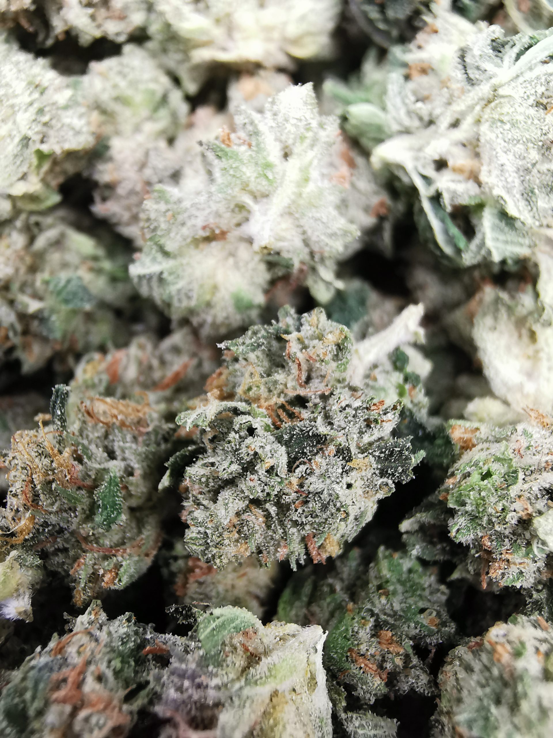 Gas flower, pine and earthy nose, smaller buds are coated with trichome.