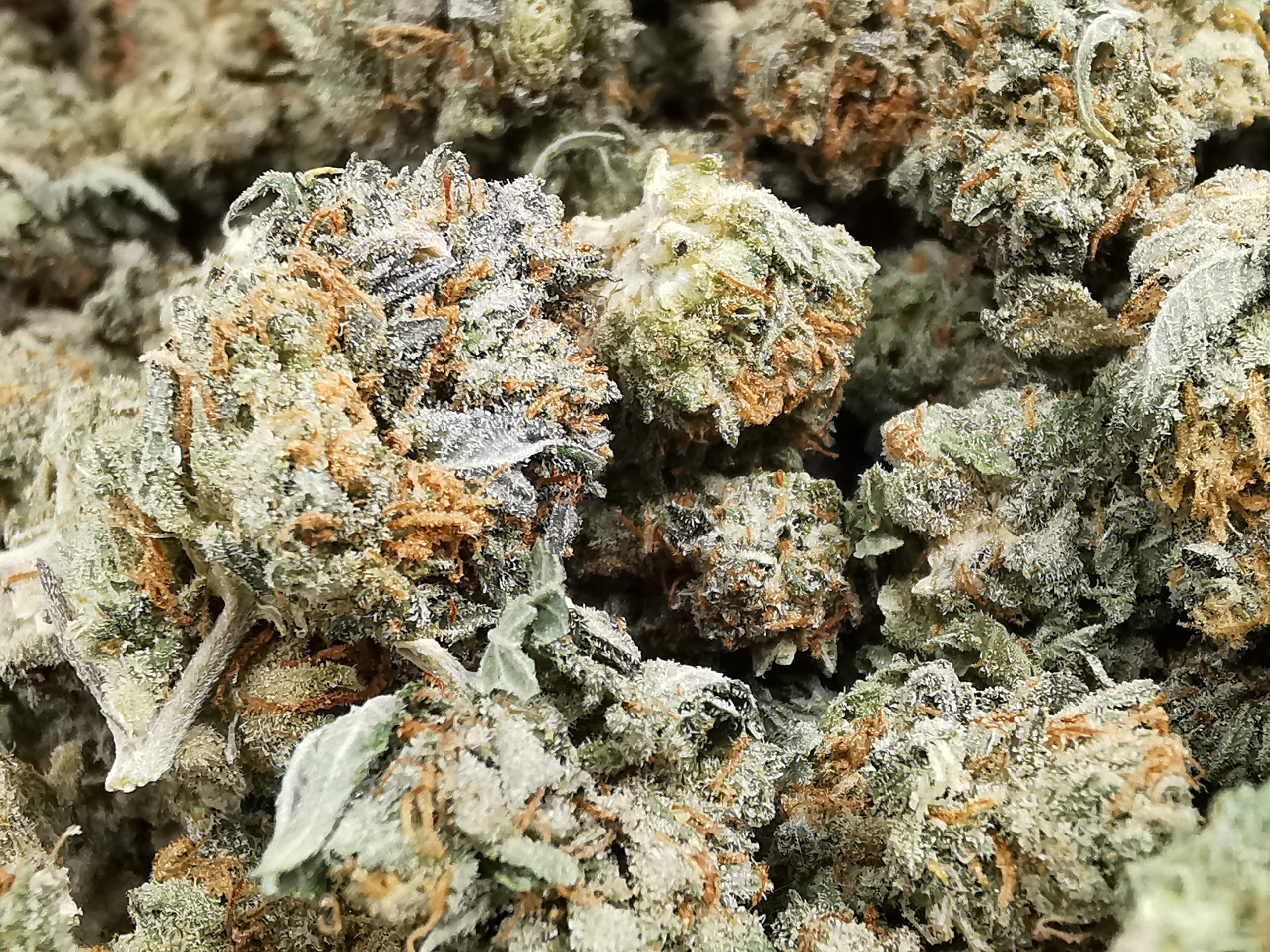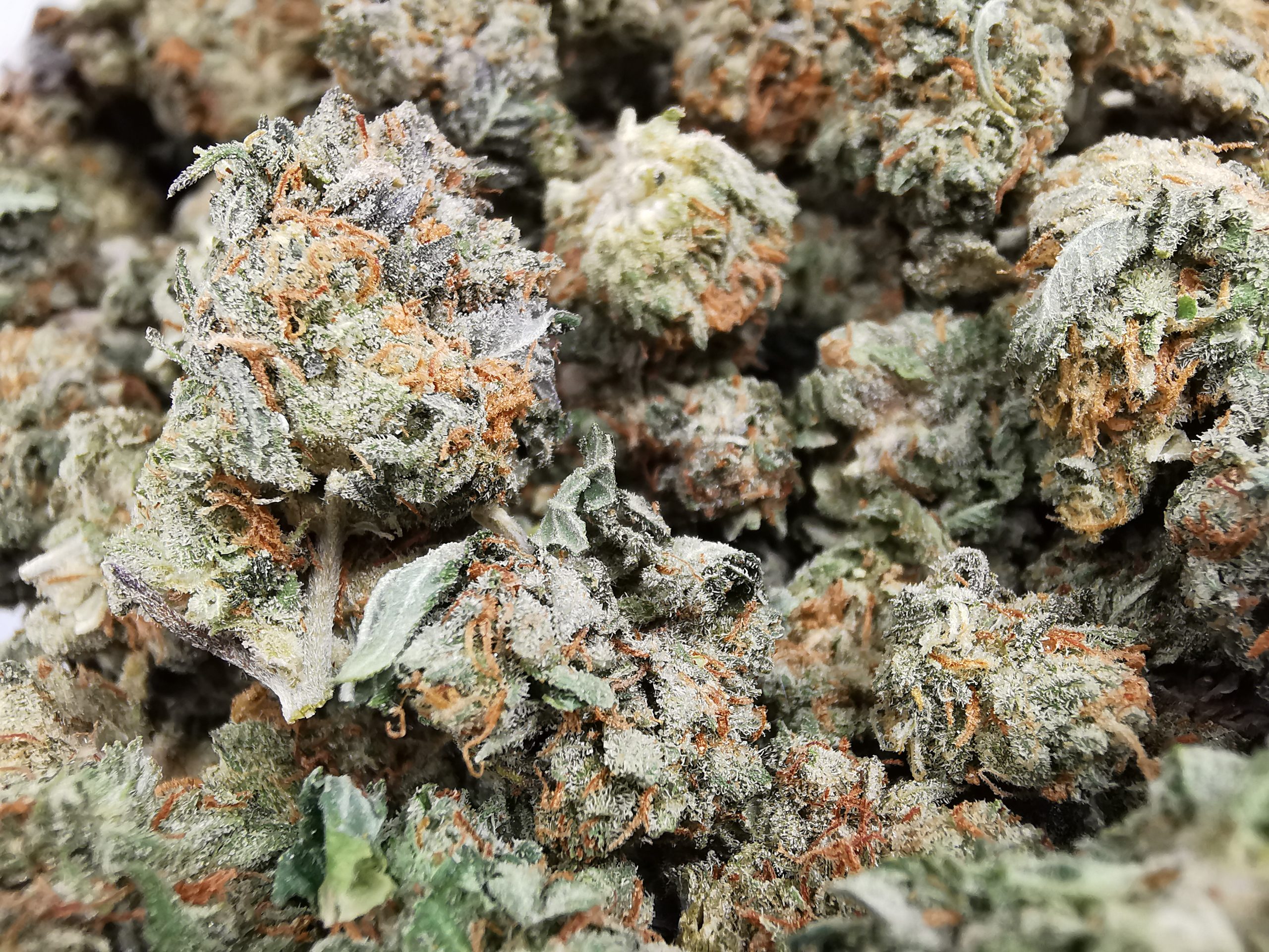 Grease Monkey is an indica dominant hybrid strain created through crossing the classic Gorilla Glue #4 with the delicious Cookies & Cream strain. This potent bud brings on the powerful effects and highly addictive flavor, flawlessly fusing those of its parent strains. With each rich inhale comes flavors of nutty vanilla and sweet skunky diesel. The aroma is just as delicious with an earthy pungency accented by sugary skunky diesel and a touch of vanilla. The Grease Monkey high is a creeper, building up behind the eyes before suddenly taking hold. You’ll suddenly feel a slam to the head of euphoric relaxation that lulls you into a mental state of calm and haze. This effect will quickly become sleepy, easing both mind and body into a completely sedated state that’s calming and relaxing. Thanks to these effects and its super high 25-27% average THC level, Grease Monkey is the perfect choice to treat conditions such as chronic pain, appetite loss or nausea, insomnia, headaches or migraines, and inflammation. This bud has fluffy tapered forest green nugs with sparse orange hairs and a coating of tiny clear crystal trichomes.