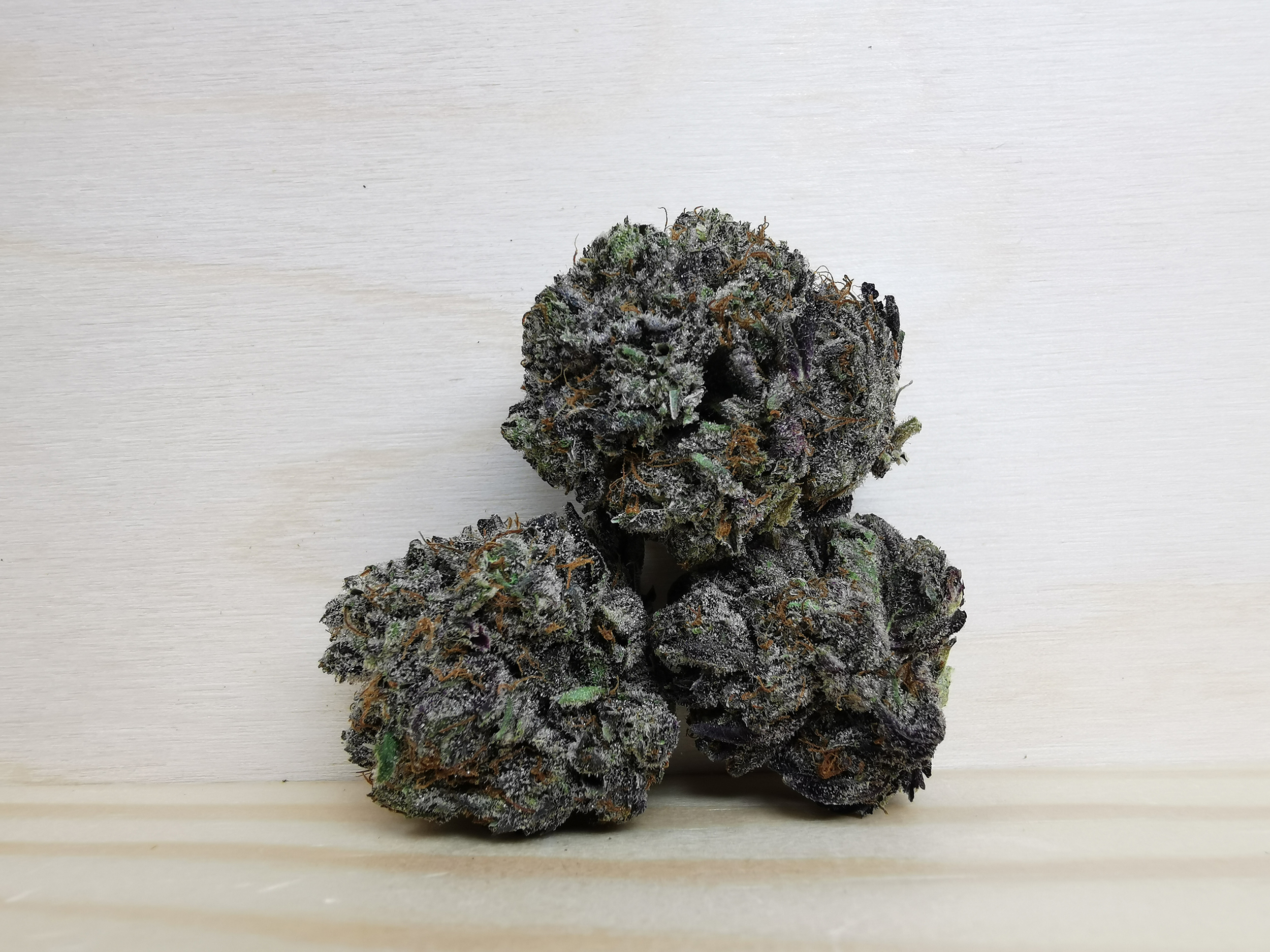 Jelly Breath is a rare heavily indica dominant hybrid strain (90% indica/10% sativa) created through a cross of the classic Mendo Breath X Do-Si-Dos strains. If you’re a fan of a delicious fruity flavor, look no further. Jelly Breath packs a sweet and fruity taste with hints of fresh berries and flowers. The aroma is of earthy flowery incense with a berry overtone that turns slightly spicy as the nugs are burned. Jelly Breath has a super relaxing high that’s perfect for easing tension and killing aches and pains. You’ll feel a lifted onset that fills the back of your neck and head with a light tingle that warms the mind and boosts the mood. This buzzing quickly spreads throughout the rest of your body, lulling you into a deeply relaxing state that won’t cause too much sedation. Rather, you’ll be totally relaxed and at ease with the world around you as you settle deeper and deeper into a state of physical calm. With these effects and its insanely high 30-33% average THC level, Jelly Breath is perfect for the experienced patient suffering from chronic pain, depression, muscle spasms or cramps and chronic fatigue. Jelly Breath buds have spade-shaped dusty green nugs with lots of orange hairs and a coating of thick frosty milky white crystal trichomes.