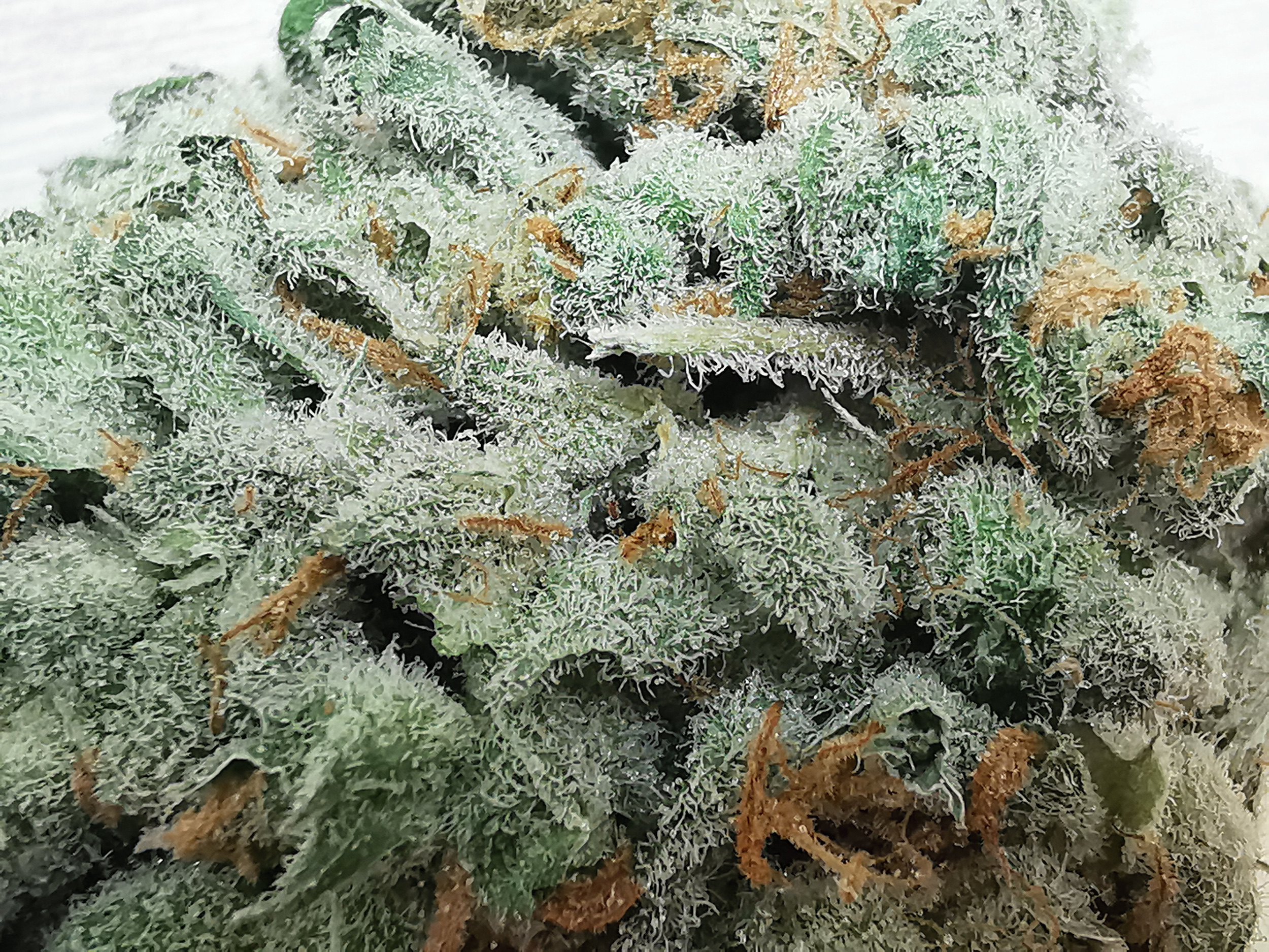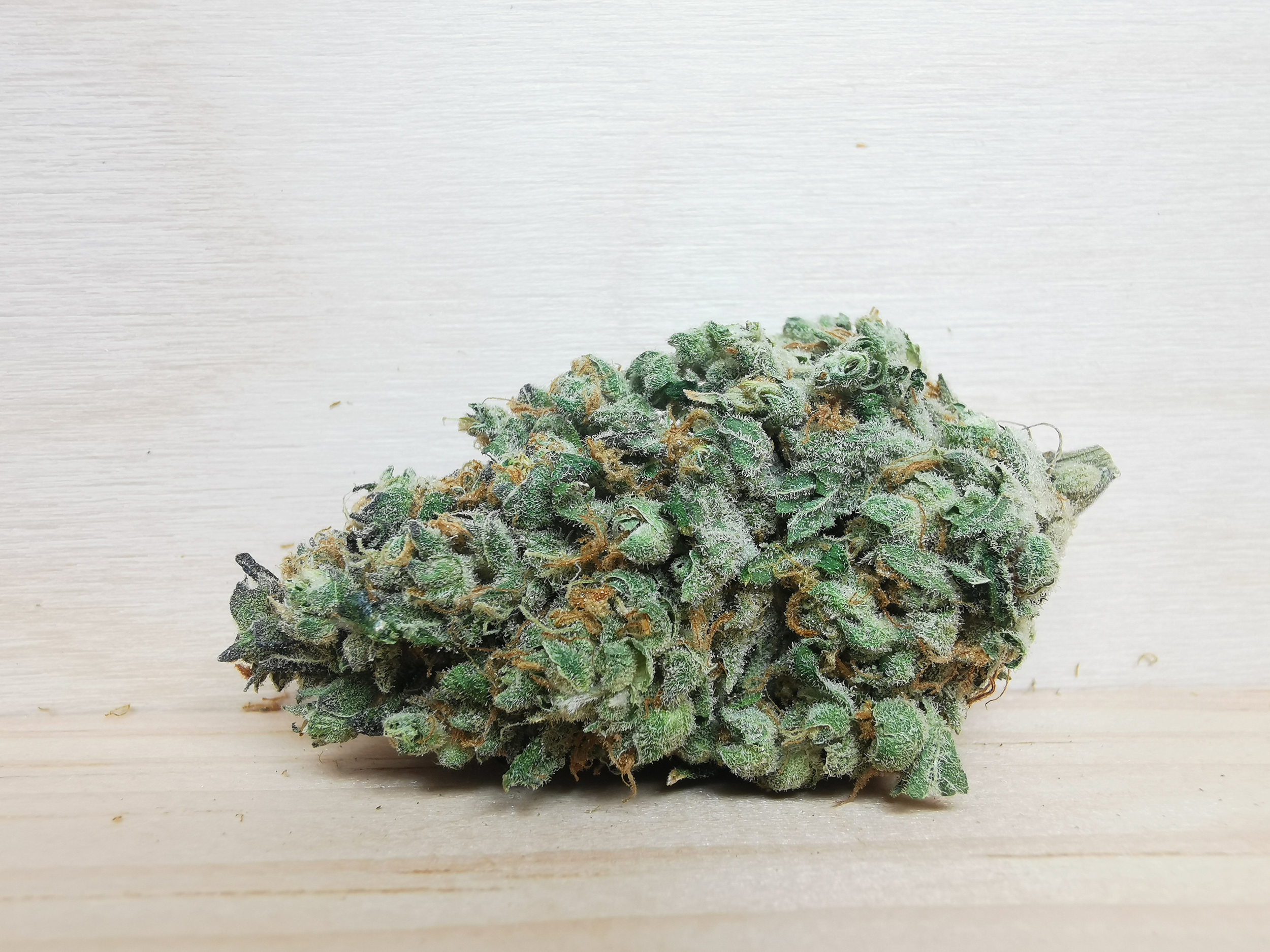 Mimosa is a sativa dominant hybrid strain (70% sativa/30% indica) created through crossing the classic Purple Punch X Clementine strains. If you’re looking for an early morning pick-me-up (minus the alcohol), this bud is totally for you. Mimosa packs bright and happy daytime effects that are perfect for chasing sleep away and giving you a positive mood as you take on your day. You’ll feel an energetic, clear-headed lift at the onset of the high, which fills your brain with euphoric motivation and laser-sharp focus. A light tingle accompanies these effects, resting mainly in the body rather than your head. With these effects and its high 19-27% average THC level, Mimosa is said to be the perfect choice for treating those suffering from conditions such as depression, chronic stress or anxiety, ADD or ADHD, migraines, and nausea or appetite loss. This bud has a sweet and sour tropical citrus flavor with a light berry exhale, almost like a fresh mimosa! The aroma follows the same profile, although with an influx of woody florals and fresh earthy herbs. Mimosa buds have rounded dense small olive green nugs with lots of dark orange hairs and a coating of bright white crystal trichomes.