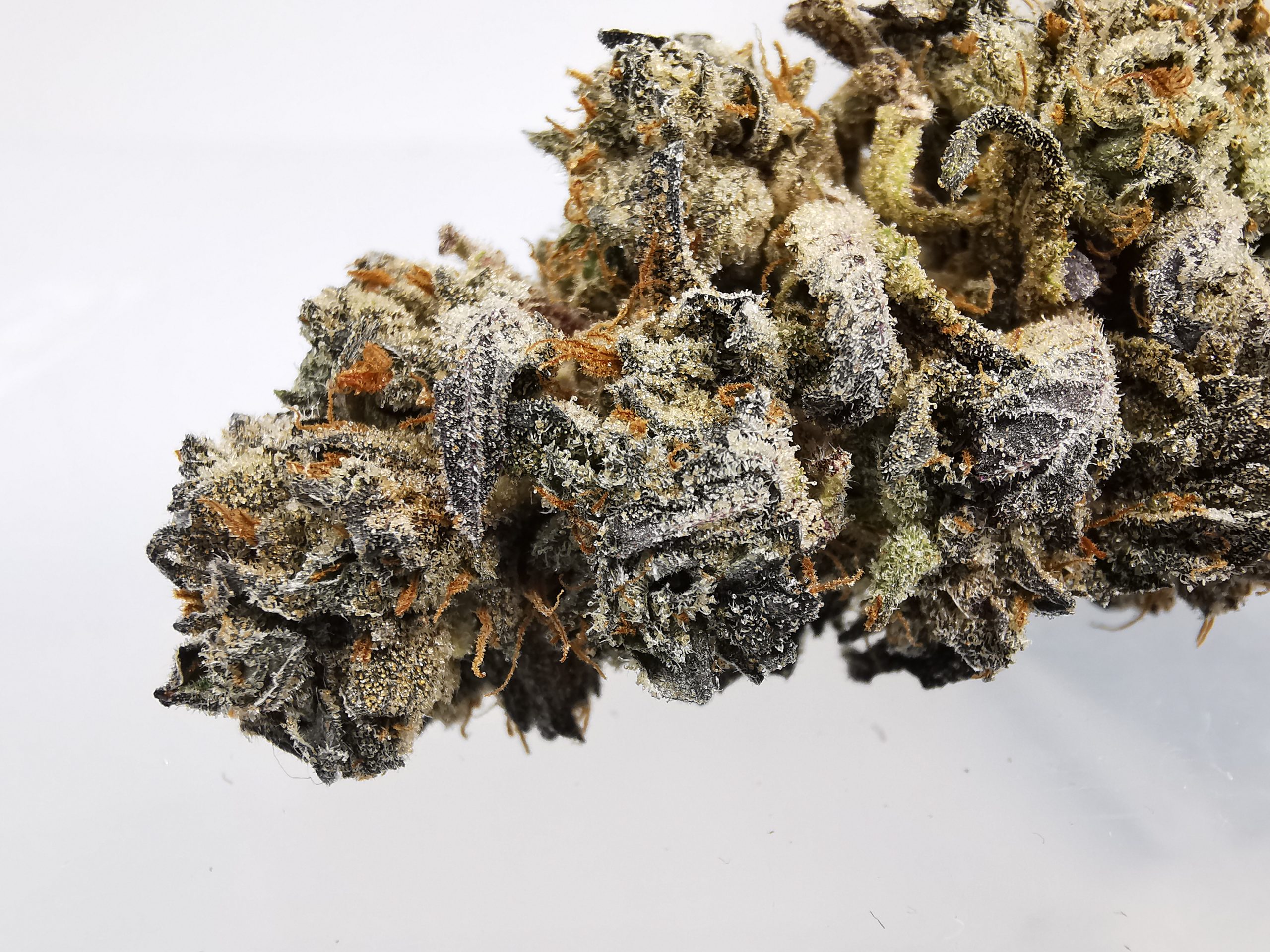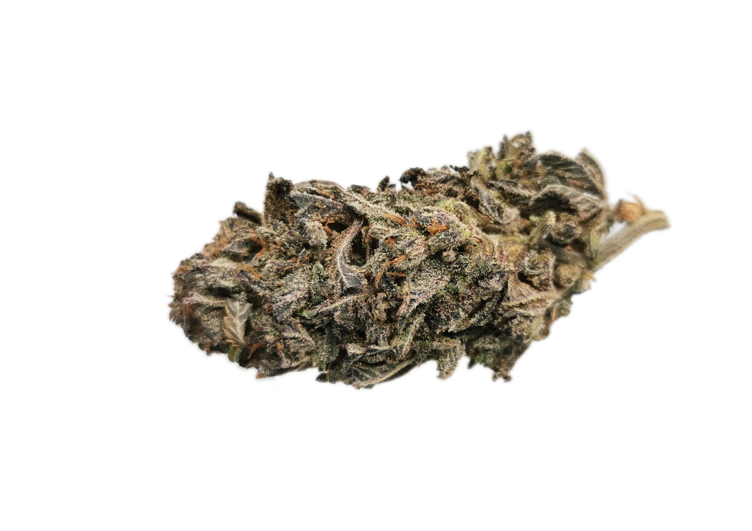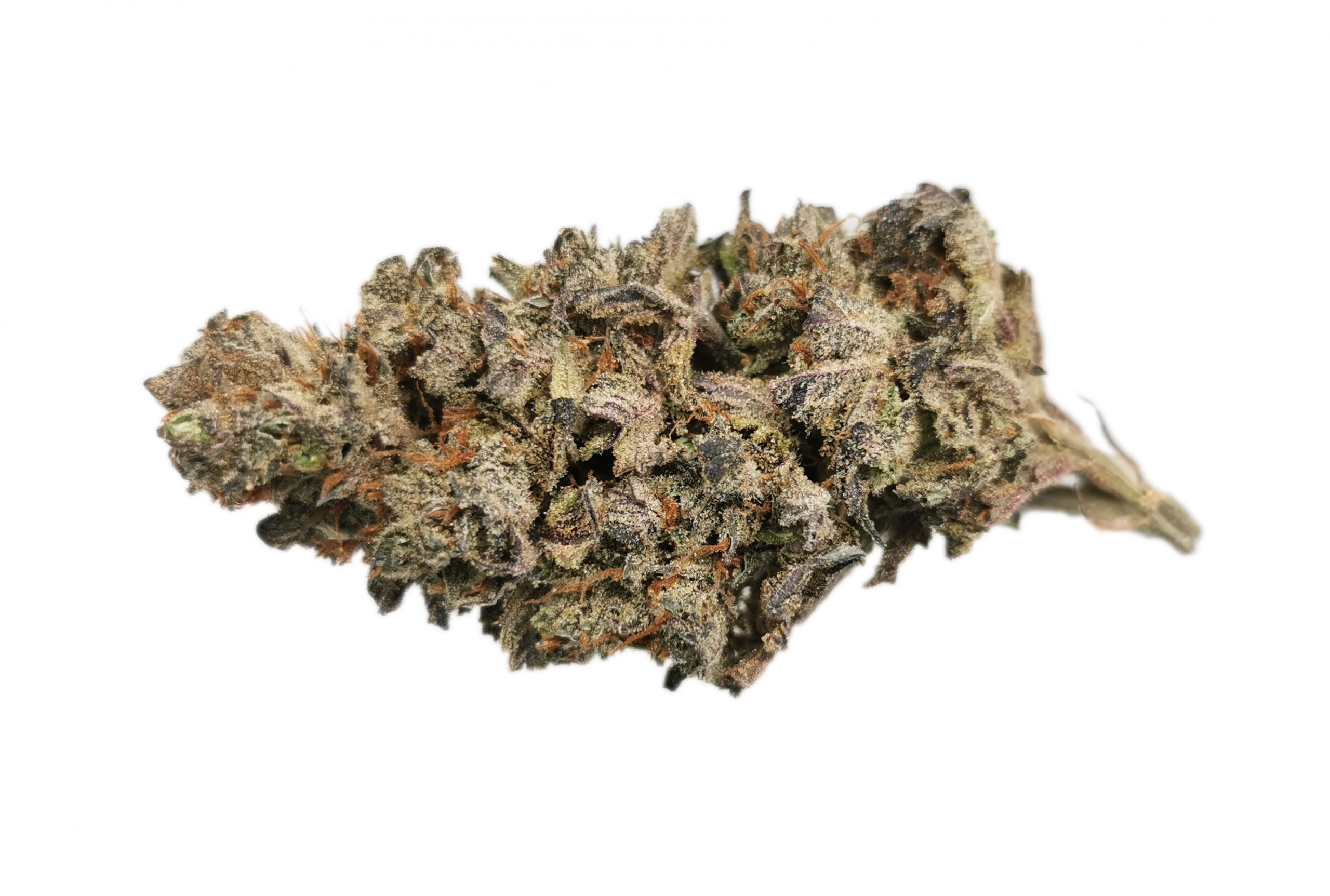Gelato is a slightly indica dominant hybrid (55% indica/45% sativa) strain created through a cross of the infamous Sunset Sherbet X Thin Mint Girl Scout Cookies strains. This dank bud is infamous for its insanely delicious flavor and hugely powerful effects that are fueled by a THC level that hits its low point at 20% on average. Gelato has a flavor that’s said to be much like a sweet sherbet, with fruity blueberry and orange flavors. The aroma is just as sickly sweet, with a lavender citrus berry bouquet that has a woody effect as the nugs are broken apart and smoked. Although it has a tasty flavor, Gelato is definitely best loved for its effects. Even with its slight indica dominance, the high is head heavy in nature and won’t leave you sedated or couch-locked. It starts with a cerebral head rush that hits you in the forehead with an uplifted euphoria and a sense of slightly focused energy. As this head high blissfully builds, a creeping body buzz will slowly wash over you, leaving you completely relaxed and calm with a sense of peace and well being. These powerful and surprisingly well balanced effects make Gelato the perfect choice for patients suffering from muscle spasms, chronic pain, inflammation, chronic fatigue, and headaches or migraines. Gelato buds have large and lumpy super dense grape-shaped dark forest green nugs with rich purple and orange hairs and a super sticky coating of visible resin droplets.