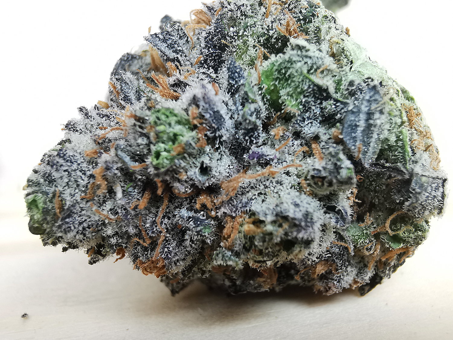 Purple Space Cookies is an indica dominant hybrid strain (80% indica/20% sativa) created through crossing the infamous Durban Poison X Girl Scout Cookies strains. Best known for its gorgeous appearance and super tasty flavor, Purple Space Cookies is one for the ages. This bud has super dense elongated grape-shaped dark olive green nugs with deep purple undertones, dark twisty hairs and a thick frosty blanketed coating of purple-tinted white crystal trichomes. As you pull apart each sparkling purple nugget, aromas of sweet and sugary cookies are released, all wrapped up with a delicious berry and grape overtone. The flavor is just as delightful, with sweet and sugary berry cookies accented by fresh grapes and nutty spices. The Purple Space Cookies is one that will have you flying high in no time at all. You’ll feel an influx of creative energy and lifted happiness hit you almost as soon as you exhale. This quickly expands into a giggly and giddy state that’s unfocused and hazy. A relaxing body high accompanies this mental lift, leaving you feeling fully calm from head to toe and without an ache or pain to complain about. With these effects and its high 20-25% average THC level, Purple Space Cookies is often chosen to treat chronic pain, insomnia, depression, chronic stress and mood swings.