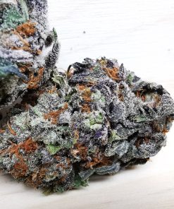 Raspberry Cookies is a rare slightly indica dominant hybrid strain (60% indica/40% sativa) created through crossing the delicious Cherry Kush X Girl Scout Cookies strains. With parents like these, you know you’re in for one insanely delicious flavor with this bud. Raspberry Cookies does not disappoint, with fresh nutty berry tastes and a hint of sweet earth as you exhale. The aroma follows a more pungent profile, with a nutty berry cookie overtone that’s accented by rich earth and a touch of diesel as the nugs are burned. The Raspberry Cookies high comes on soon after your first exhale, lifting your mind into a state of pure happiness and mental calm. Any negative or racing thoughts will immediately be pushed away, replaced with creativity and unfocused bliss. As your mind soars, your body will begin to drop off into a deeply relaxing state that leaves you couch-locked and slightly sedated. Thanks to these hard-hitting effects and its super high 22-25% average THC level, Raspberry Cookies is said to be perfect for treating conditions such as chronic pain, ADD or ADHD, fibromyalgia, insomnia, chronic stress or anxiety, and muscle spasms or cramps. This bud has tiny dense grape-shaped forest green nugs with bright orange hairs and a coating of frosty tiny white crystal trichomes.