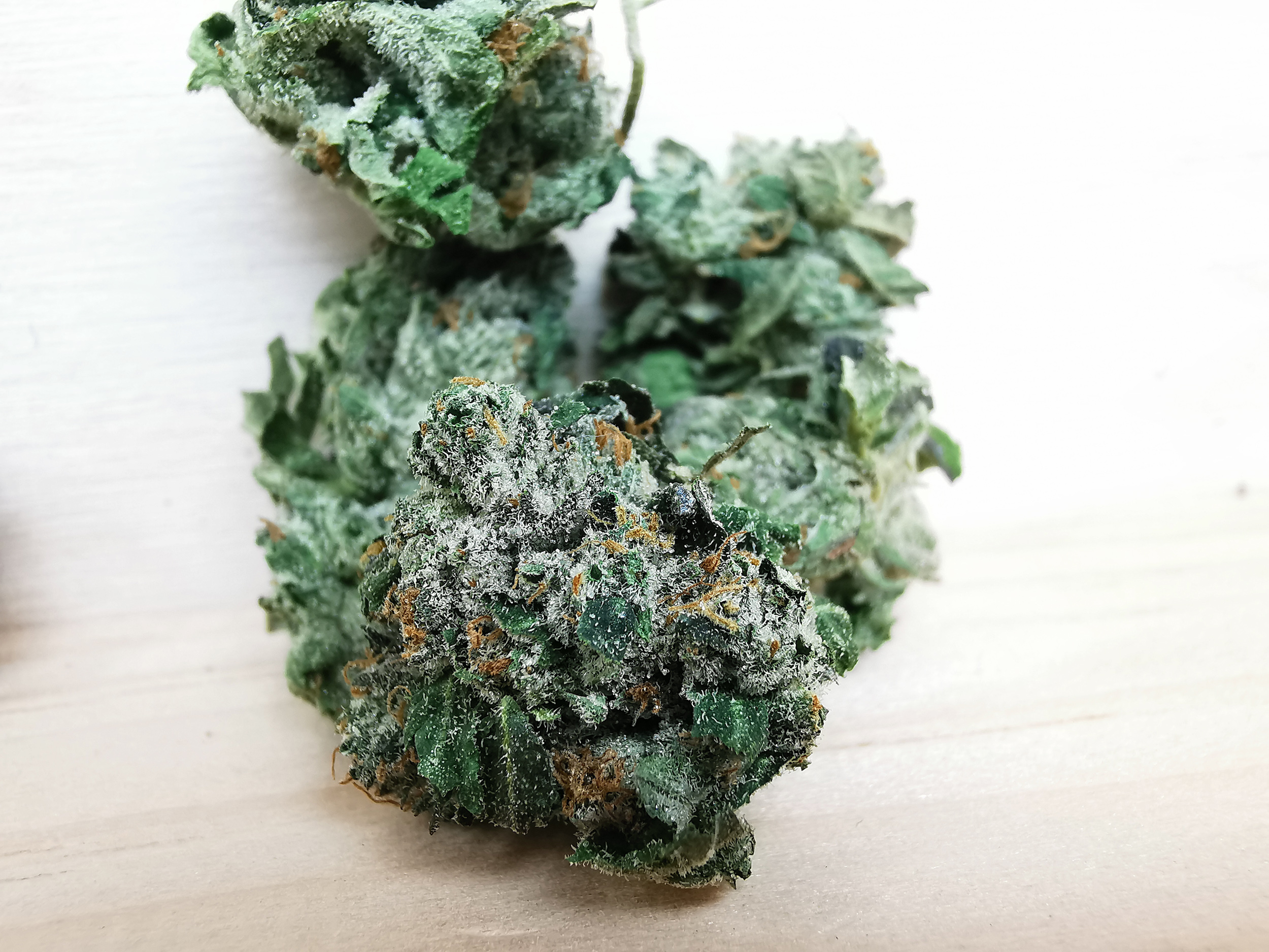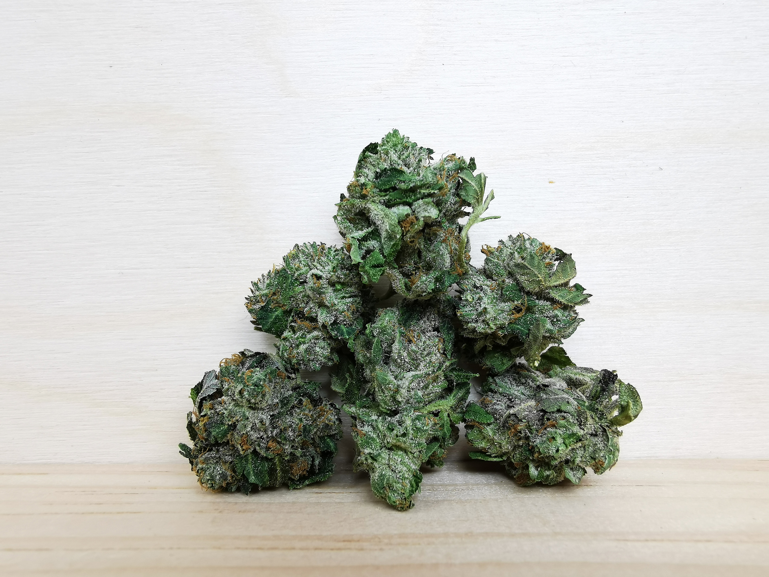 SFV OG Kush is a heavily indica dominant hybrid (90% indica/10% sativa) strain created through a cross of the classic SFV OG X Afghani strains. This celebrity child is often confused with its SFV OG parent due to the similarity in names, although it is a very different experience. SFV OG Kush is best known for its classic aroma and effects that pull from the OG Kush family. This bud has an enticing aroma of sweet skunky citrus with a hint of earthy pine as the nugs are broken apart and burned. The taste is of sweet lemony pine with a hint of pungent earth that intensifies upon exhale. The SFV OG Kush high is much like its parent strains, with heavy indica effects that are calming in nature. It starts with a slightly uplifted and euphoric onset that leaves you feeling happy with your head in the clouds and the tendency towards becoming spacey at times. A body buzz will start in your lower spine and slowly spread throughout the rest of your body in warming waves, leaving you completely relaxed and slightly sedated. Upon the comedown, you’ll be eased into a deep and peaceful sleep that lasts for hours on end. These effects and its powerful 19-25% average THC level make SFV OG Kush the perfect bud for treating chronic pain, insomnia, chronic stress or anxiety, mild to moderate cases of depression, and inflammation. This bud has small lumpy popcorn-shaped dark forest green nugs with sparse orange hairs and a super sticky coating of sweet syrupy resin.