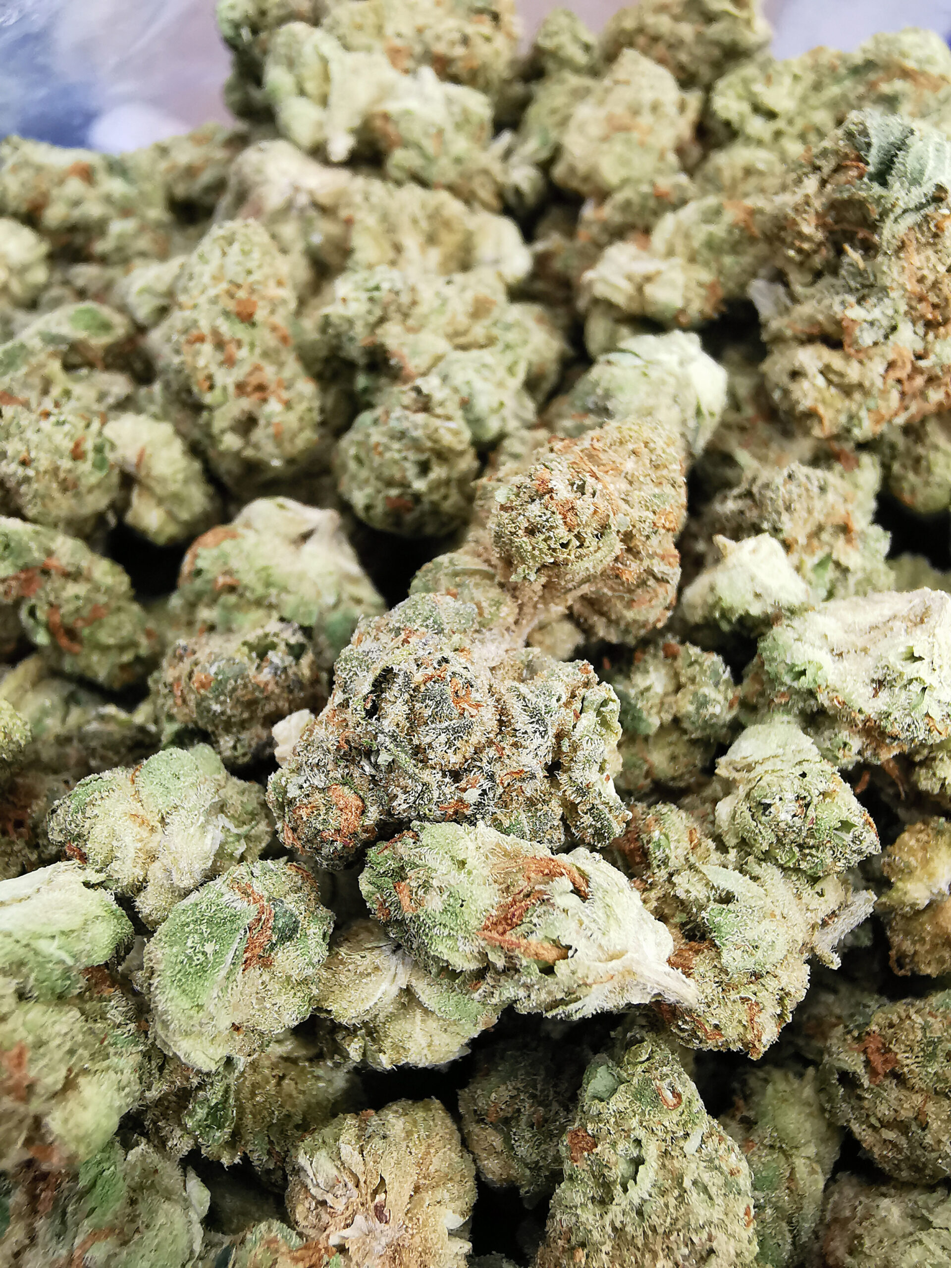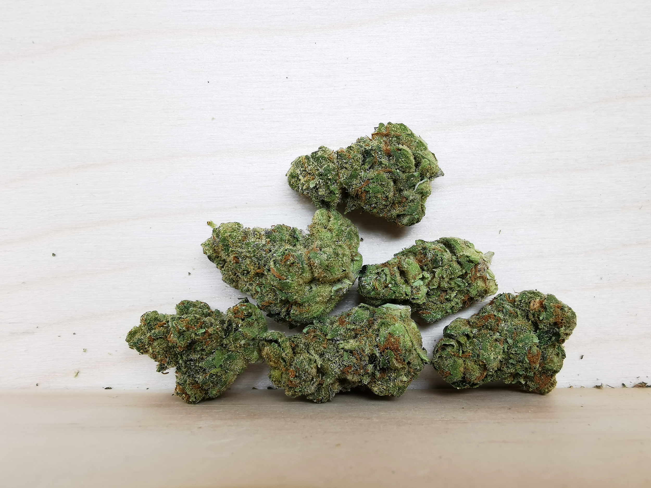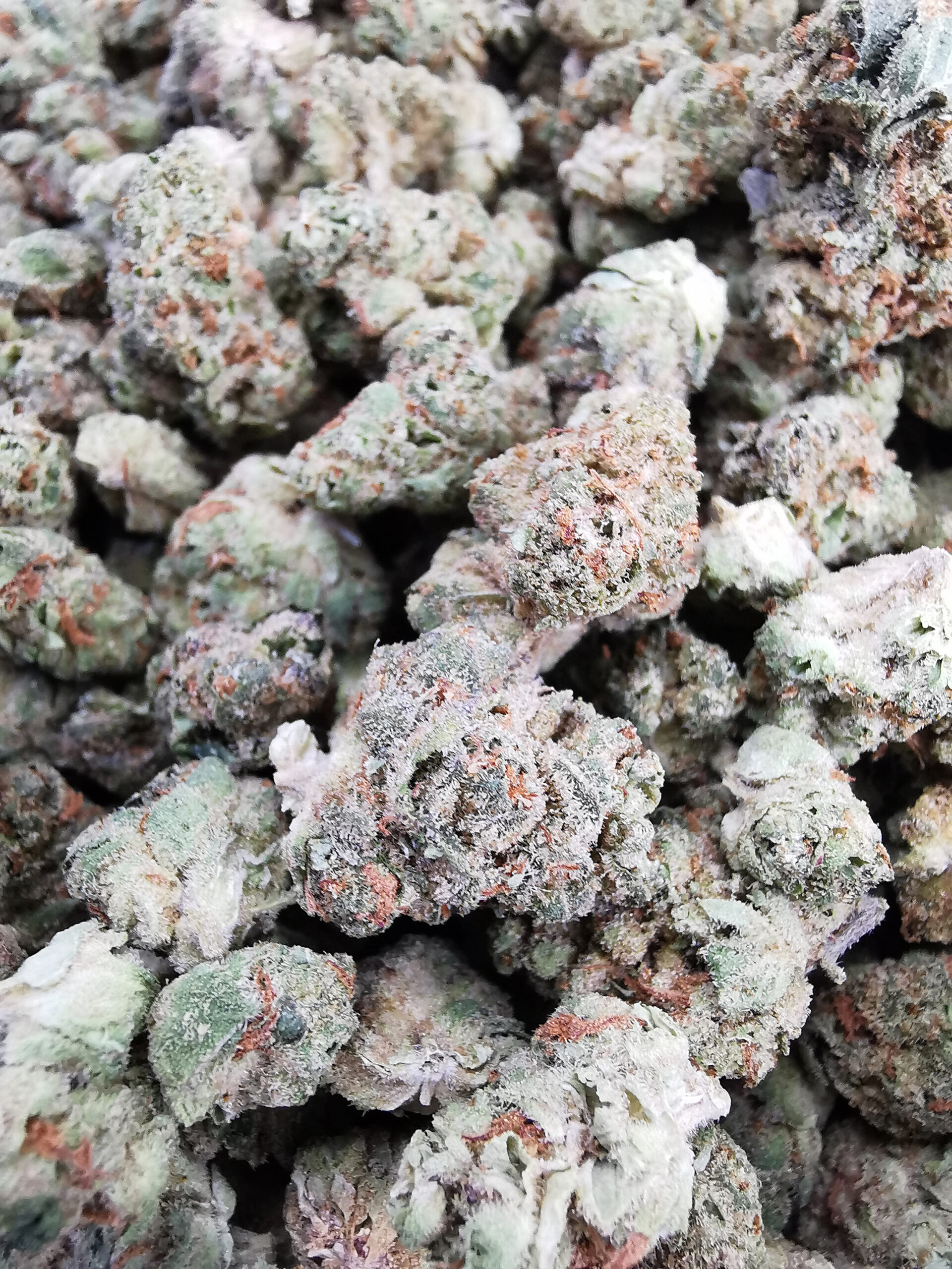 Tropicana Cookies is a sativa dominant hybrid strain created through a cross of the infamous Girl Scout Cookies X Tangie strains. Searching for an insanely delicious flavor that will have you practically begging for more? You’ve found it with Tropicana Cookies. This bright bud packs a super delicious sour citrus high with a slightly sweet cookie exhale. The aroma is of earthy pine and sour spice with a heavy orange overtone that turns slightly pungent as the nugs are burned. The Tropicana Cookies high is just as eye-opening as the flavor, with long-lasting effects that will get you up off the couch and moving in no time at all. You’ll feel an energetic onset at the start of the high, filling both mind and body with tingly happiness and a sense of creative motivation. A touch of relaxation comes next, leaving your physical state calm while your mind soars higher and higher into the stratosphere. Thanks to these daytime effects and its high 21-28% average THC level, Tropicana Cookies is said to be perfect for treating those suffering from conditions such as depression, nausea or appetite loss, mood swings and chronic stress or anxiety. This bud has heaert-shaped minty green nugs with dark purple undertones, lots of thin amber hairs and a coating chunky dark purple-tinted crystal trichomes.