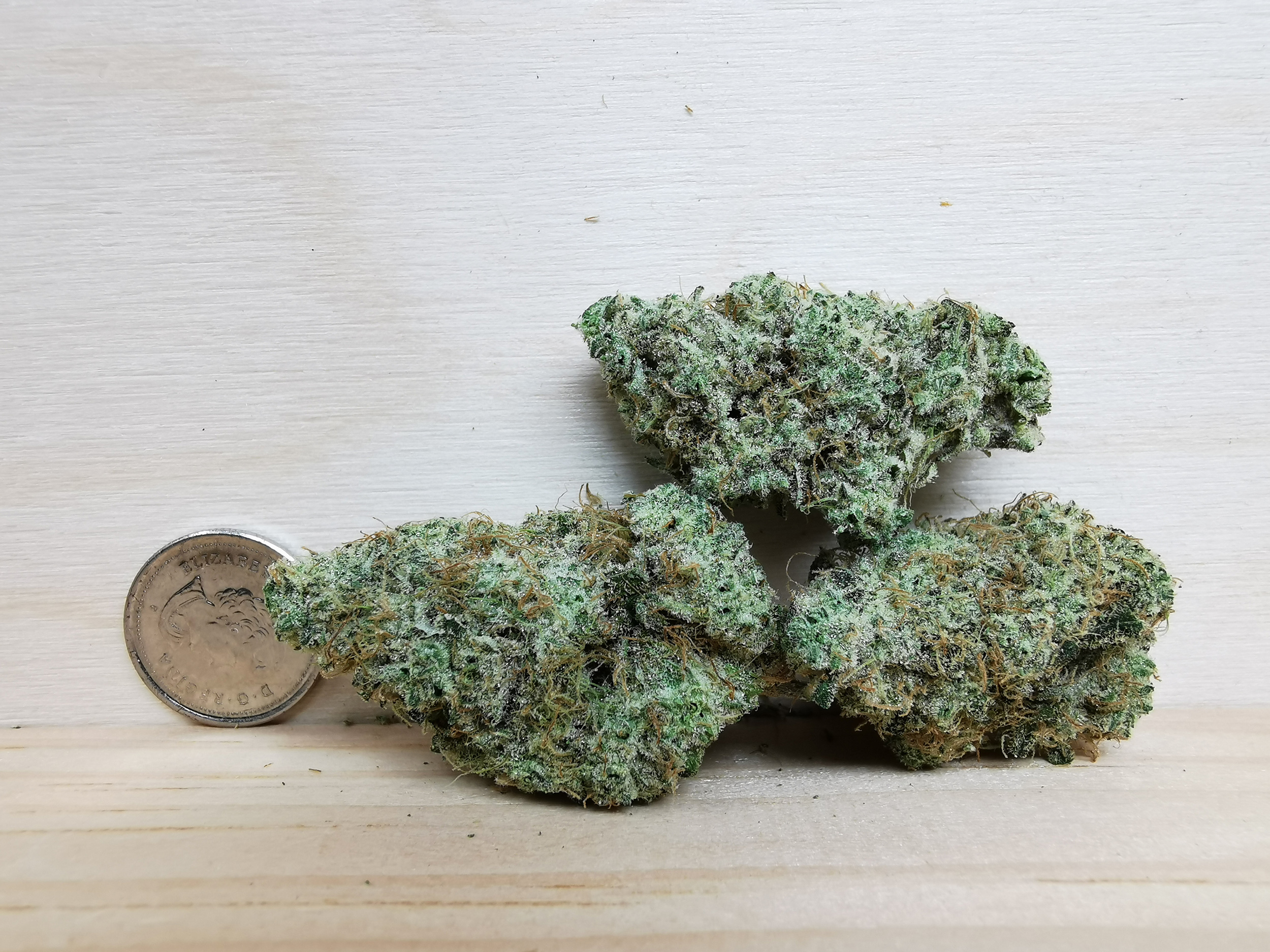 Blueberry is an indica dominant hybrid (80% indica/20% sativa) strain with unknown true parentage. This bud has been traced back to the early 70’s when the infamous American breeder DJ Short started playing around with different landrace strains, ultimately resulting in this insanely delicious variety. It is thought to be descended from Purple Thai X Afghan, but we will never know for sure. Nonetheless, Blueberry is one of the most popular strains on the market and took home the 2000 Best Indica award at the High Times’ Cannabis Cup thanks to its high-powered effects and mouthwatering blueberry vanilla flavor. The Blueberry high has a euphoric and hazy feel to it that creeps up on you slowly before washing over you with a sense of calm and ease. As this high grows, your mind will fall into a state of hazy introspection that immediately erases any negative or racing thoughts and numbs the brain. With these relaxing effects and its high 16-24% average THC level, Blueberry is said to be perfect for treating conditions such as chronic fatigue, depression, migraines, and chronic stress or anxiety. This bud has grape-shaped olive green nugs with bright blue undertones, fiery orange hairs, and a frosty thick coating of tiny amber colored crystal trichomes. It has a smell much like the taste, with a spicy yet sweet earthy vanilla effect that’s accented by fragrant florals.