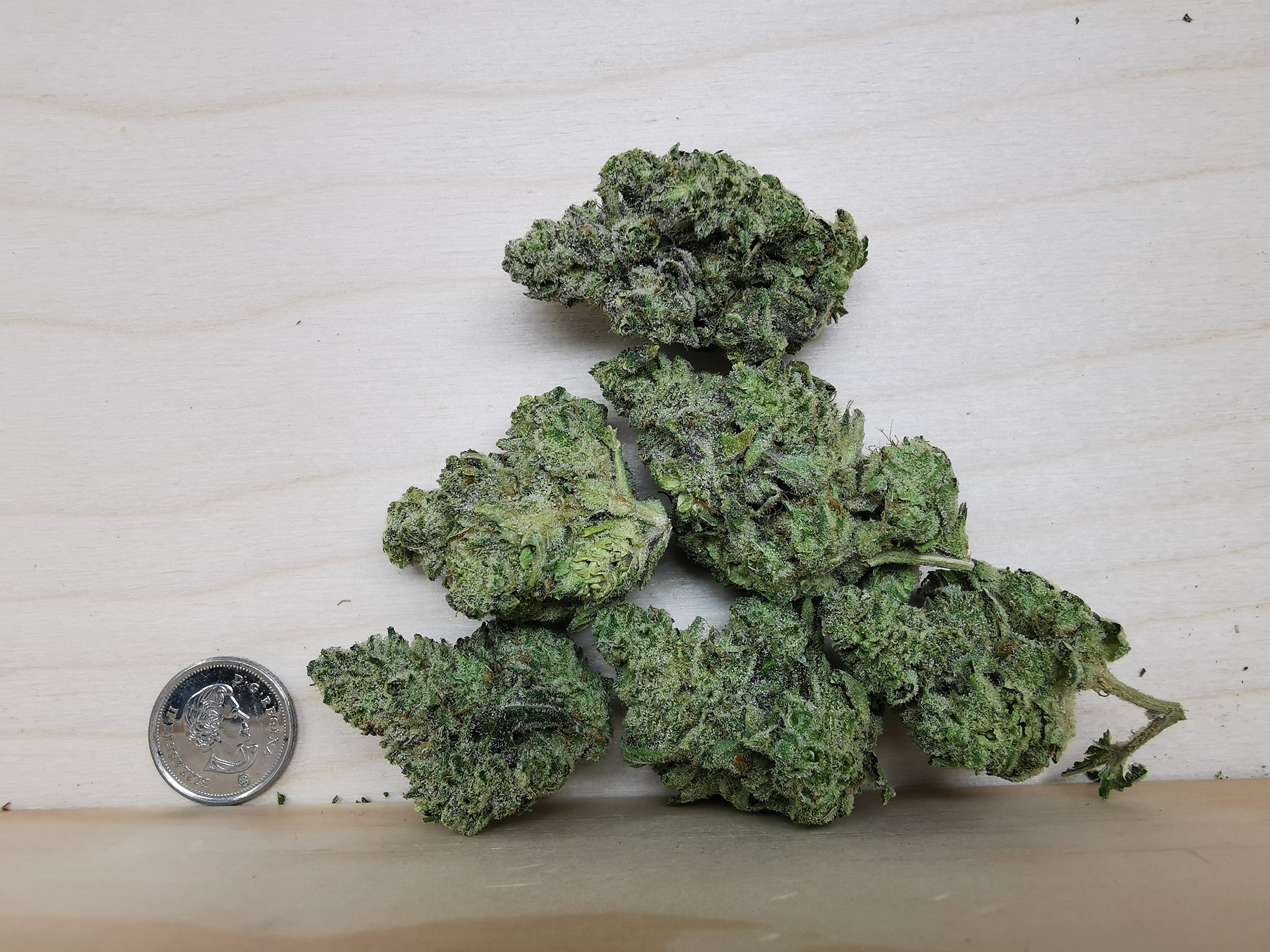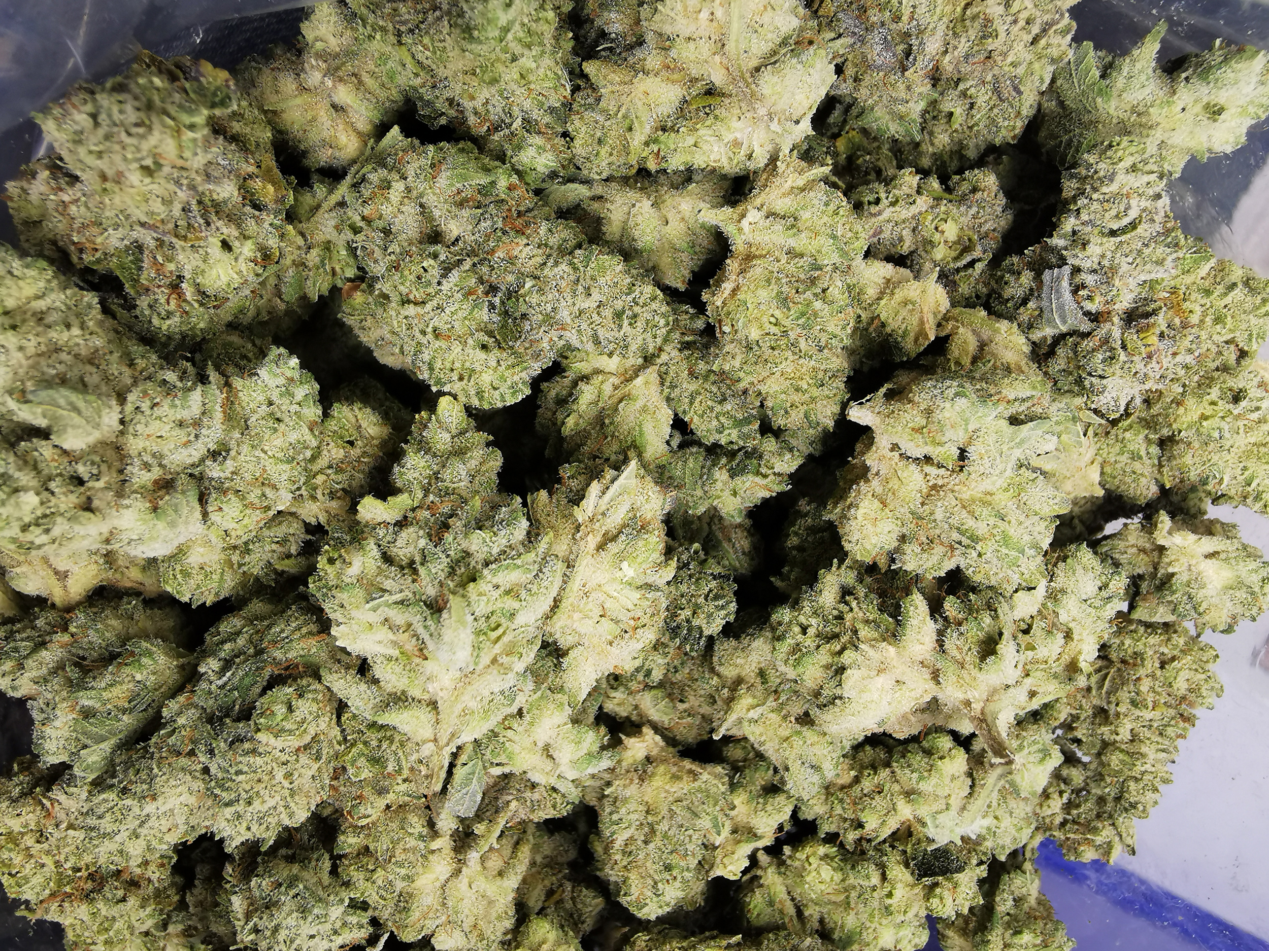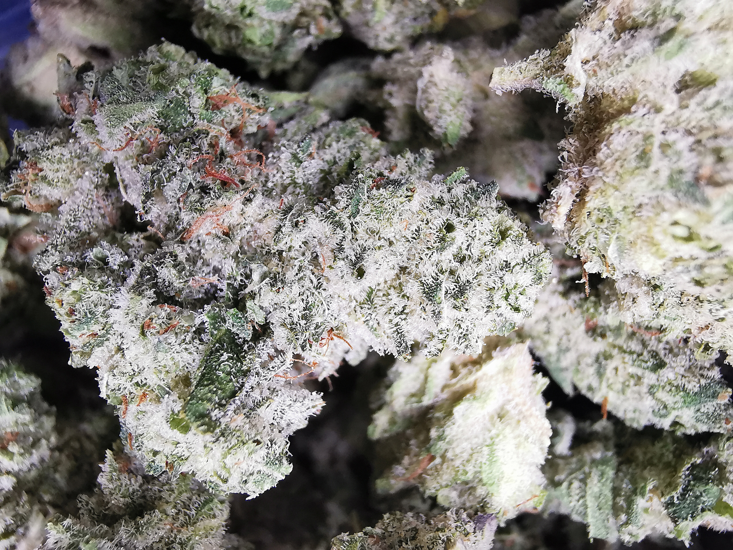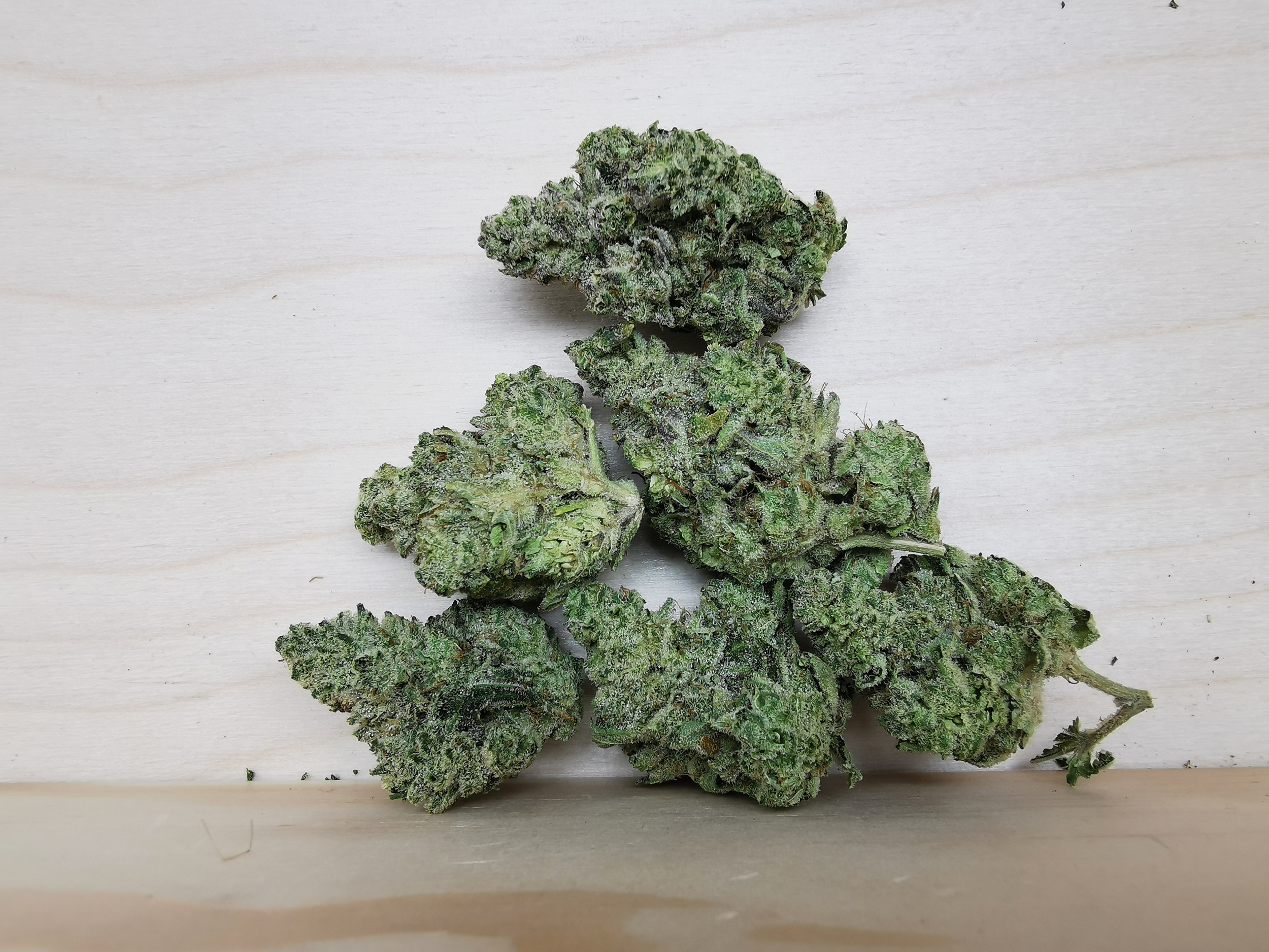 Gorilla Glue #4, also known as “Original Glue,” “Gorilla Glue” or “GG#4,” is a slightly indica dominant hybrid strain (60% indica/40% sativa) created through crossing the infamous Chem’s Sister X Sour Dubb X Chocolate Diesel strains. This celebrity strain is a favorite of patients and breeders around the world for its super heavy effects and long-lasting high that will totally knock you flat out. The high comes on with a building effect, slowly filling your mind with a lifted euphoria and light creative energy. As your mind lifts higher and higher into happiness, an almost glue-like sense will kick in, leaving you mentally stuck in this blissful state and without a care in the world. This effect will soon spread throughout the rest of your body, leaving you hopelessly couch-locked and immovable for hours on end. With these hard-hitting effects and its super high 18-32% average THC level, Gorilla Glue #4 is often said to be perfect for treating ADD or ADHD, Bipolar Disorder, chronic pain, depression, chronic fatigue, insomnia, appetite loss or nausea and migraines or headaches. This bud has a spicy chemical chocolate flavor with a heavily diesel exhale that turns slightly sweet the more that you toke. The aroma follows the same profile, although with a heavy peppery pungency to it, too. Gorilla Glue #4 buds have small rounded forest green nugs with furry amber hairs and a coating of tiny amber-tinted white crystal trichomes that are dripping with sweet sticky resin.