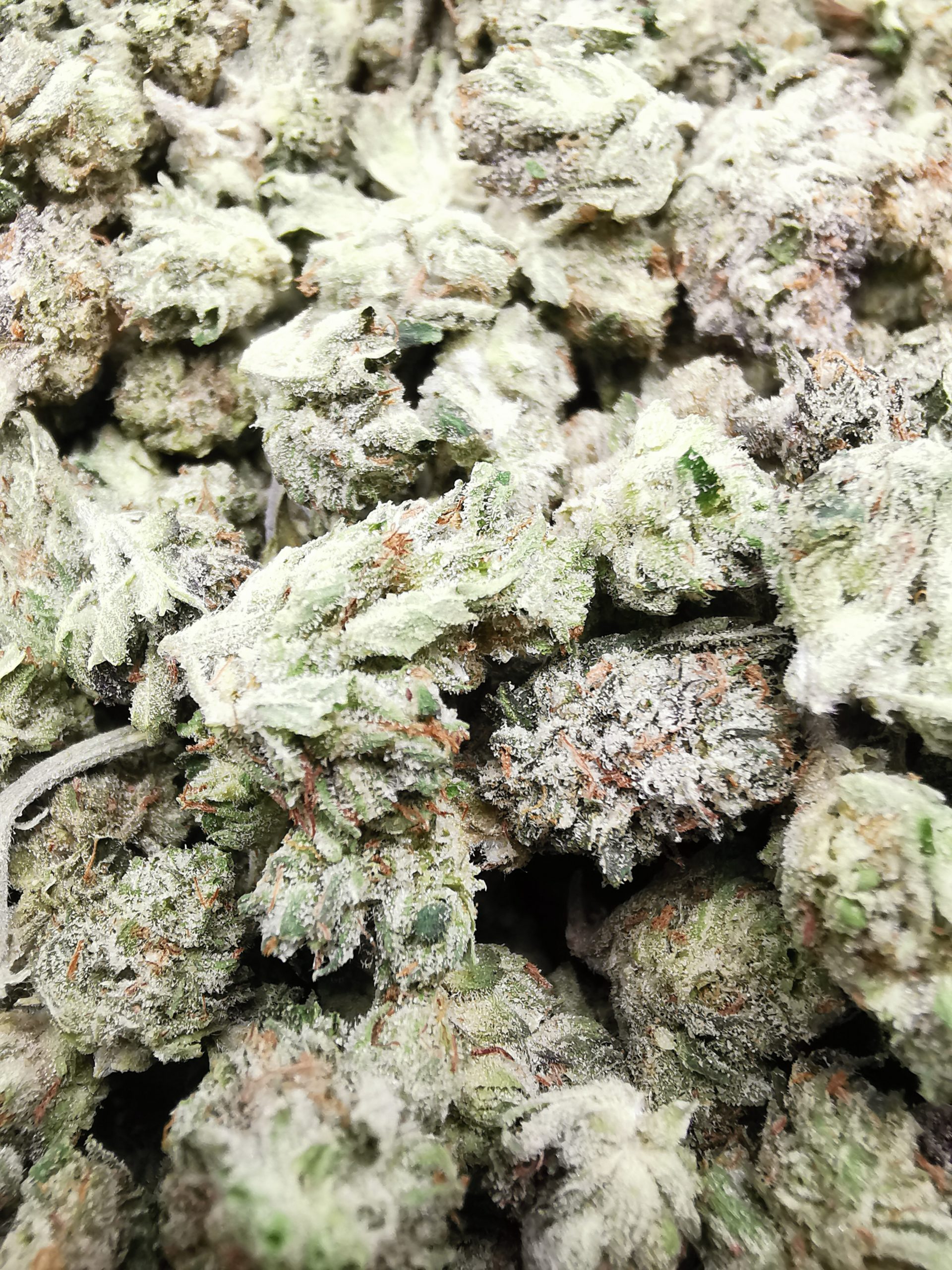 Lindsay OG, also known as “Lindsay,” “Lindsay Kush” or “Lindsay OG Kush,” is a rare slightly indica dominant hybrid strain (60% indica/40% sativa) created through crossing the infamous OG Kush X another unknown hybrid strain. A favorite of hybrid lovers, Lindsay OG packs a full-bodied high that will hit both mind and body with a high level of potency. It starts in the head with a sense of clarity, clearing your mind and filling you with a lifted happiness and ease. As your mind settles into this clear-headed state, a deeply relaxing body high will wash over your physical form, locking you to the couch and leaving you pretty sedated. Thanks to these effects and its high 15-23% average THC level, Lindsay OG is often said to be perfect for treating conditions such as chronic pain, insomnia, chronic stress or anxiety, cramps or muscle spasms and appetite loss or nausea. This bud has a classic pungent skunky flavor with a lightly sweet exhale. The aroma is earthy and herbal with a heavy skunky pungent that lingers long after the nugs are burned away. This bud has medium-sized popcorn-shaped dark green nugs with minty leaves, bright orange hairs and a frosty thick coating of golden amber crystal trichomes.
