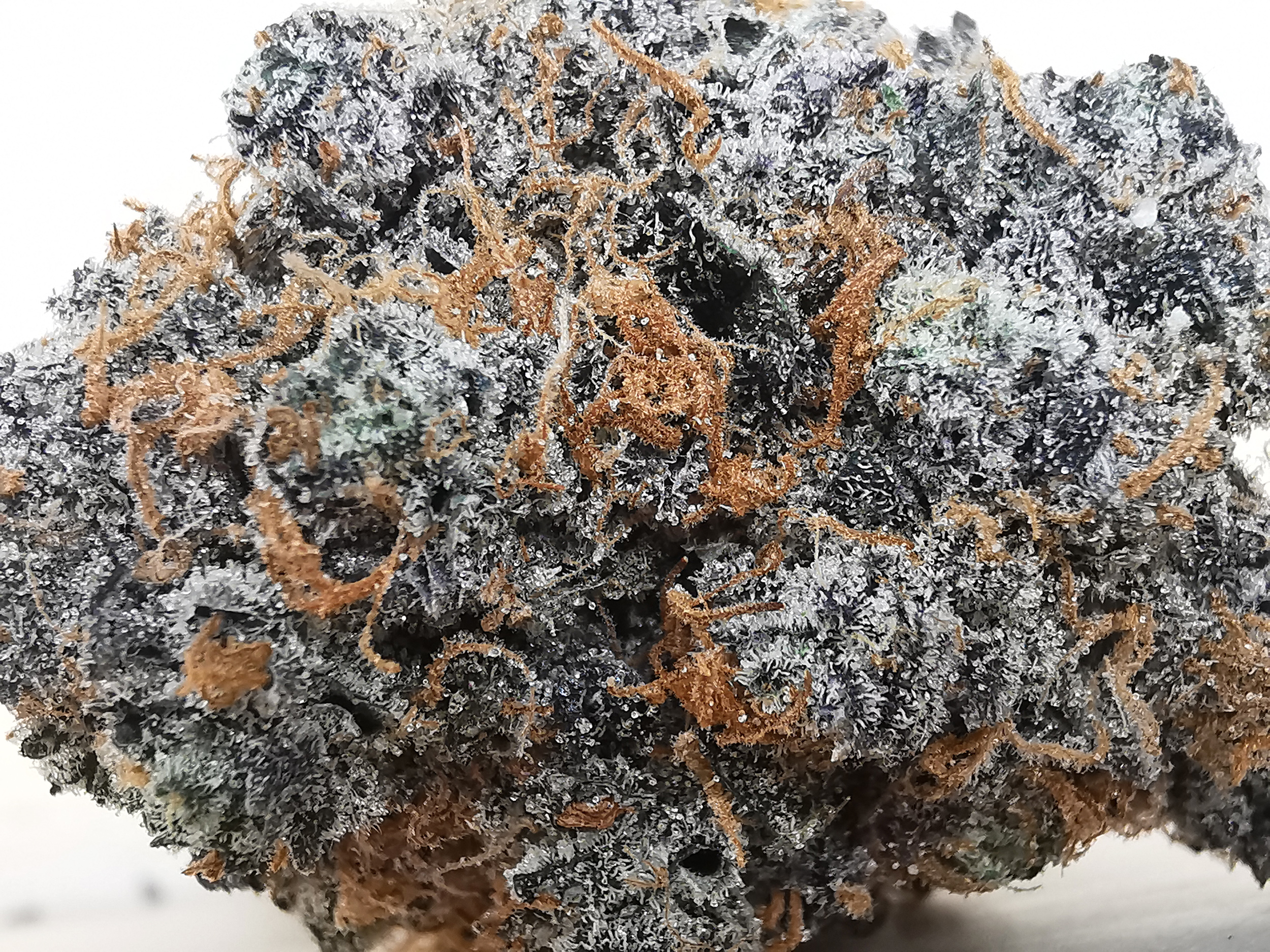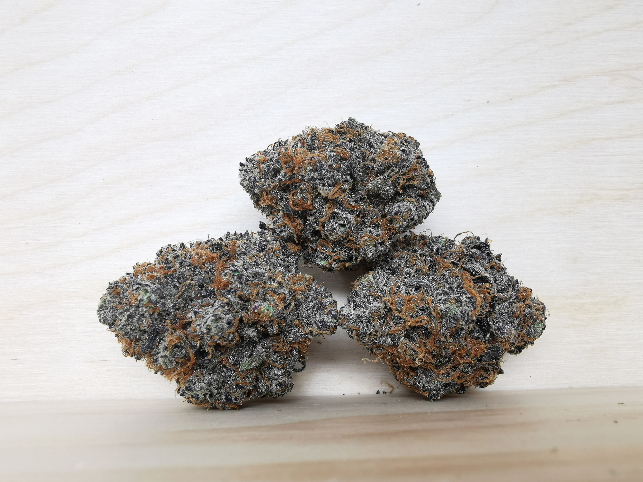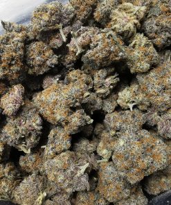 Runtz is an evenly balanced hybrid strain (50% indica/50% sativa) created through a delicious cross of the infamous Zkittlez X Gelato strains. Named for the iconic candy, Runtz brings on a super delicious fruity flavor with tropical citrus and sour berries galore. The aroma is very similar, although with a sharp spicy pineapple effect that turns slightly pungent as the sticky little nugs are broken apart and burned. The Runtz high comes roaring in a few minutes after your final toke, first hitting your head with a calming lift before spreading its tingly tendrils throughout the rest of your body. As the Runtz high expands, you’ll begin to feel a deeply calming effect spread through your limbs, leaving you totally sedated and couch-locked, immovable for hours and hours on end before you finally fall into a deep and peaceful sleep. Thanks to these effects and its super high 19-29% average THC level, Runtz is often said to be perfect for treating conditions such as insomnia, chronic pain, appetite loss or nausea and chronic stress or anxiety. This bud has dense grape-shaped olive green nugs with thin orange hairs, dark purple undertones and a coating of frosty tiny white purple-tinted crystal trichomes.