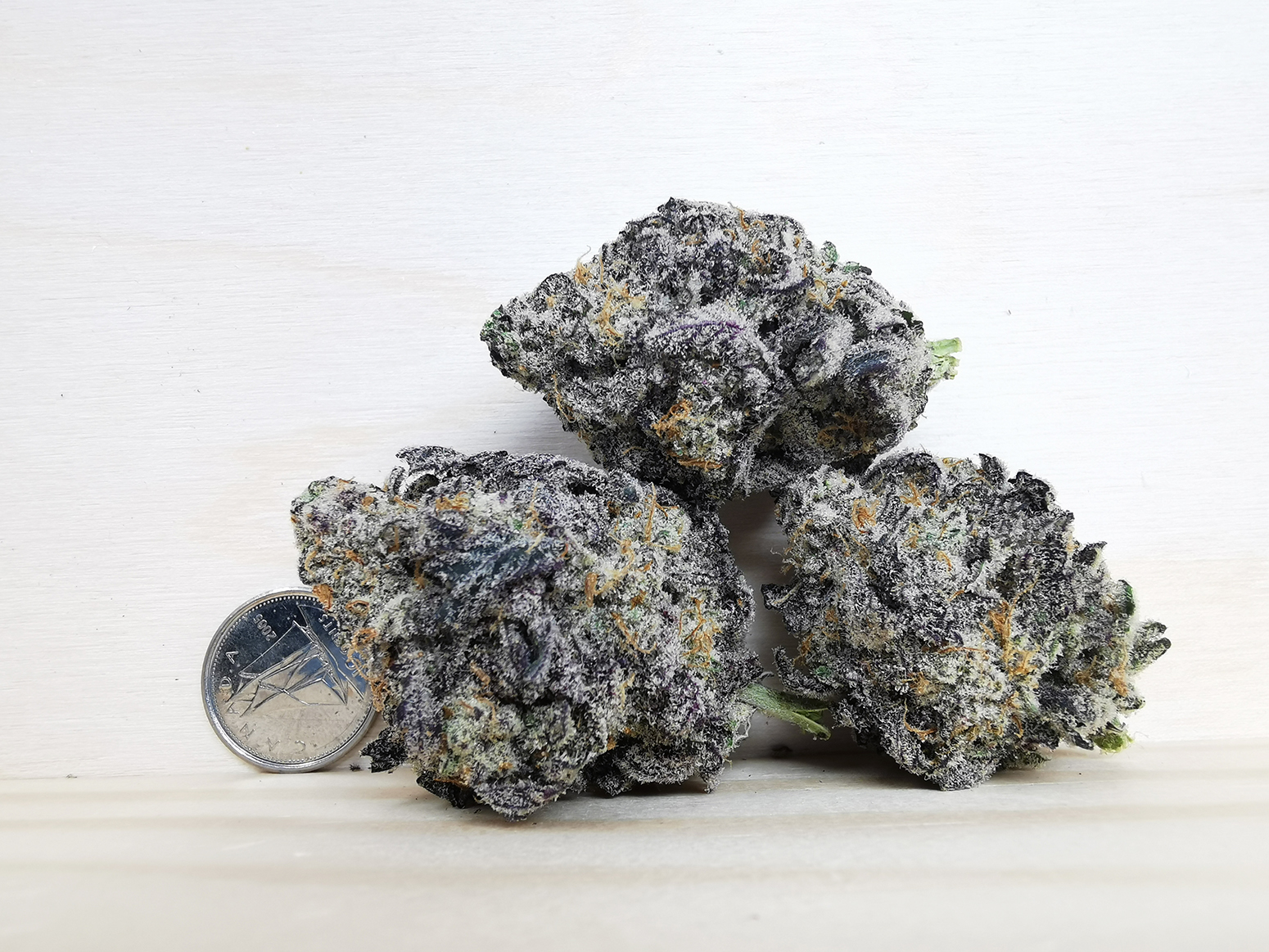 Medium size buds, deep purple buds coated with great amount of THC. Amazing quality and steal!