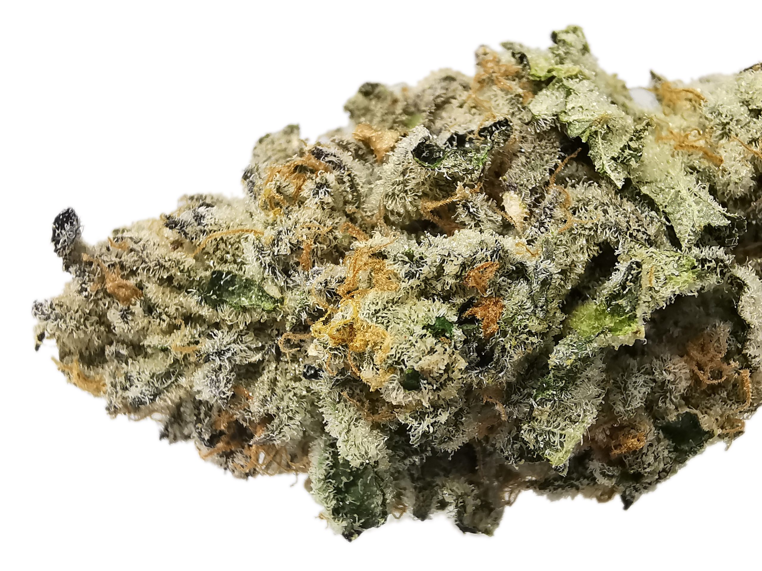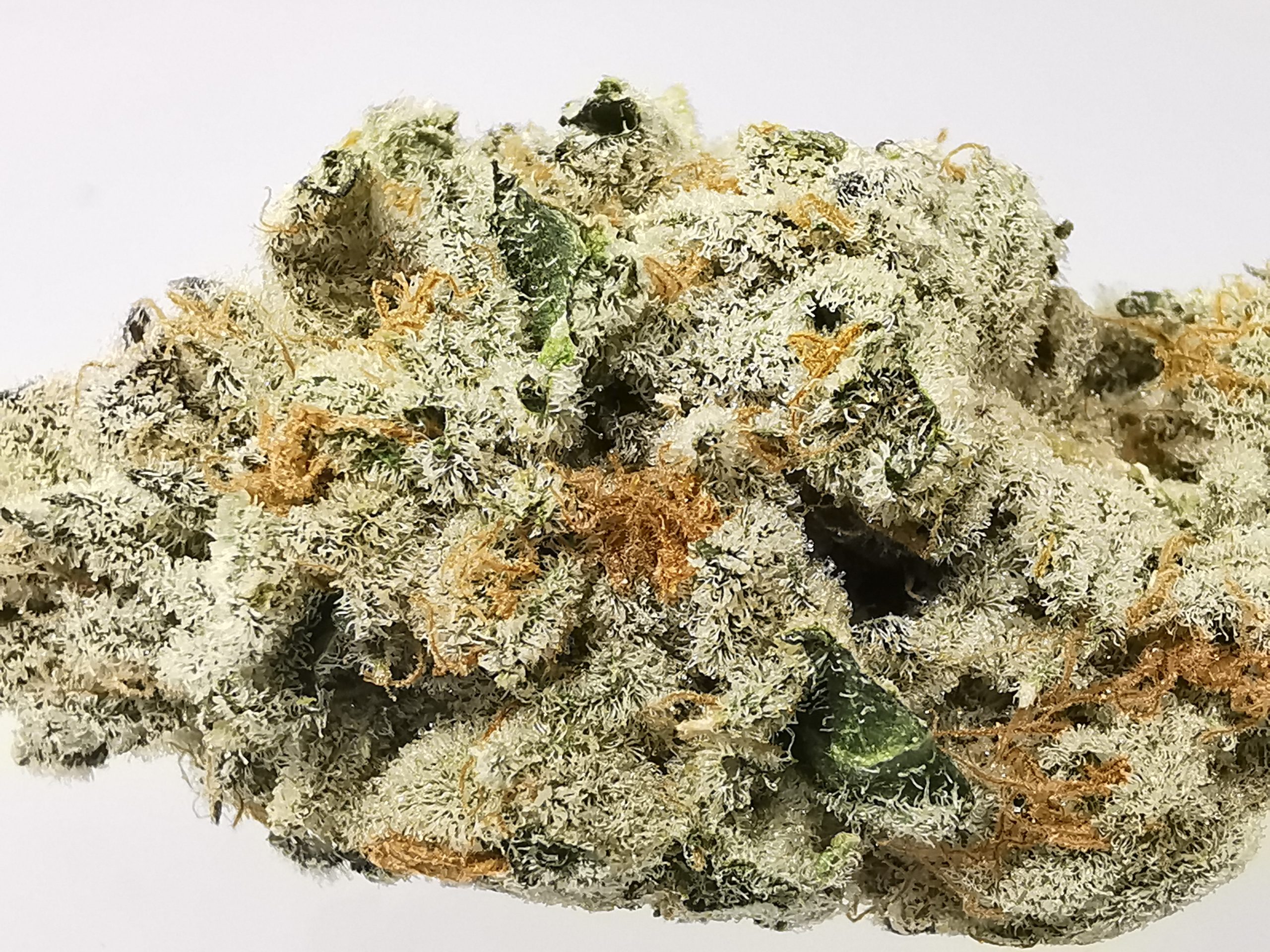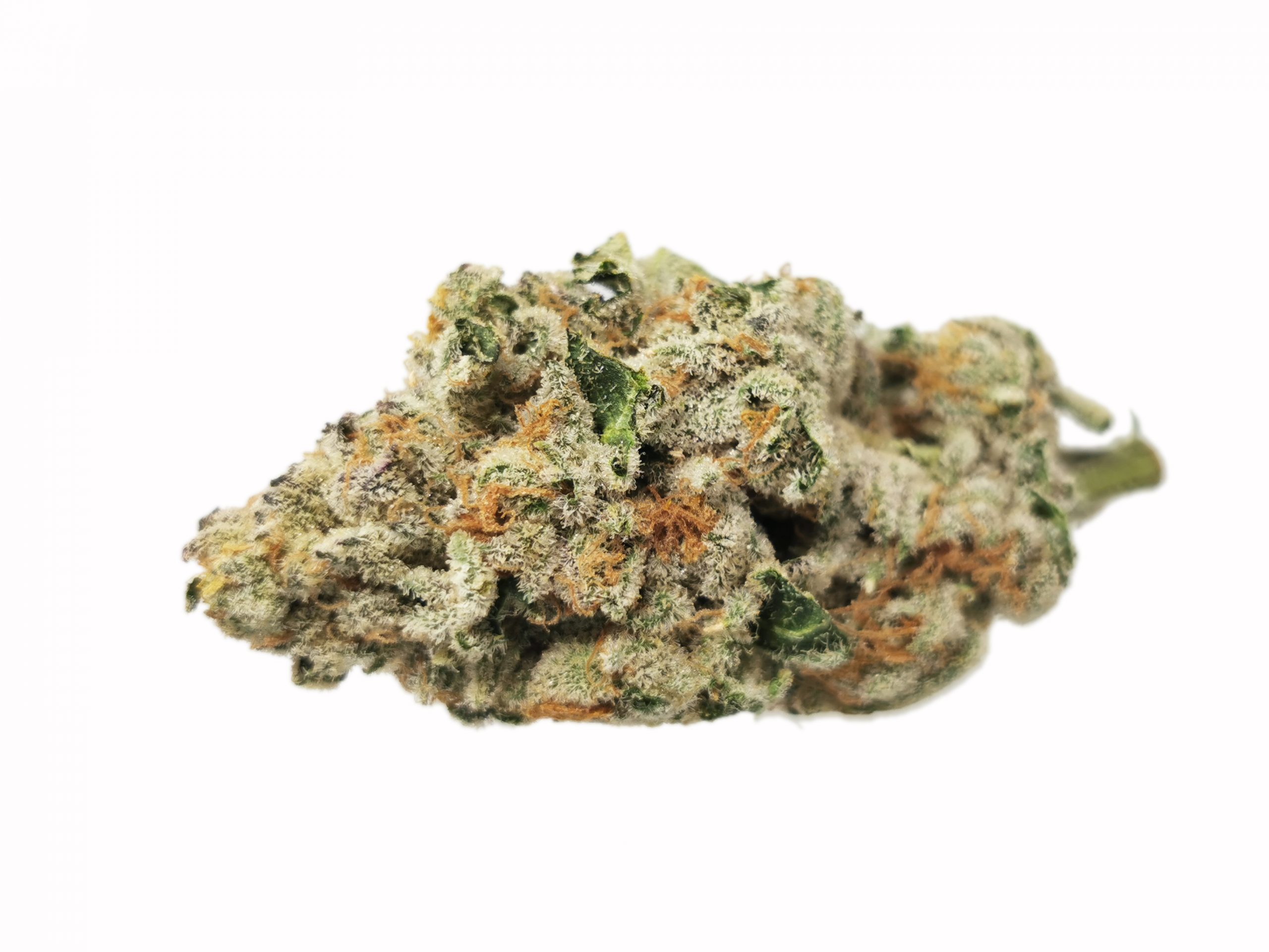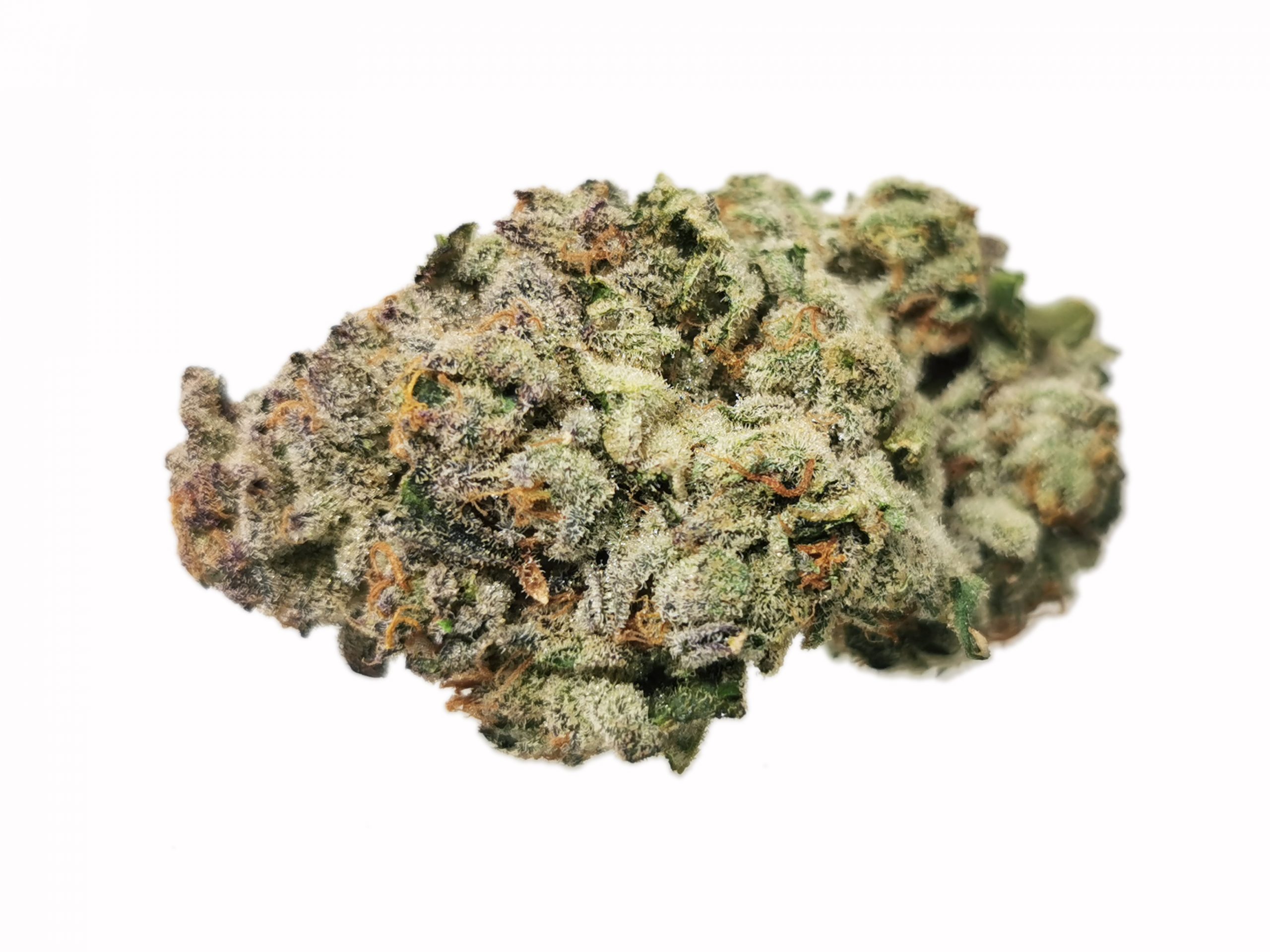 Mint Chocolate Chip is an evenly balanced hybrid (50% indica/50% sativa) strain created through crossing the delicious SinMint Cookies with the infamous Green Ribbon BX strain. This tasty bud packs the flavor you know and love from SinMint Cookies together with the energetic high of Green Ribbon for an amazing experience. Mint Chocolate Chip has a flavor you’d expect, chocolate nutty cookies with a punch of sharp mint! The aroma is a little different, taking on an earthy overtone with hints of rich spices and dank mocha as the nugs are burned. The Mint Chocolate Chip high comes on immediately after your first toke, smashing into your mind and launching it into a state of uplifted energy. You’ll feel motivated and focused with an urge to create. As your mind lifts higher and higher, your body will remain grounded in deep physical relaxation that is almost sedative in nature. Thanks to these full bodied effects and its high 20%+ average THC level, Mint Chocolate Chip is said to be perfect for treating conditions such as chronic pain, headaches, appetite loss, depression, and chronic fatigue. This bud has small round furry dark olive green nugs with orange furry hairs and bright white crystal trichomes.