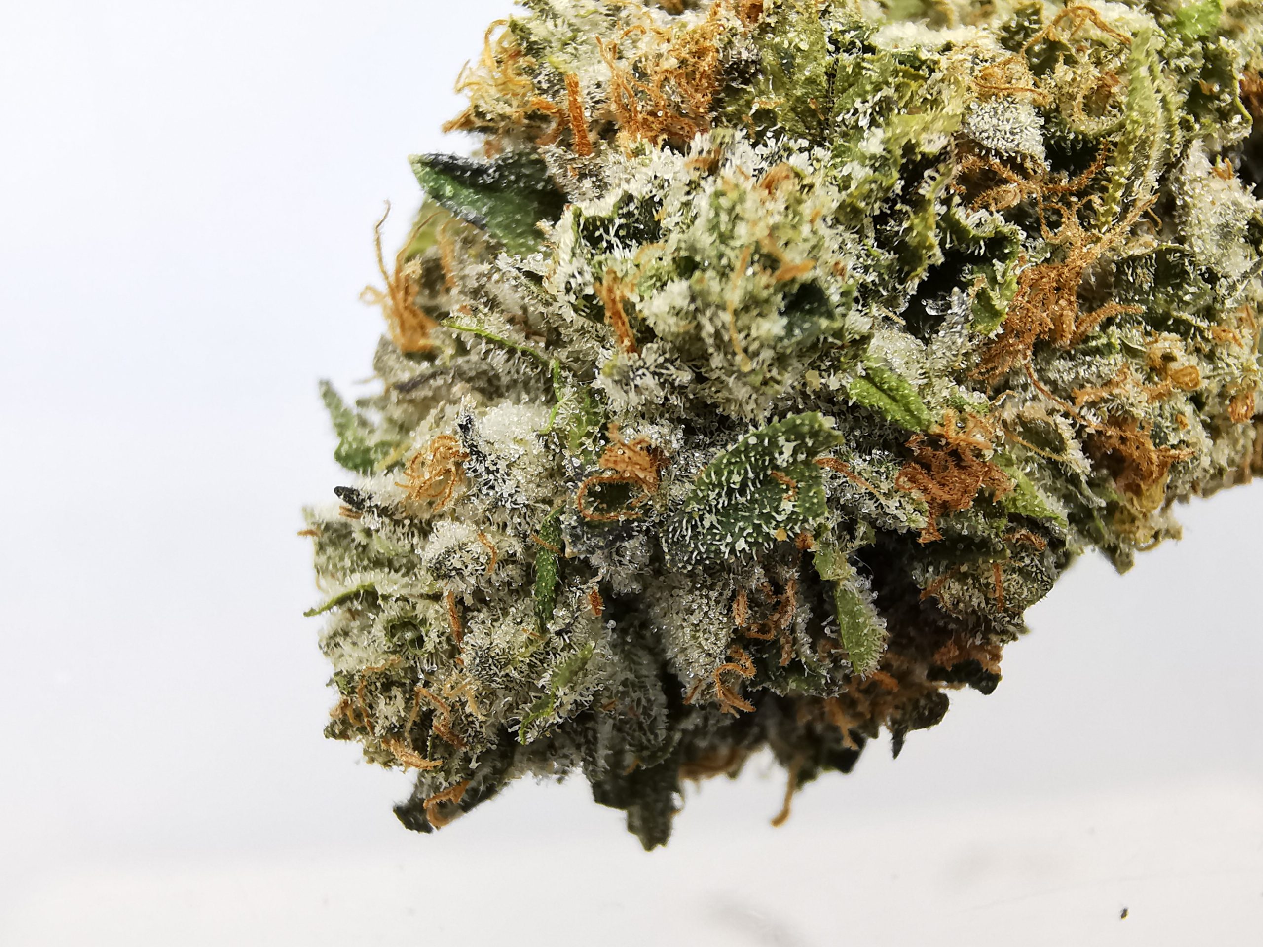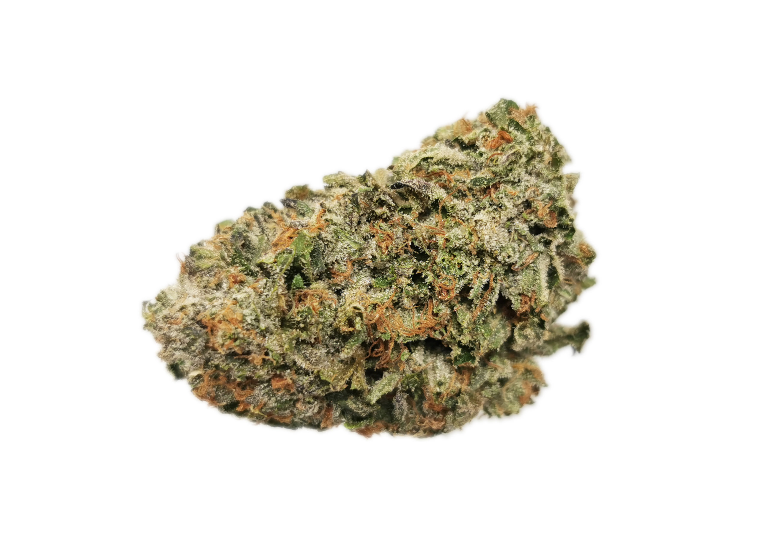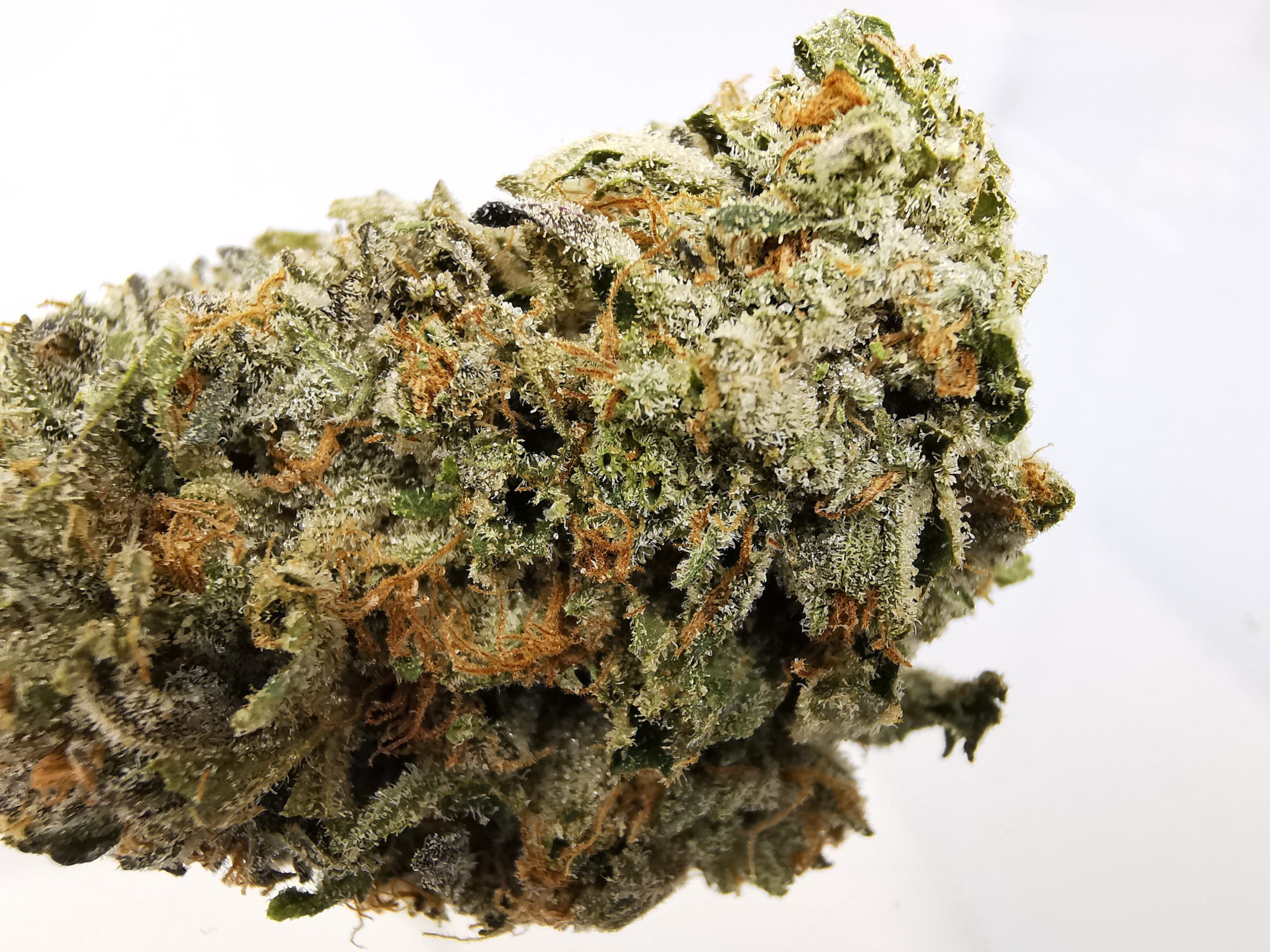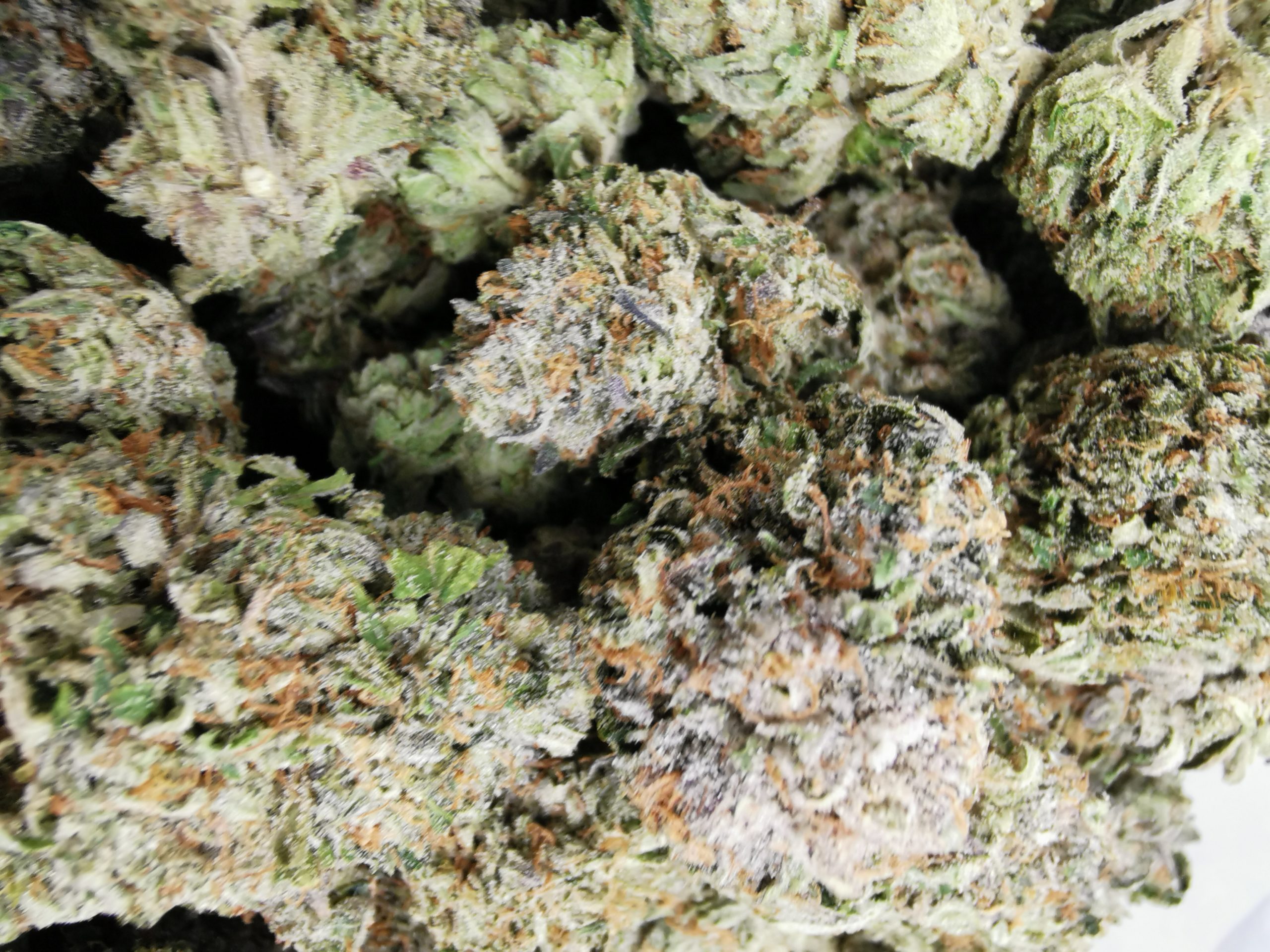 Big buds with nice bright green and orange tones. Smells gas, skunky and piney thanks to its OG parent.