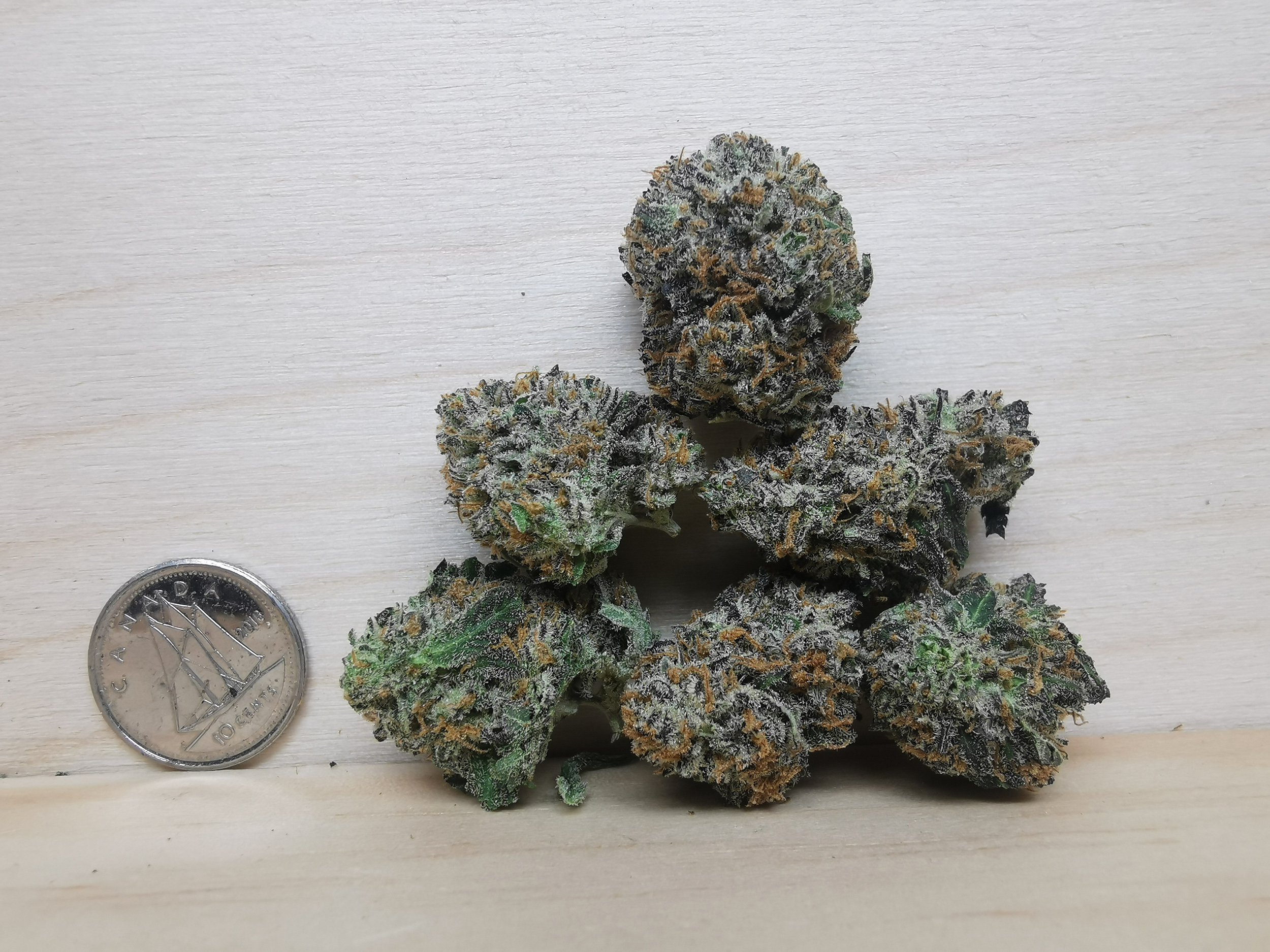 Small size buds, caked and covered with crystal, intense berry and skunky nose, packed with potency and value!