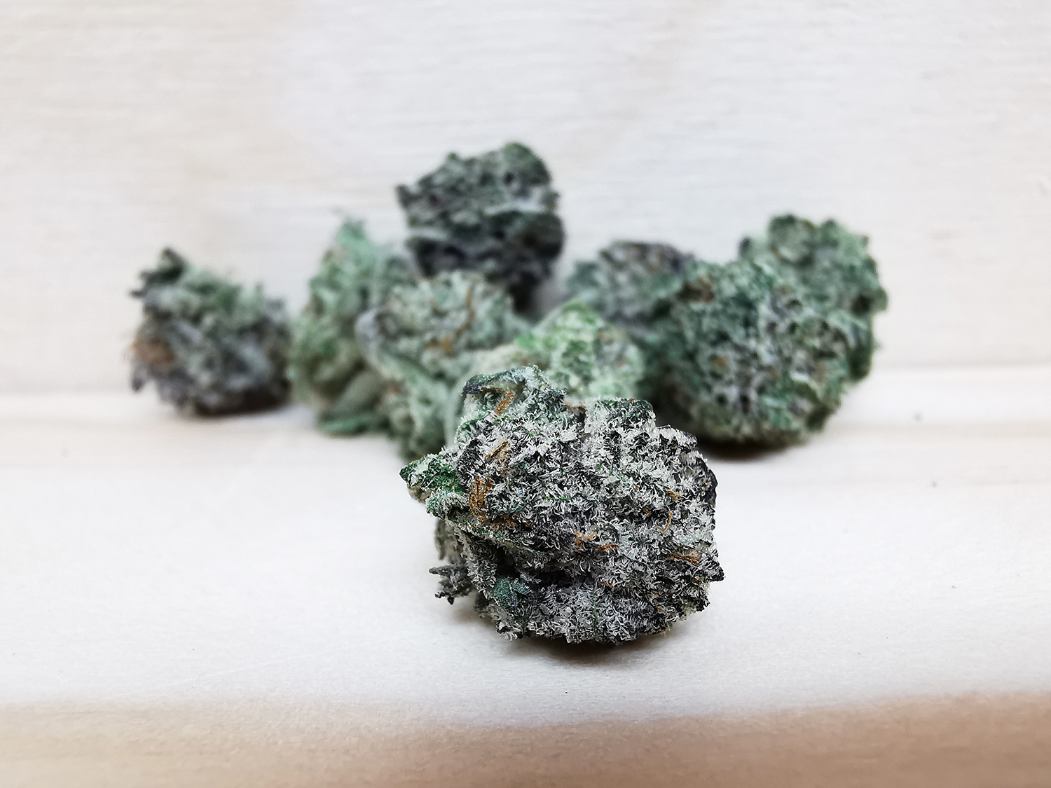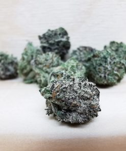Nuken is an indica dominant hybrid (80% indica/20% sativa) strain created as cross between the cult favorite God Bud X Kish strains. This potent bud boasts a moderate THC level between 13-25% and has a deliciously enticing aroma and flavor. The aroma of Nuken is that of a sweet marshmallow with a hint of sharp skunk, and the taste is much like a freshly baked marshmallow pie with a hint of skunk upon exhale. Nuken buds have large dense and furry light minty green nugs with a thick layer of dark olive green leaves and sparse fiery orange hairs. Each nug has a fine layer of translucent crystal trichomes and is dripping with sweet sticky visible resin. The Nuken high is characterized by a long-lasting and relaxing buzz that doesn’t leave you sedated and isn’t narcotic in nature. You’ll be hit with a body buzz that starts in your spine and slowly spreads throughout your body, ridding you of any pain. This is accompanied by a deep introspection that can leave you distant and spacey at times. Because of these potent effects, Nuken is said to be perfect for treating conditions such as chronic pain, mild cases of depression, and chronic stress or anxiety.
