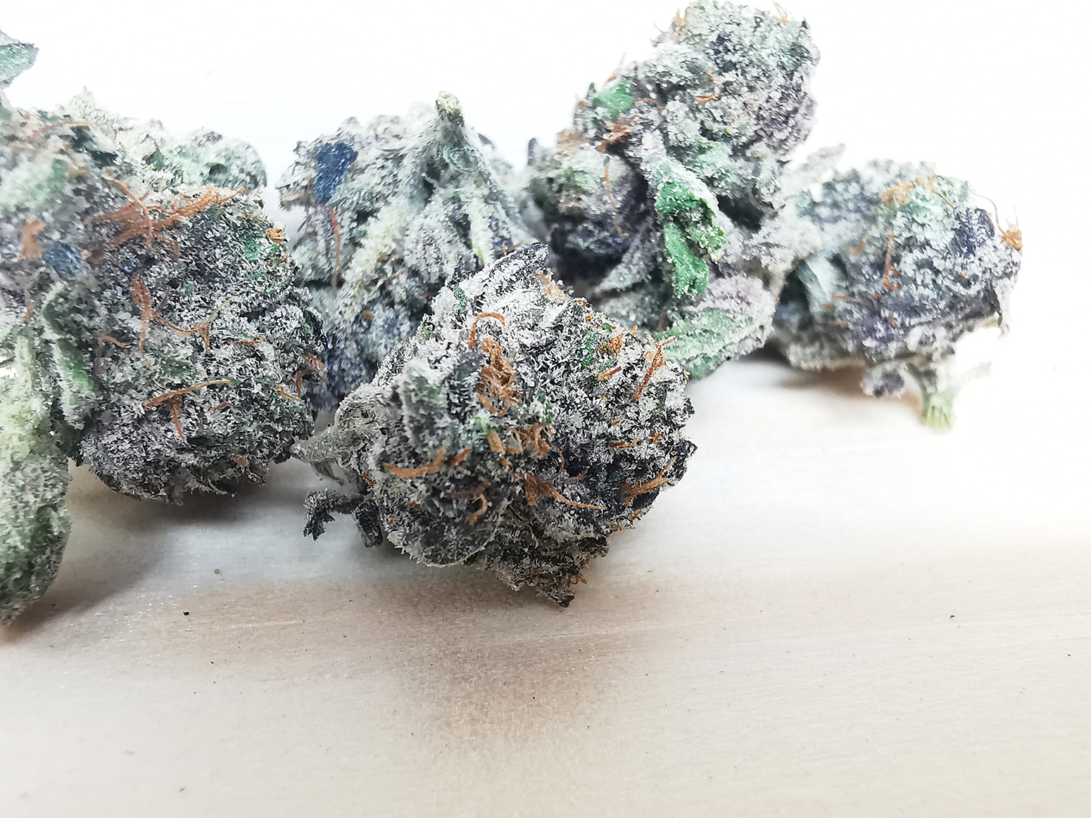 Purple Haze is a sativa dominant hybrid (85% sativa/15% indica) strain that is a potent cross between the rare yet popular Purple Thai X Haze strains. This dank bud boasts a THC level ranging from 14-19% on average and an array of sativa and indica effects. Purple Haze was named after Jimi Hendrix’s classic 1967 song and is one of the most famous strains ever thanks to its popularity in the 1960s. Users describe the Purple Haze high as one with almost immediate high-energy cerebral stimulation accompanied by an intense sense of creative inspiration and blissful contentment. You may experience a mild body buzz that is warming and spreads from your head and neck throughout the rest of your body. Due to these potent effects, Purple Haze in ideal strain for treating patients suffering from conditions such as fatigue, mild to moderate cases of depression, and chronic stress or anxiety. Purple Haze has long, dense pepper-shaped nugs that are light minty green with rich purple undertones. These nugs are covered in long thin light and dark purple hairs and a fine layer of milky white trichomes and sweet sticky resin. Purple Haze has a sweet earthy berry aroma and a pungent berry taste with a hint of spice.