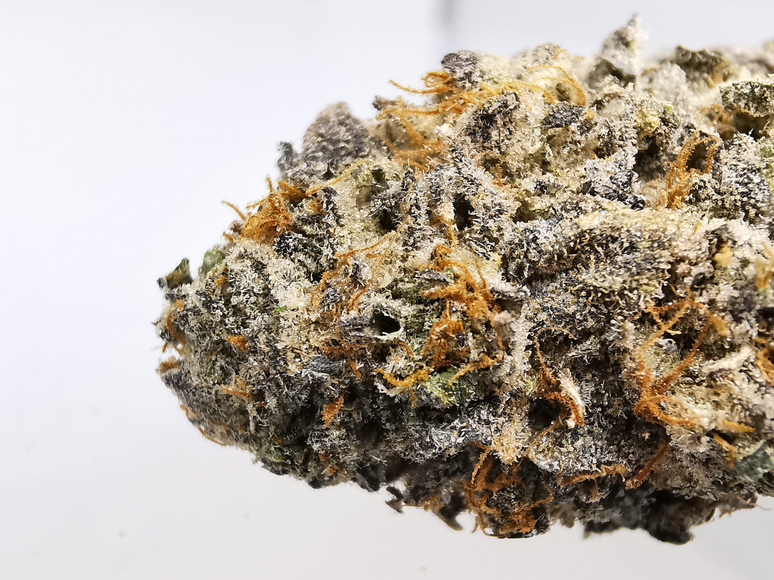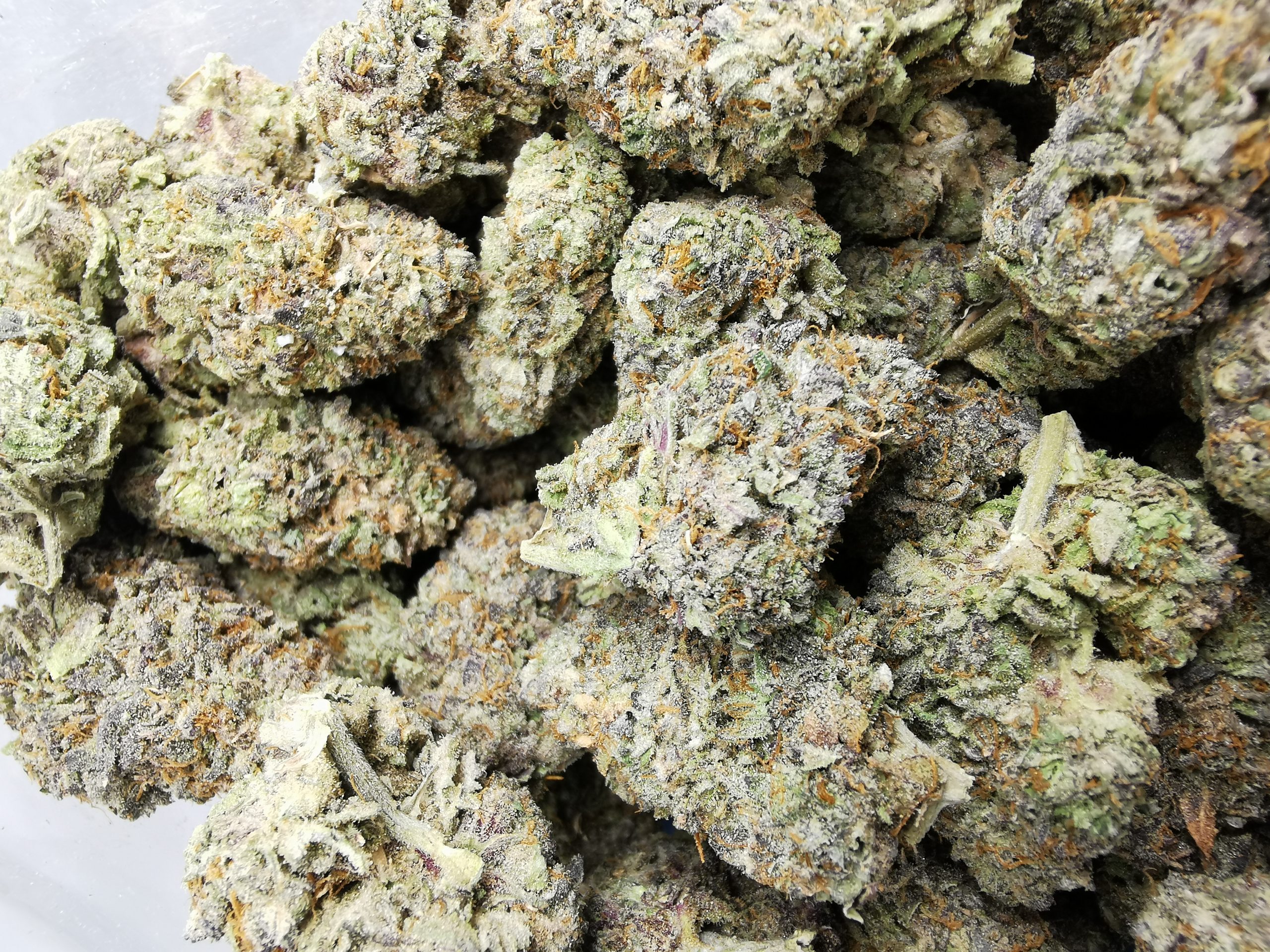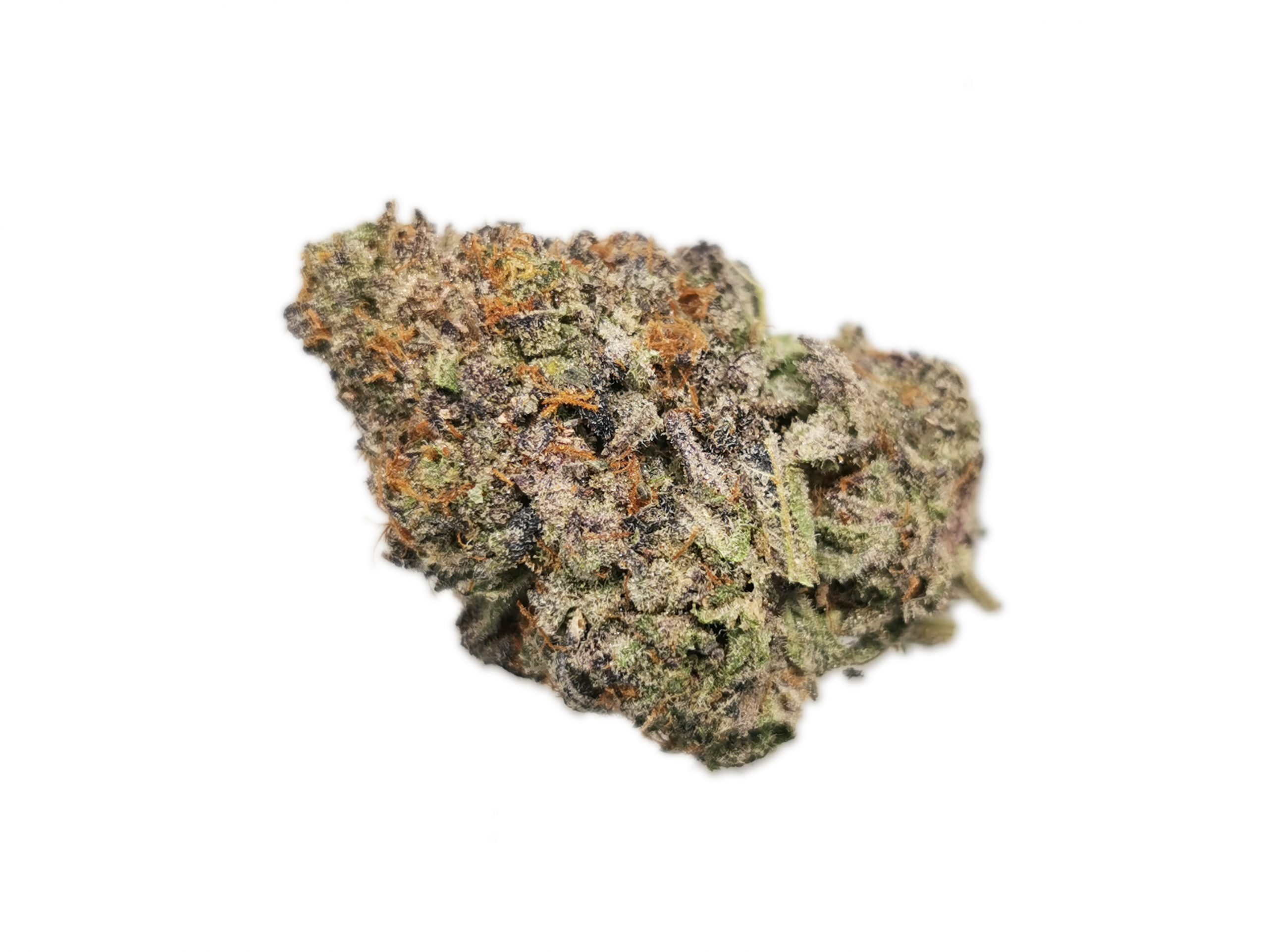 Punch Breath is a rare indica dominant hybrid strain (70% indica/30% sativa) created through crossing the classic Mendo Breath X Purple Punch strains. If you’re looking for a full-bodied high with a great flavor, you’ve found it – Punch Breath brings it on. The high comes on fast and hard, smashing into both mind and body with an almost frenzied tingly effect. You’ll feel your spirits lift as sore muscles relax and you settle further and further into the couch. This tingle quickly turns calming, leaving you slightly sedated and out of touch as you fall further and further into blissful happiness. With these effects and its high 16-19% average THC level, Punch Breath is often chosen to treat conditions such as chronic pain, nausea or appetite loss, chronic stress, depression, insomnia and cramps or muscle spasms. This bud has a sweet and fruity grape candy flavor with hints of fresh bubblegum throughout. The aroma is just as delicious, with an earthy overtone that’s accented by fresh sweet berries and tangy bubblegum. Punch Breath buds have super dense grape-shaped minty green nugs with lots of orange furry thin hairs and a sparkling coating of tiny frosty white crystal trichomes.