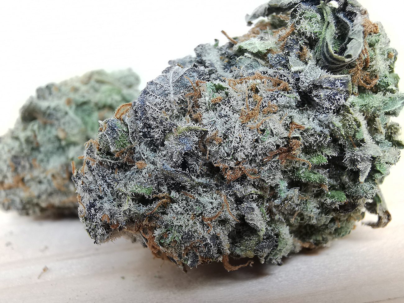 Blue Dream is a slightly sativa dominant hybrid (60% sativa/40% indica) strain that is a potent cross between the hugely popular Blueberry X Haze strains. This infamous bud boasts a moderately high THC level that ranges from 17-24% on average and a myriad of both indica and sativa effects. Users describe the Blue Dream high as having an immediate onset of an uplifting cerebral head high that leaves you completely motivated and focused with waves of creative energy that hit quickly and hard. This is accompanied by a mellow relaxing body high that leaves you warmed, numb, and completely pain free. Due to these potent combination effects, Blue Dream is said to be an ideal strain for treating patients suffering from conditions such as chronic stress, chronic pain due to injury or illness, mild to moderate cases of depression, and sleep disorders, including insomnia. Blue Dream has a delicious aroma of sweet blueberry pie and a taste of sugary sweet blueberries that stays on your tongue long after smoking. This bud has large dense yet fluffy popcorn-shaped bright neon green nugs with amber and blue hairs and rich blue undertones. These nugs are dusted with a fine layer of sandy milky white trichomes and sweet sticky resin.