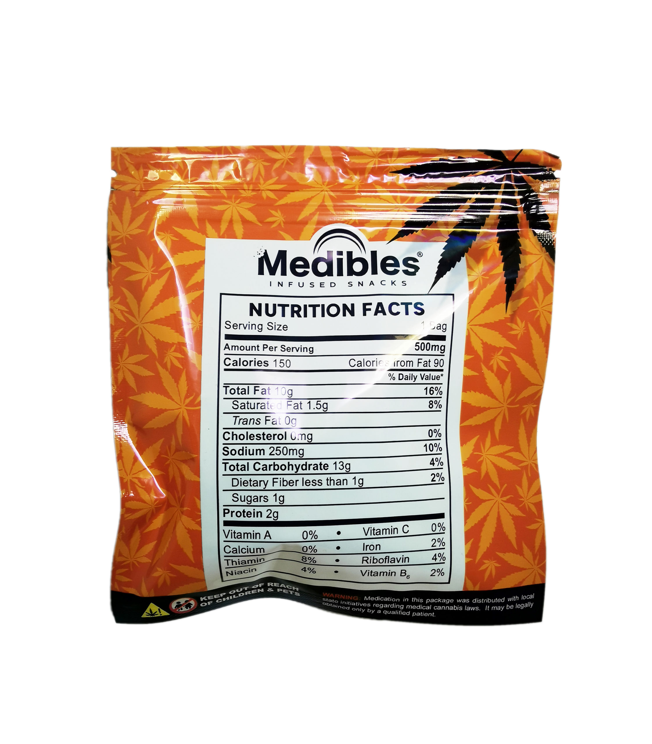 Each bag of THC Chips contain 500mg of THC. Do not get caught up eating the whole bag. Dose according to your experience and limit yourself (we know it may be hard) to the proper dosage.
