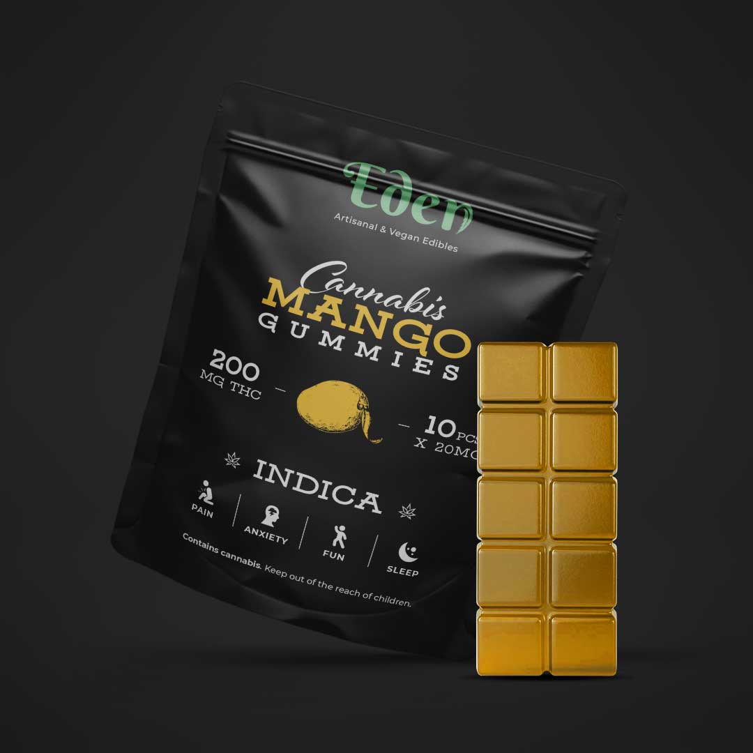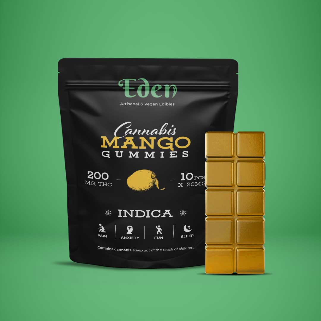 - 200mg THC Mango Gummies – Indica will help unwind after a stressful day, relieve chronic pain, or fall into a deep sleep.