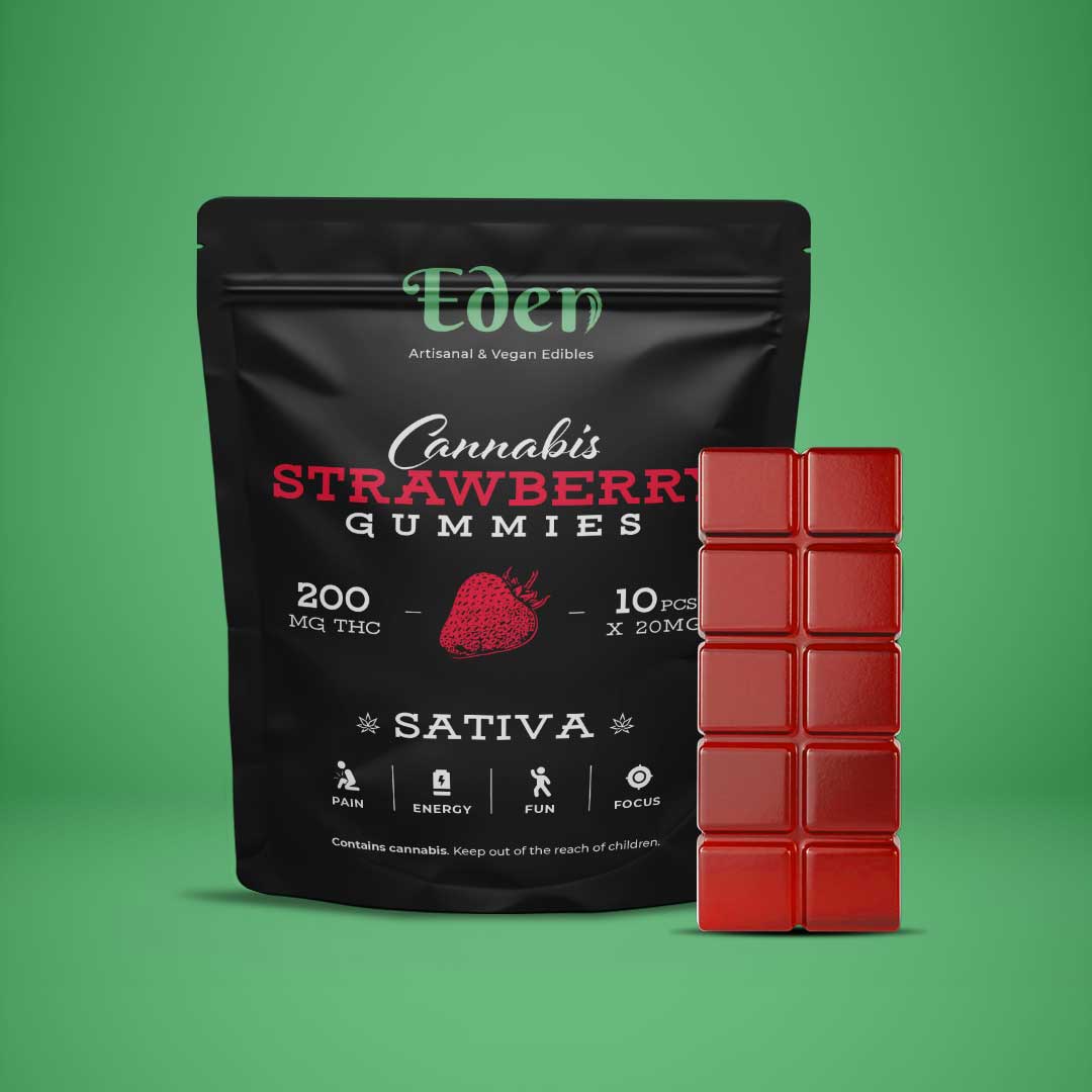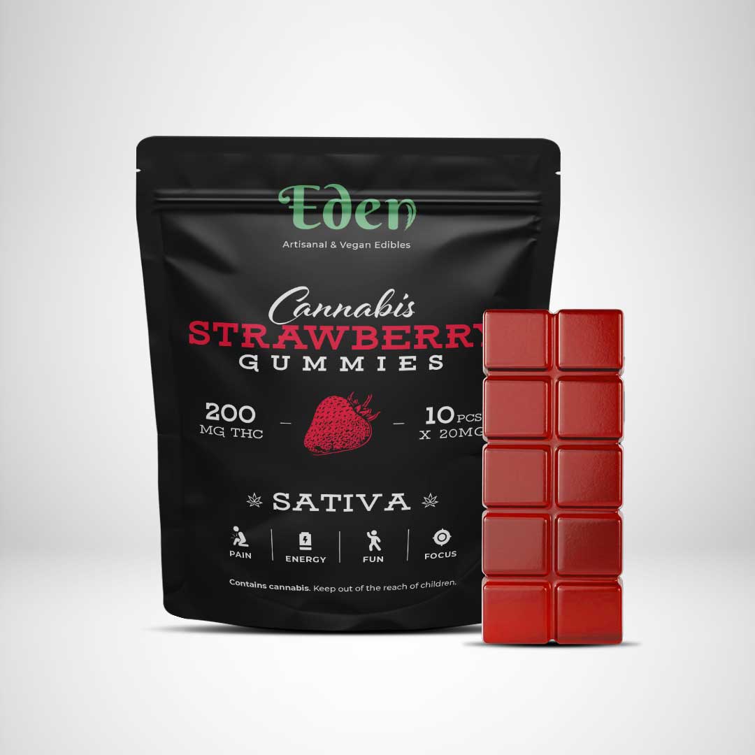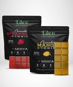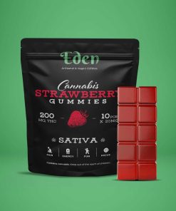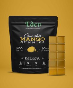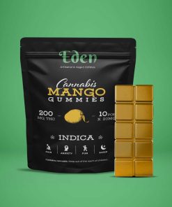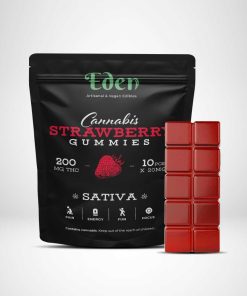 Eden 200mg THC Gummies come with 10 piece of 20mg THC per bag. All their gummies come in different phenotype, so you can choose between Sativa & Indica variations to get the full entourage effect of marijuana!