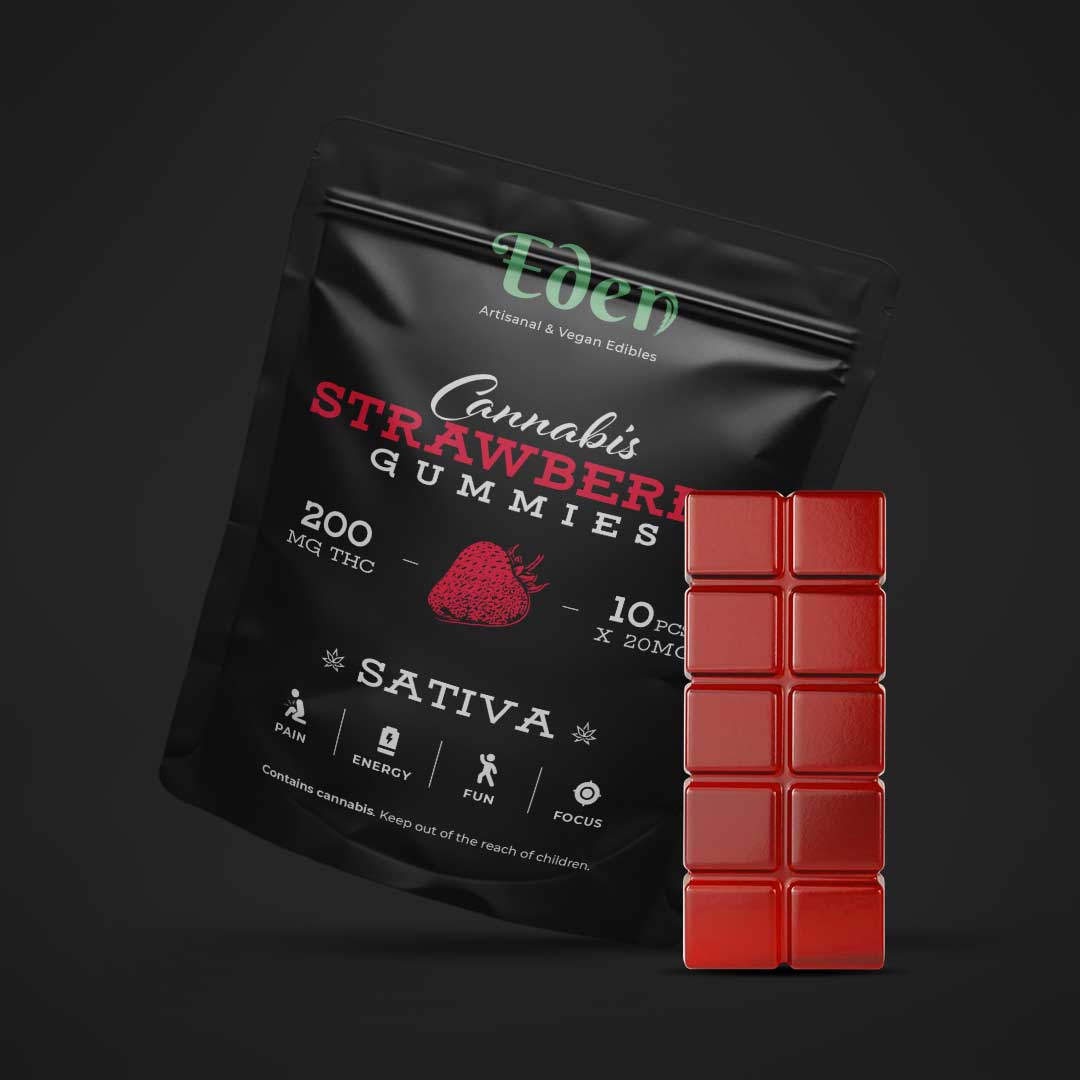 - 200mg THC Strawberry Gummies – Sativa are great mood boosters. They’re often used to help spark creativity, unwind from the day, and make you feel like a kid again.