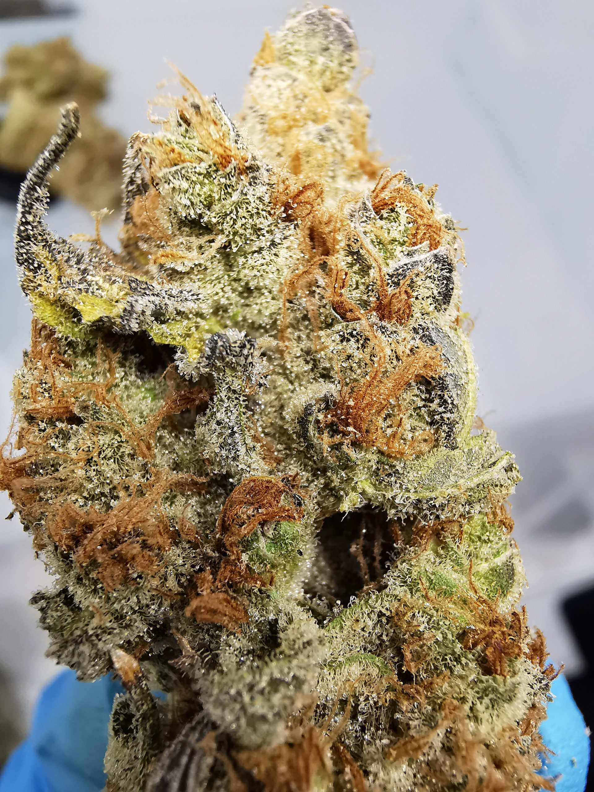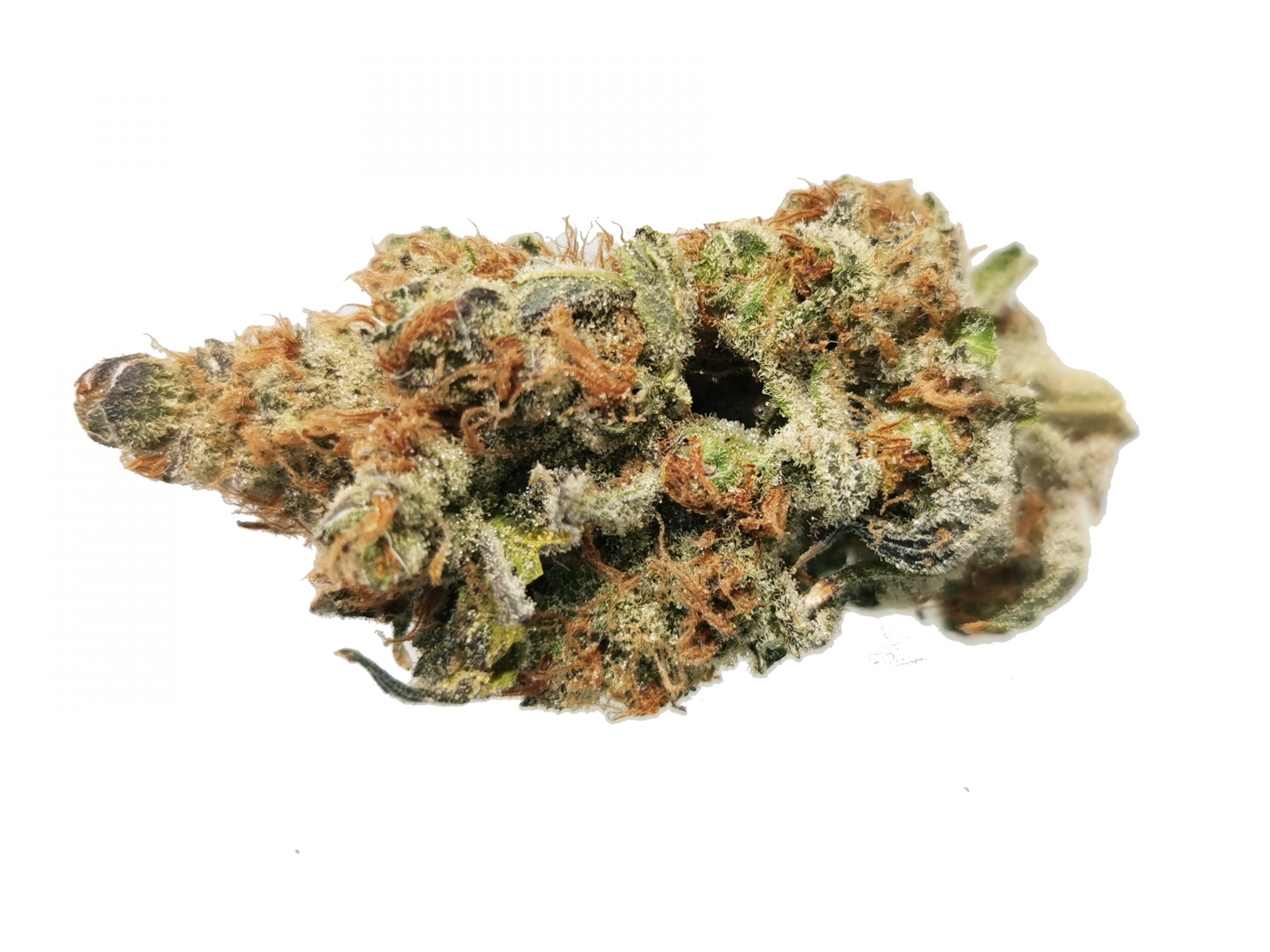Garlic Breath AAAA+ is a super rare indica dominant hybrid strain created through crossing the powerful Hogsbreath X Chemdog D BX2 strains. Named for its surprisingly garlicky flavor, Garlic Breath is a favorite of indica lovers for its super calming high that’s perfect for a late night when you just can’t seem to get to sleep. The high starts with a subtle lift of the spirits that infuses you with a sense of pure happiness and ease, erasing any negative or racing thoughts immediately. An influx of creativity accompanies this blissful state, lending itself well to tasks that don’t require too much focus. As your mind settles, you’ll become washed over with a super sleepy feeling that drops you a state of pure sedation and ease. With these effects and its high 16-18% average THC level, Garlic Breath is said to be perfect for treating those suffering from insomnia, depression, chronic stress, nausea and chronic fatigue. Garlic Breath has a deliciously savory garlic and herbs flavor that lingers long after your final toke. The aroma is of sharp pungent chemicals with a notable punch of earthy garlic and herbs. This bud has spade-shaped minty green nugs with bright orange hairs and a sandy coating of amber crystal trichomes.