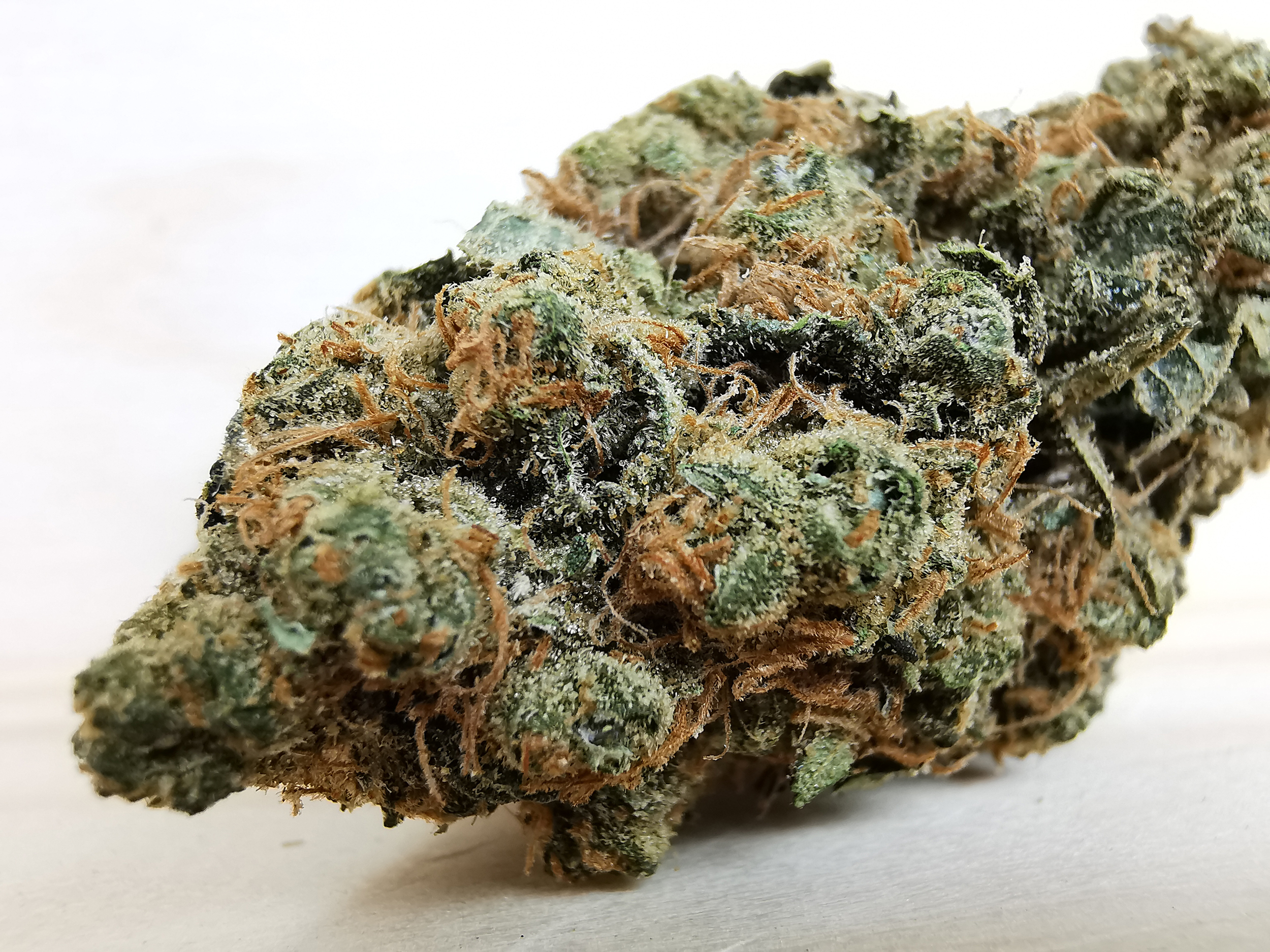Gelato is a slightly indica dominant hybrid (55% indica/45% sativa) strain created through a cross of the infamous Sunset Sherbet X Thin Mint Girl Scout Cookies strains. This dank bud is infamous for its insanely delicious flavor and hugely powerful effects that are fueled by a THC level that hits its low point at 20% on average. Gelato has a flavor that’s said to be much like a sweet sherbet, with fruity blueberry and orange flavors. The aroma is just as sickly sweet, with a lavender citrus berry bouquet that has a woody effect as the nugs are broken apart and smoked. Although it has a tasty flavor, Gelato is definitely best loved for its effects. Even with its slight indica dominance, the high is head heavy in nature and won’t leave you sedated or couch-locked. It starts with a cerebral head rush that hits you in the forehead with an uplifted euphoria and a sense of slightly focused energy. As this head high blissfully builds, a creeping body buzz will slowly wash over you, leaving you completely relaxed and calm with a sense of peace and well being. These powerful and surprisingly well balanced effects make Gelato the perfect choice for patients suffering from muscle spasms, chronic pain, inflammation, chronic fatigue, and headaches or migraines. Gelato buds have large and lumpy super dense grape-shaped dark forest green nugs with rich purple and orange hairs and a super sticky coating of visible resin droplets.