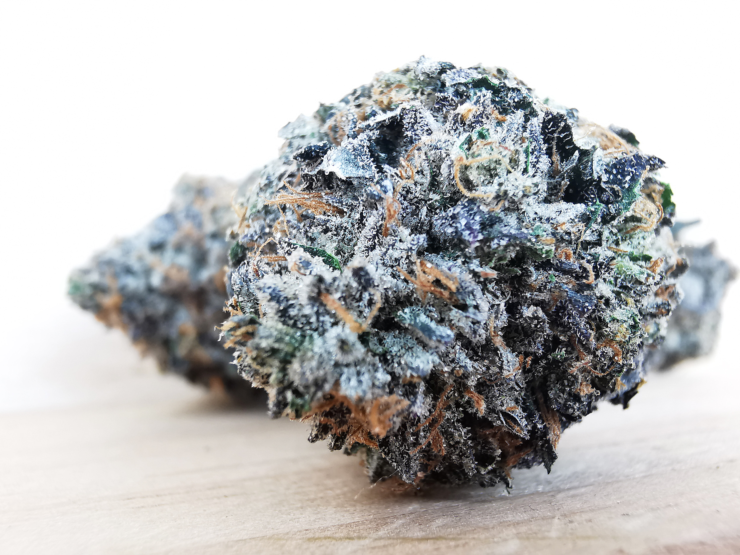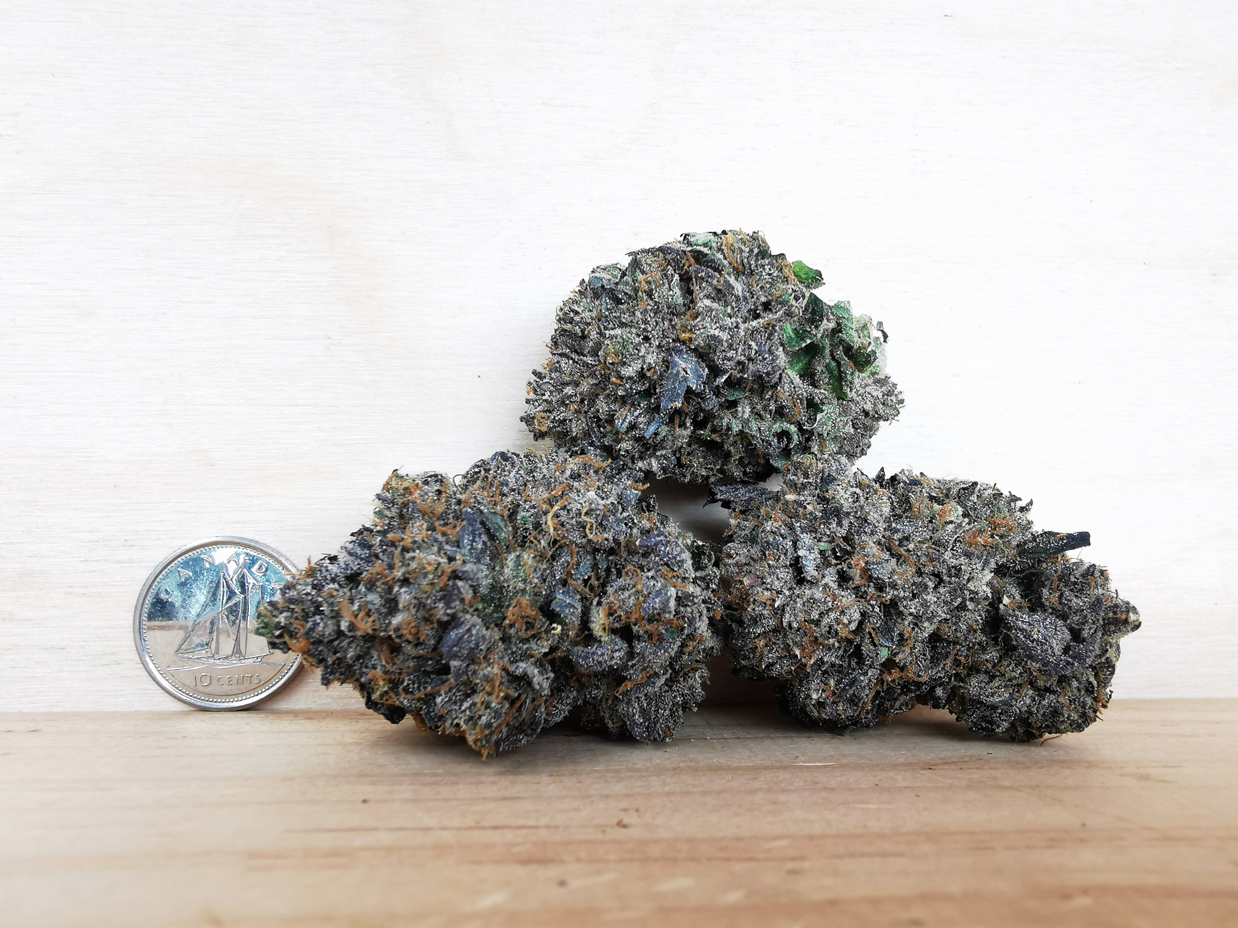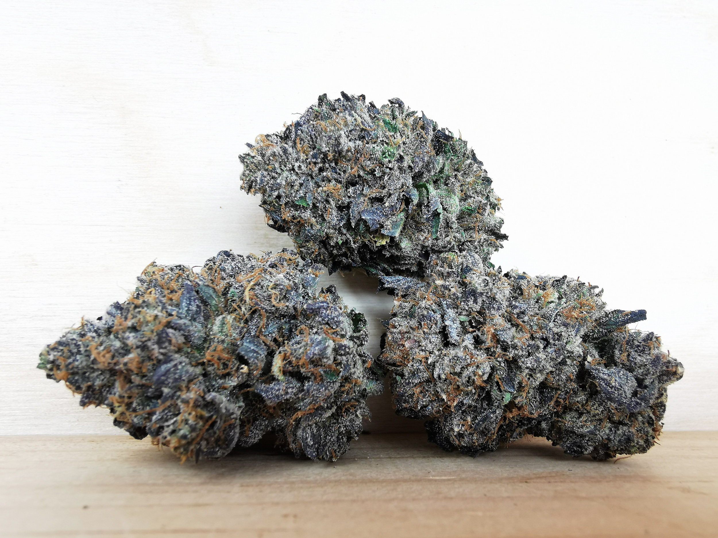 Batch Features: Big, chunky bud structure with dense formation, showcasing deep green and rich purple hues with vibrant orange pistils. Trichome-coated for a frosty, high-end finish.