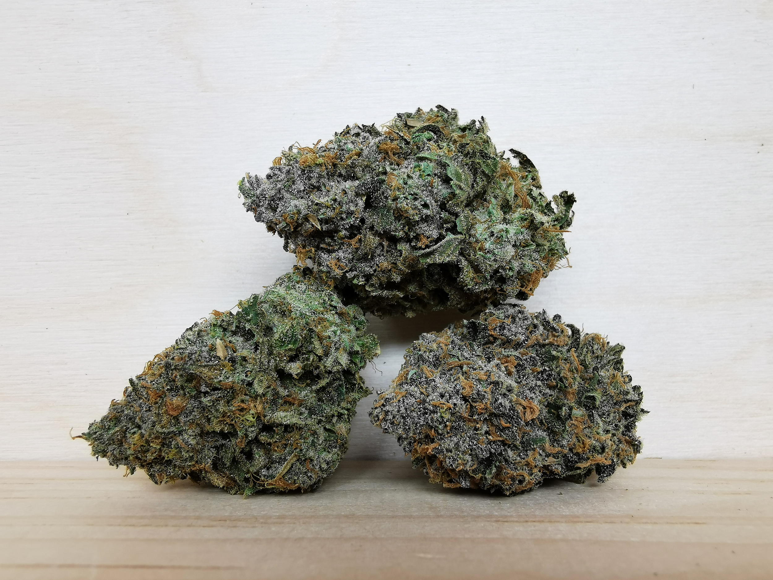 Mint Chocolate Chip is an evenly balanced hybrid (50% indica/50% sativa) strain created through crossing the delicious SinMint Cookies with the infamous Green Ribbon BX strain. This tasty bud packs the flavor you know and love from SinMint Cookies together with the energetic high of Green Ribbon for an amazing experience. Mint Chocolate Chip has a flavor you’d expect, chocolate nutty cookies with a punch of sharp mint! The aroma is a little different, taking on an earthy overtone with hints of rich spices and dank mocha as the nugs are burned. The Mint Chocolate Chip high comes on immediately after your first toke, smashing into your mind and launching it into a state of uplifted energy. You’ll feel motivated and focused with an urge to create. As your mind lifts higher and higher, your body will remain grounded in deep physical relaxation that is almost sedative in nature. Thanks to these full bodied effects and its high 18%+ average THC level, Mint Chocolate Chip is said to be perfect for treating conditions such as chronic pain, headaches, appetite loss, depression, and chronic fatigue. This bud has small round furry dark olive green nugs with orange furry hairs and bright white crystal trichomes.