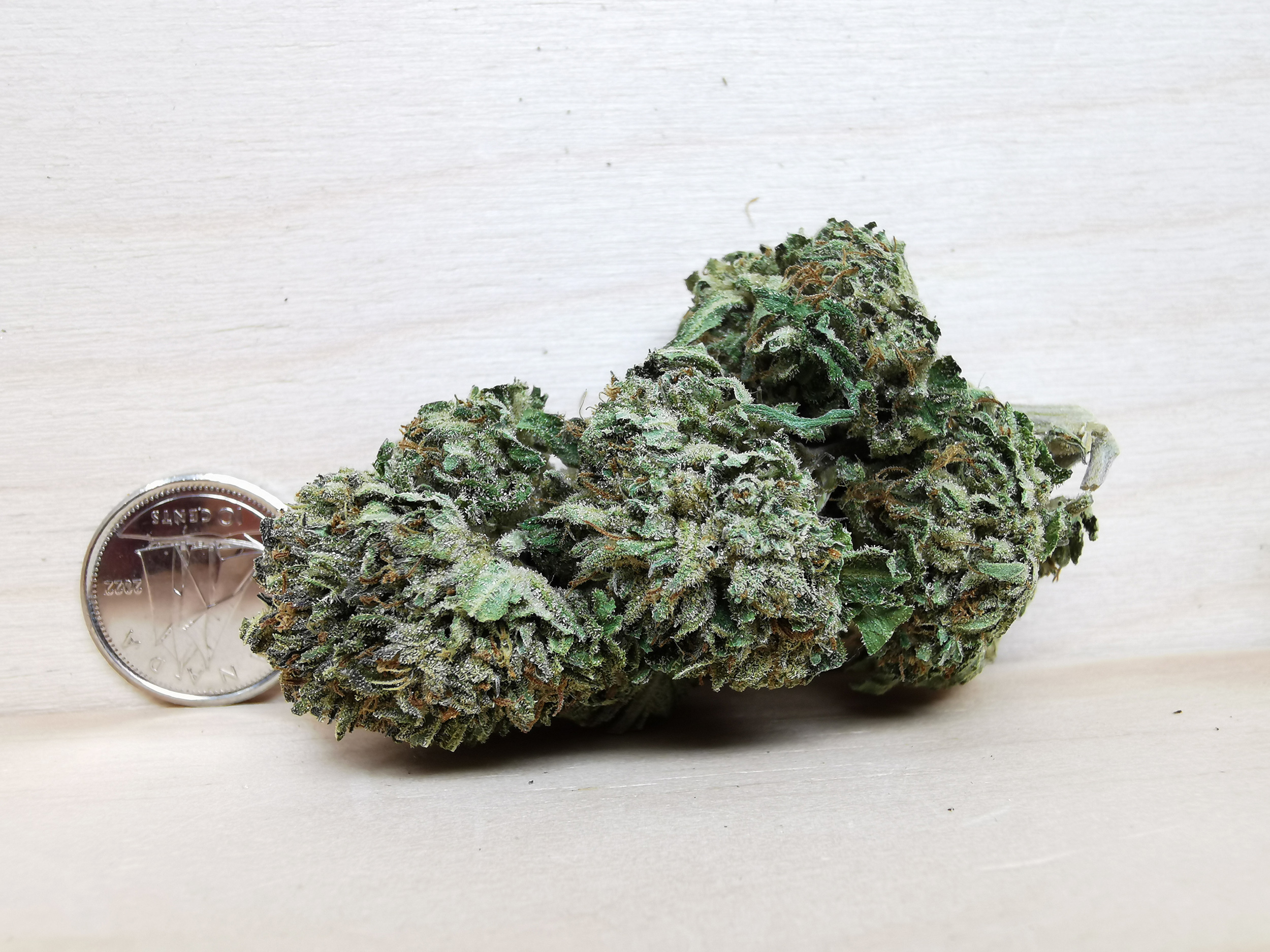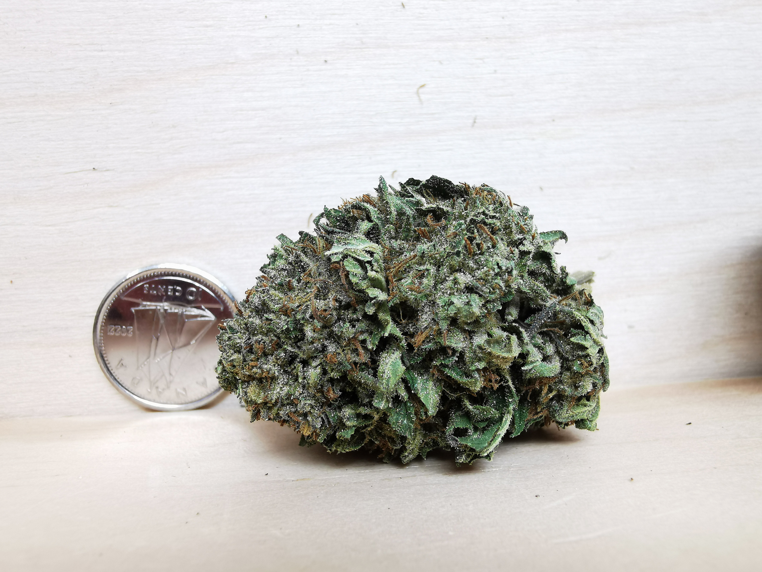 Disclaimer: fresh indica med to big size buds, nicely cured and a bit leafy but has fair amount of cake on them, light gas nose!