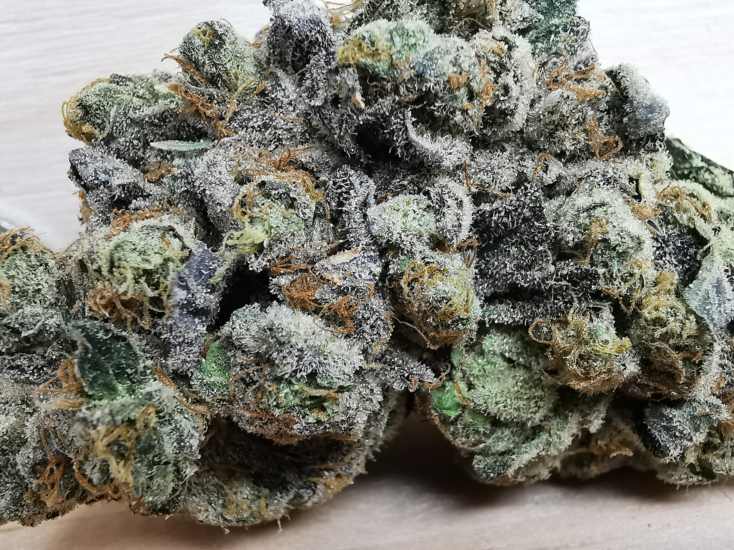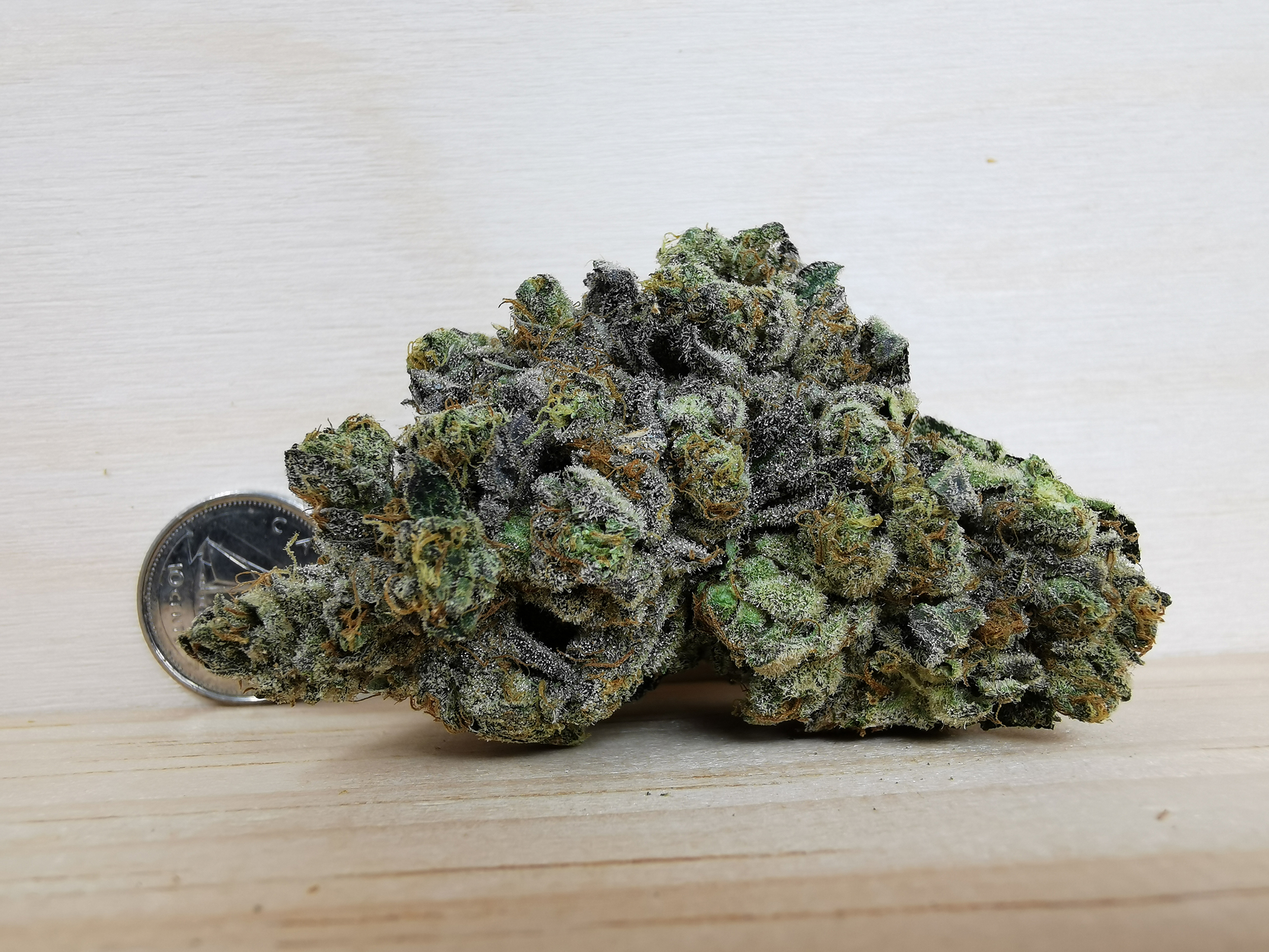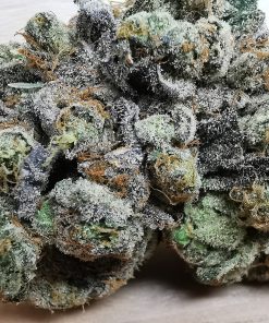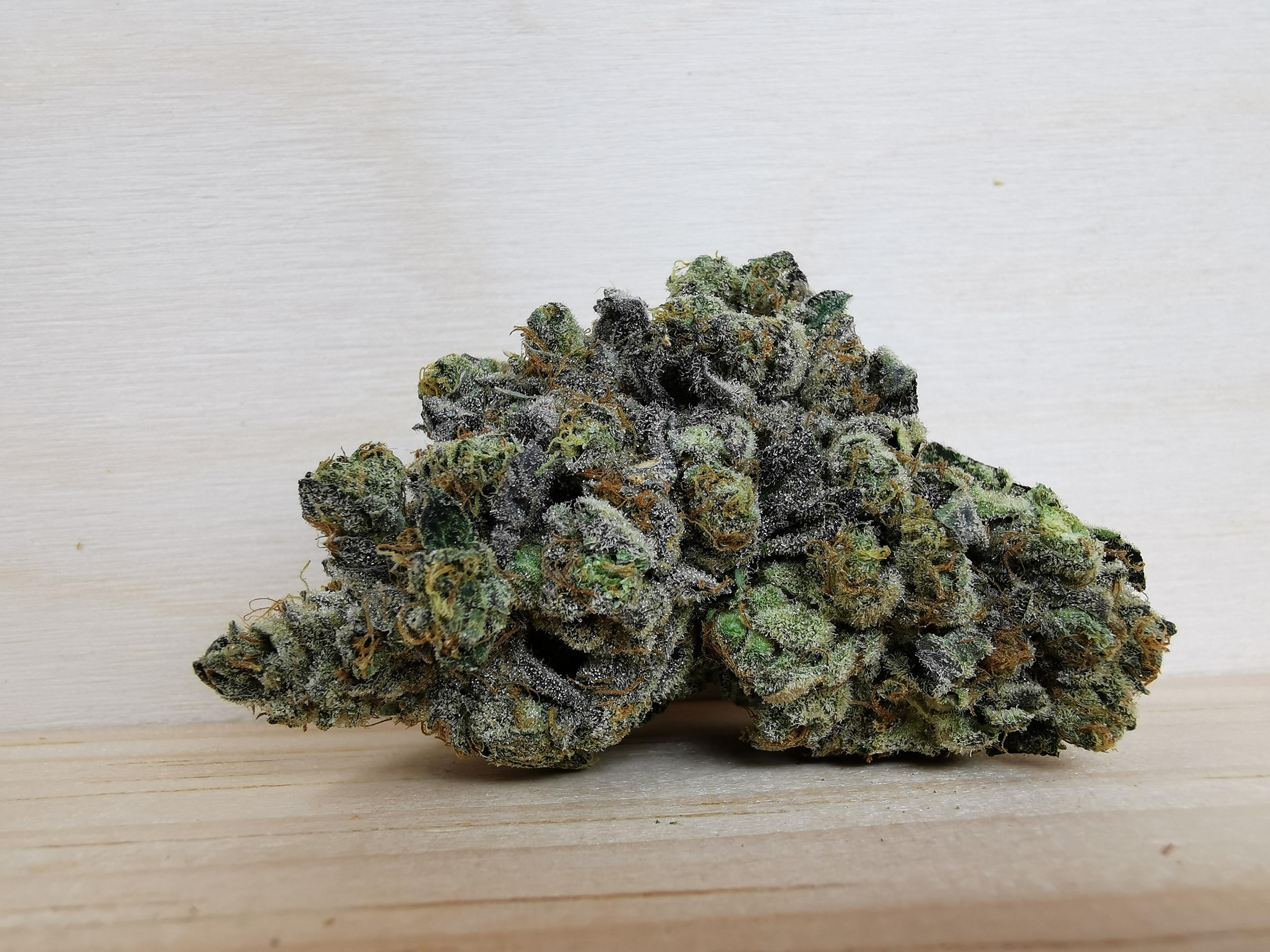 Lemon Royale is a sativa dominant hybrid strain (70% sativa/30% indica) created through crossing the iconic Lemon Tree X (GMO X Triangle Kush) strains. The perfect tasty citrusy strain for any lover of lemon flavors, Lemon Royale will have you feeling energized and happy from start to finish. Like its name suggests, Lemon Royale has a super sweet and creamy citrusy lemon flavor with light touches of skunky earthiness, too. The aroma is very similar, with a sour lemony overtone accented by spicy diesel and a punch of savory skunk. The Lemon Royale high starts almost as soon as you exhale, rushing into your brain with a high-flying euphoria. You’ll feel cerebrally stimulated, filled with happy energy and motivation that helps you get to work on any task at hand. At the same time, a budding sense of focus will settle in, allowing you to really get down to business. Combined with its high 26-29% average THC level, these effects make Lemon Royale a great choice for treating those suffering from conditions such as depression, chronic fatigue, ADD or ADHD, chronic stress and headaches or migraines. This bud has oversized rounded olive green nugs with thick bright orange hairs and a coating of frosty, tiny white crystal trichomes.