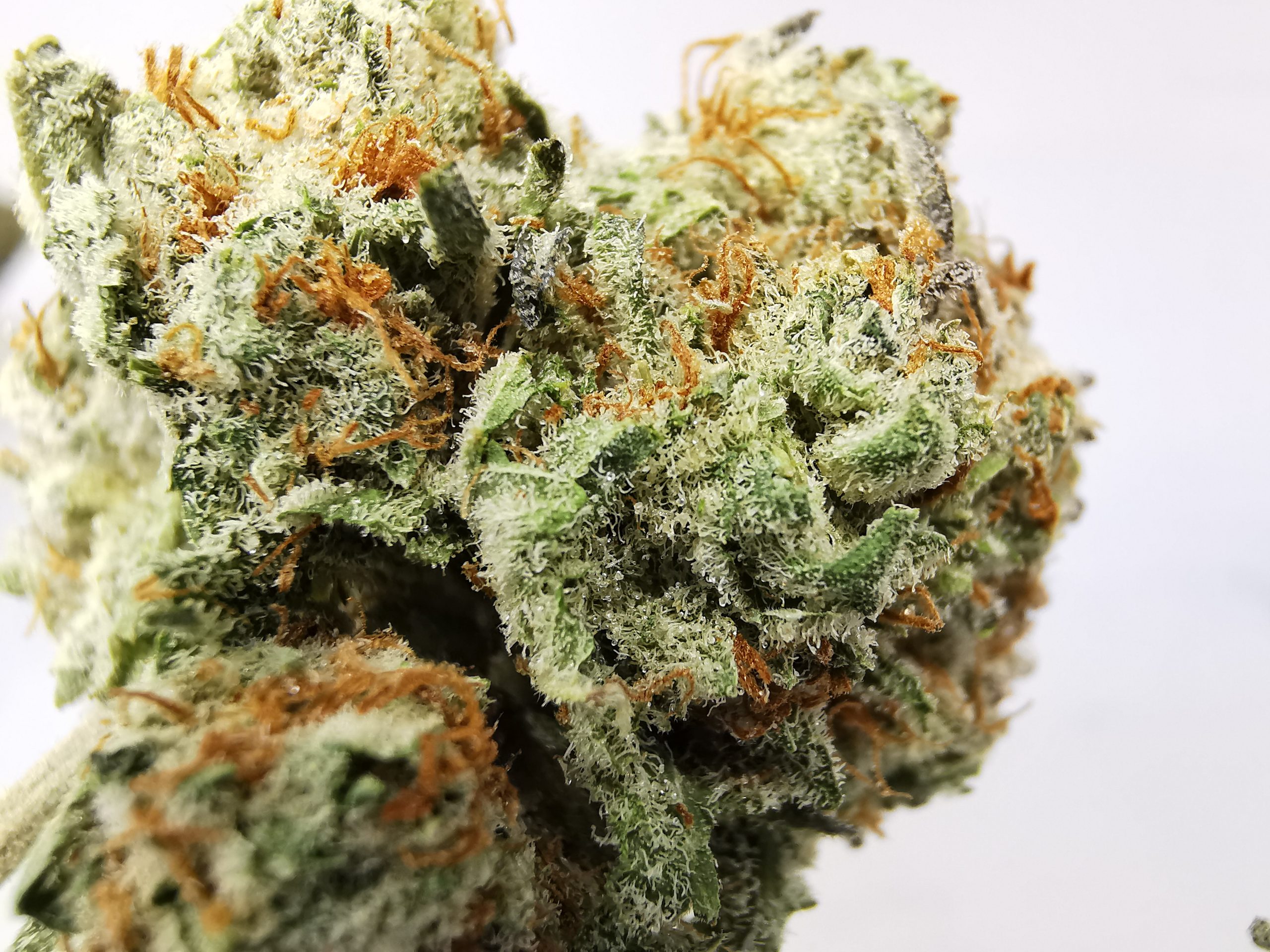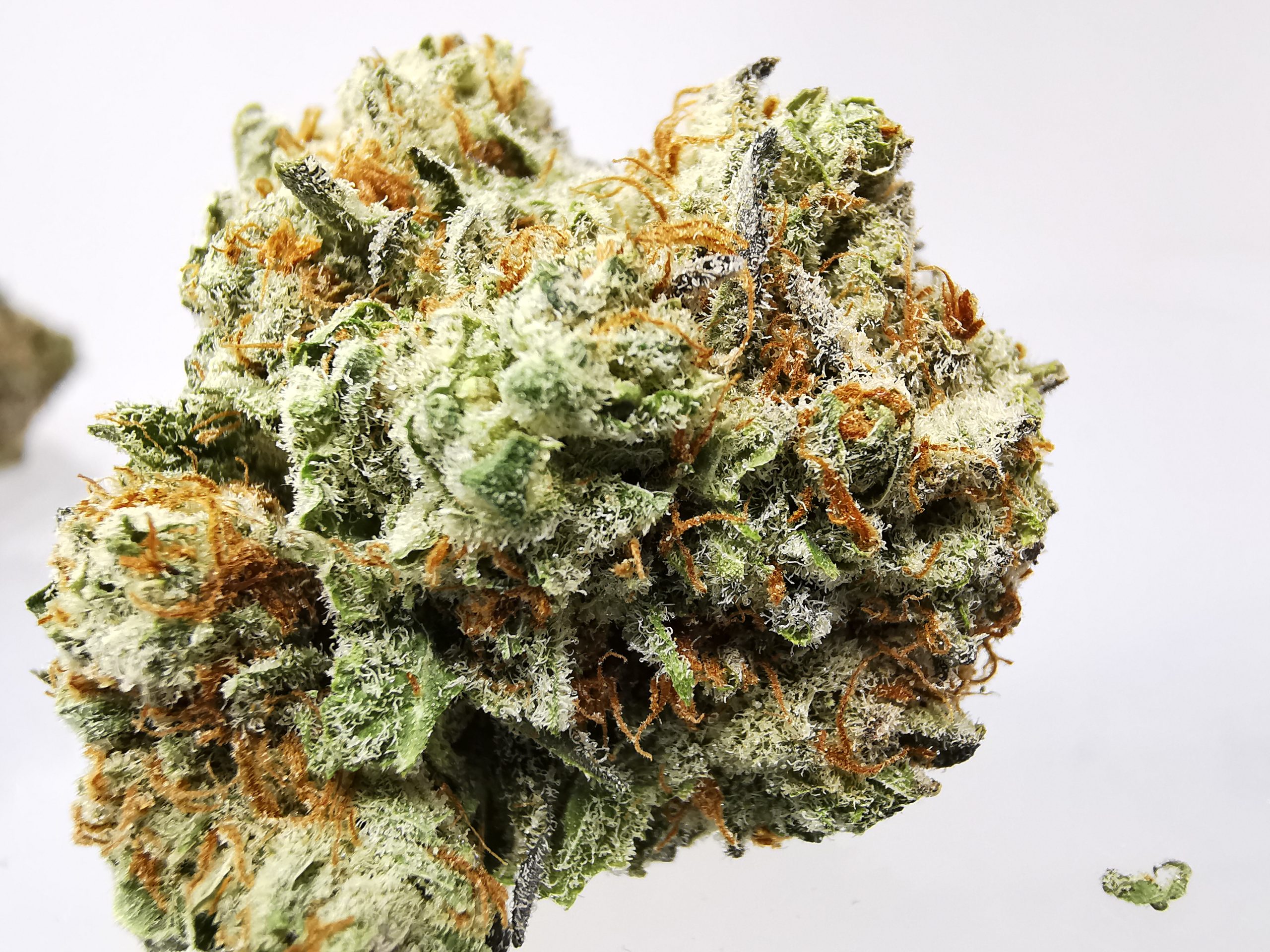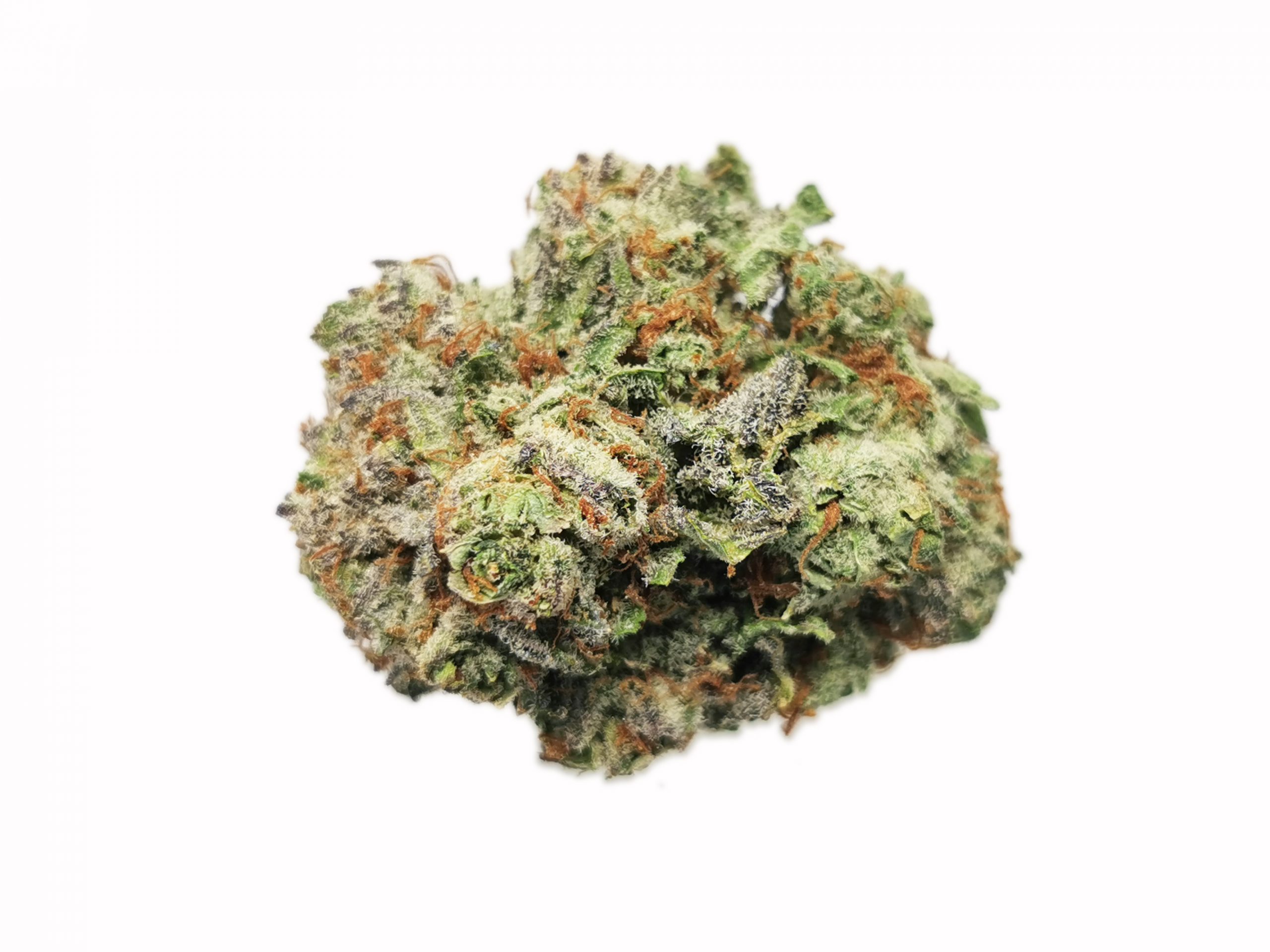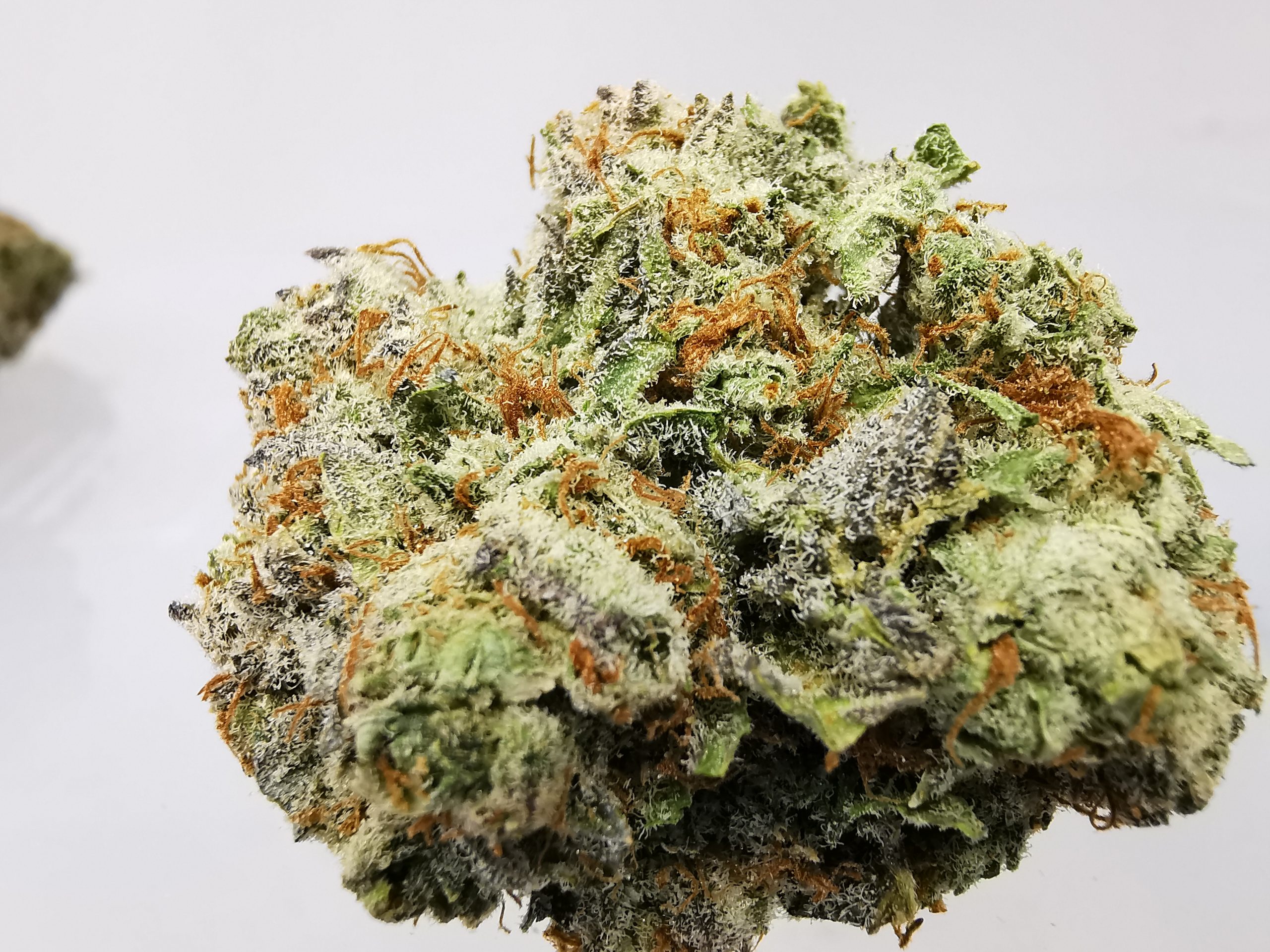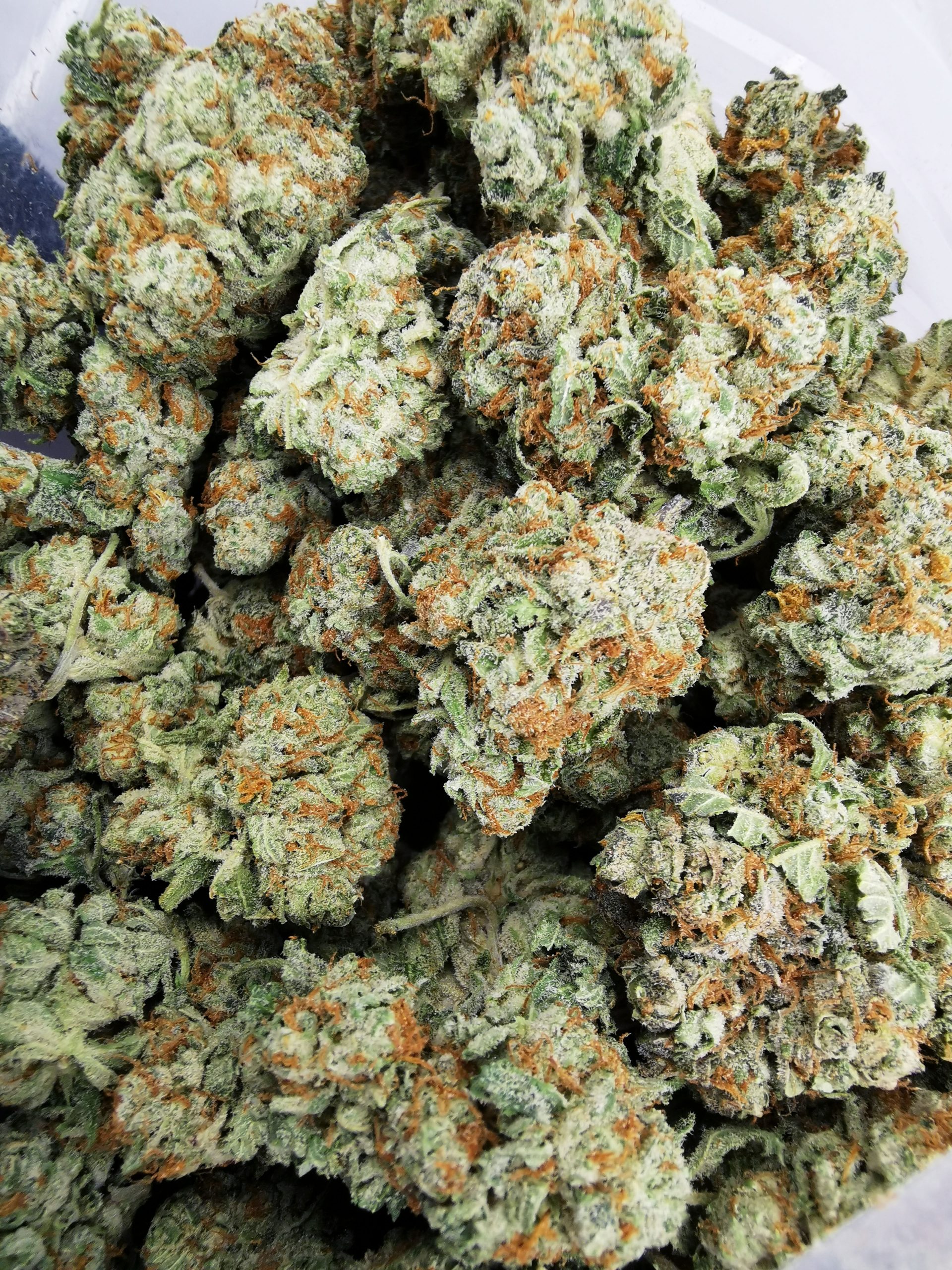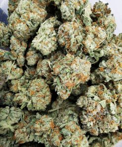 Jungle Cake AAAA is an evenly balanced hybrid strain (50% indica/50% sativa) created through crossing the infamous White Fire #43 X Wedding Cake strains. Known for its super heavy high and long-lasting effects, Jungle Cake is one hybrid that should not be underestimated. The high comes on with a slow build, lifting your mental state into pure euphoria and ease. You’ll be blissfully happy and completely unfocused in this state with the tendency to fall into fits of giggles at times. As your mind expands to new heights, your body will begin to settle into a state of pure relaxation and ease that won’t cause too much sedation or couch-lock. A pang of hunger comes next, leaving you reaching for anything in sight to snack on. Thanks to these effects and its insanely high 30-33% average THC level, Jungle Cake is often chosen to treat those suffering from conditions such as appetite loss or nausea, chronic stress and mood swings or depression. Jungle Cake buds have a sweet and sugary fruity berry flavor with hints of marshmallow and nuttiness, too. The aroma is very earthy and nutty with a sweet fruity overtone that’s both sugary and spicy. Jungle Cake buds have rounded tight grape-shaped forest green nugs with thin reddish orange hairs and a coating of frosty thick white crystal trichomes.