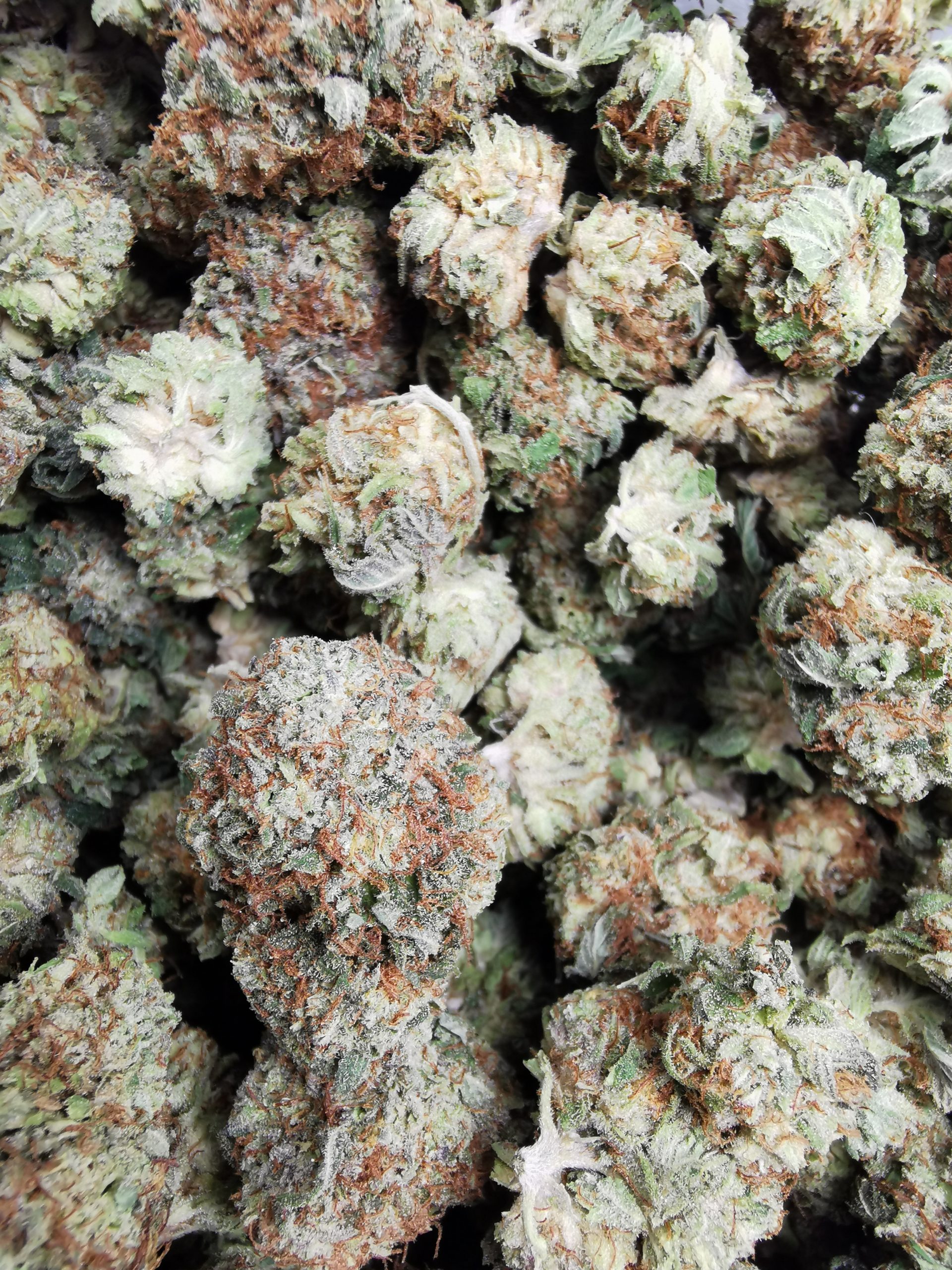 Small to Mid size buds, heavily frosted, and fruity gas gives way to a sour apple aroma that fills the room.