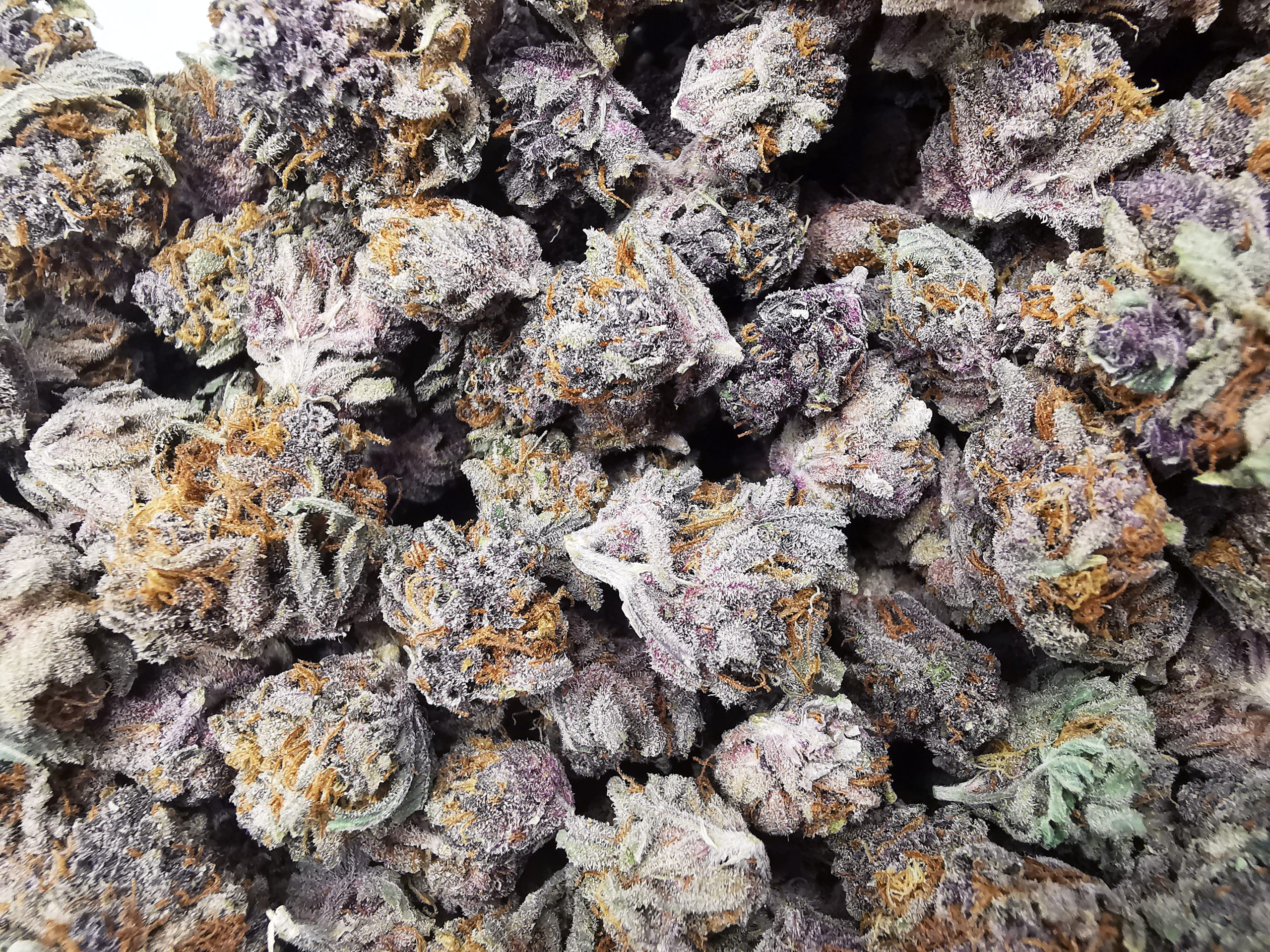 Grape Pupil is a special backcross line off our Star Pupil, with a bit more sativa dominance! This variety gives a strong visual high with patterns becoming more vivid, a dreamy feel yet sharp mental clarity. Mind opening, dissolving of negative thought patterns and allowing pleasure and bliss to come through past normal mental blockages. Very therapeutic, mild psychedelic feel. Users report general mental wellbeing and refreshment. She retains most of the Pupil’s traits with much increased vigor, added frost coverage, and holds the grape smell better, with less of the heavier spicy funk of the original Star Pupil line. These plants grow faster and stretch more, yielding better. The flowers are a medium purple lavender color throughout, super sticky and buried in white frosty trichomes, with large calyx structure on most