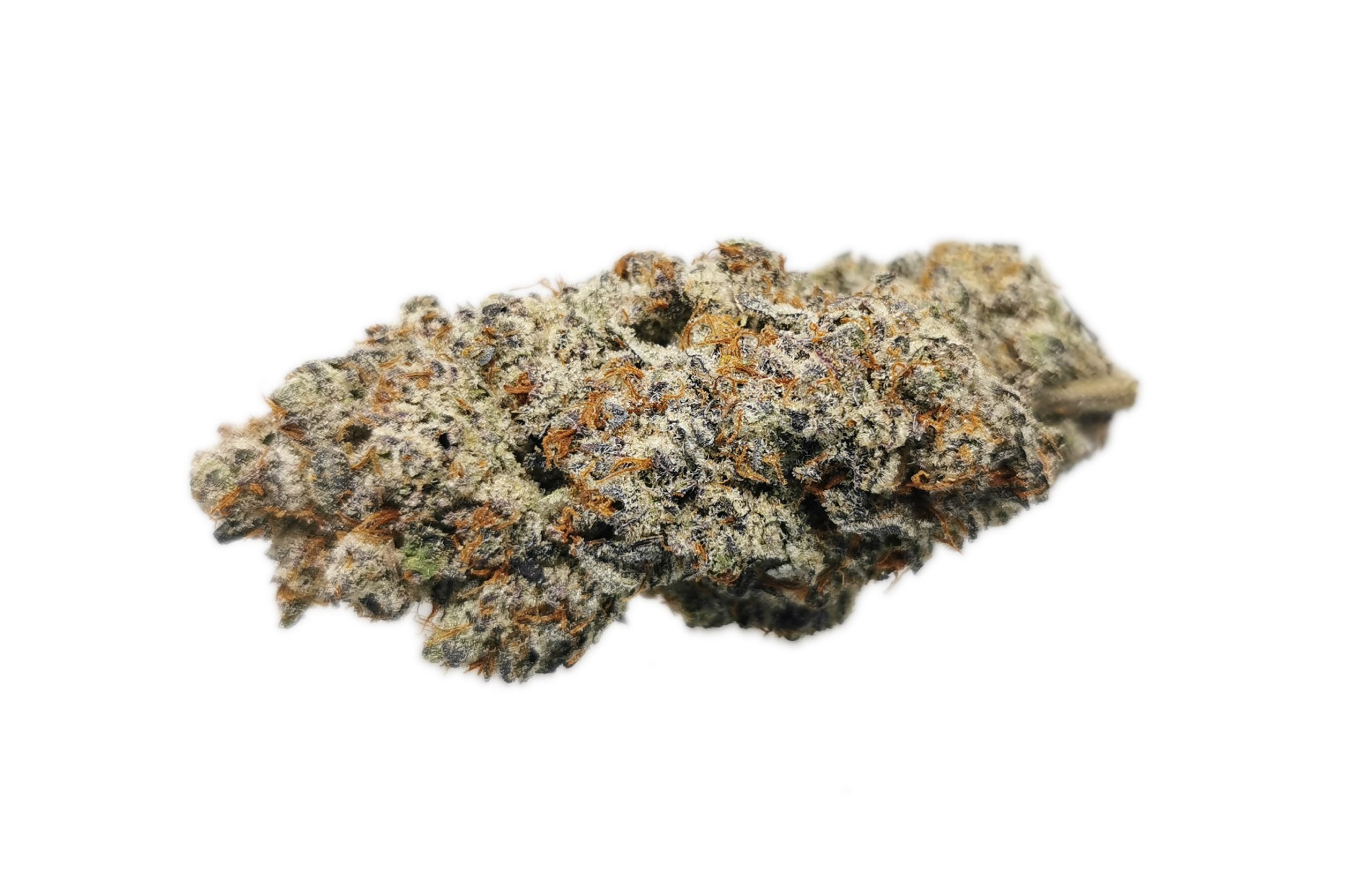 Mandarin Cookies is a rare sativa dominant hybrid strain (70% sativa/30% indica) created through crossing the classic Cookies X Mandarin Sunset strains. If you’re looking for a super bright flavor and a loud high, you’ve found it! Mandarin Cookies packs a sharp tangy citrus flavor with hints of rich nutty herbs upon exhale, almost like an almond cookie! The aroma is very earthy and kushy with a sour tangerine overtone that turns slightly pungent as the nugs are burned. The Mandarin Cookies high is just as eye-opening as the flavor, with a lifted high that hits both mind and body with an almost frenzied sense of energy and motivation. You’ll feel a rush of euphoria first that fills your mind with a sense of tingly creativity and energy. Soon, this effect will push out any negative or racing thoughts, leaving you slightly unfocused without affecting your energy in the slightest. This is accompanied by a light relaxing body high that keeps your limbs in a state of calm without causing sedation. With these effects and its high 19-26% average THC level, Mandarin Cookies is perfect for treating those suffering from chronic pain, depression, headaches or migraines, ADD or ADHD, and chronic fatigue. This bud has elongated pepper-shaped olive green nugs with thick yellow-orange hairs and a coating of tiny frosty white crystal trichomes.