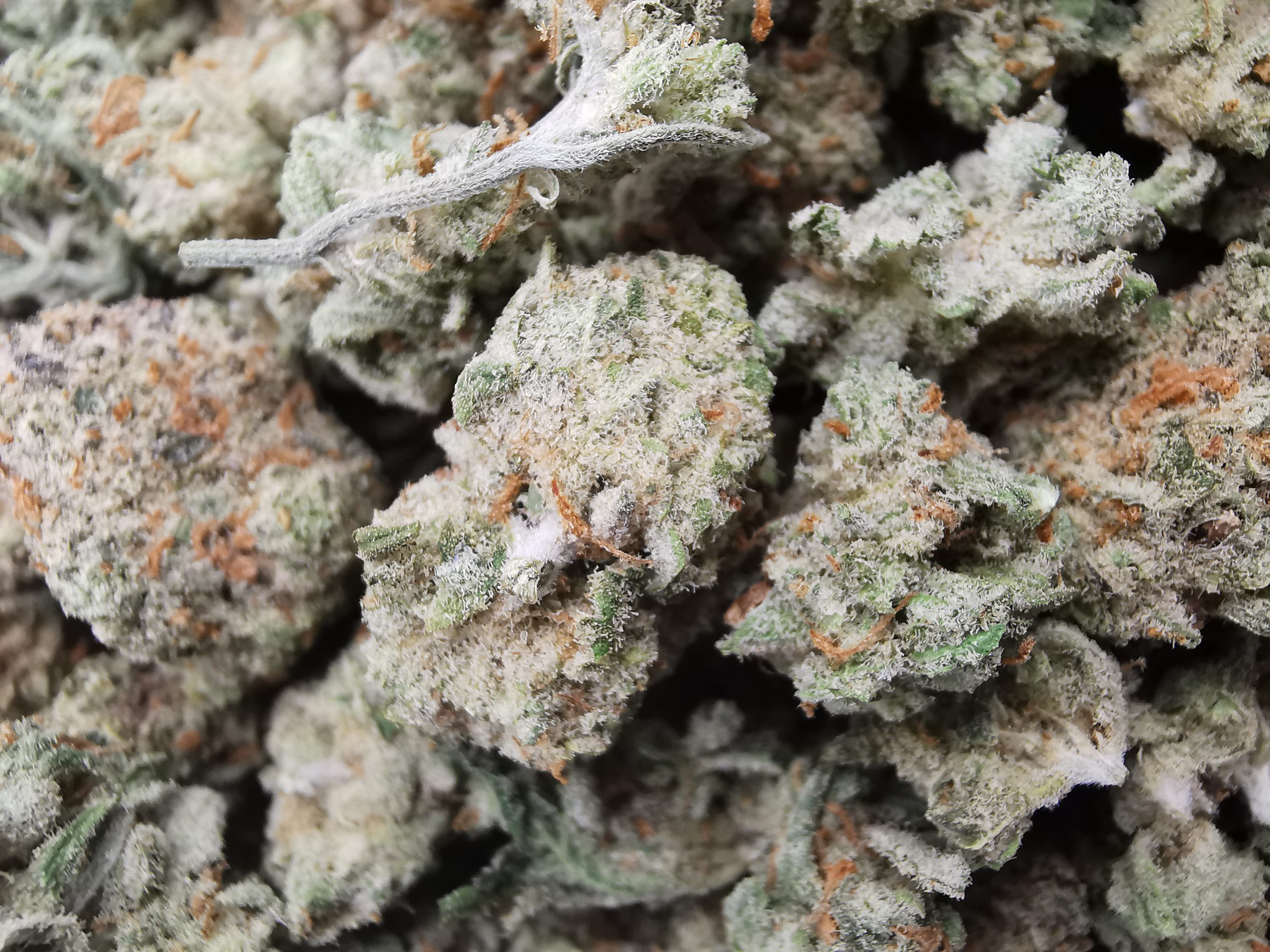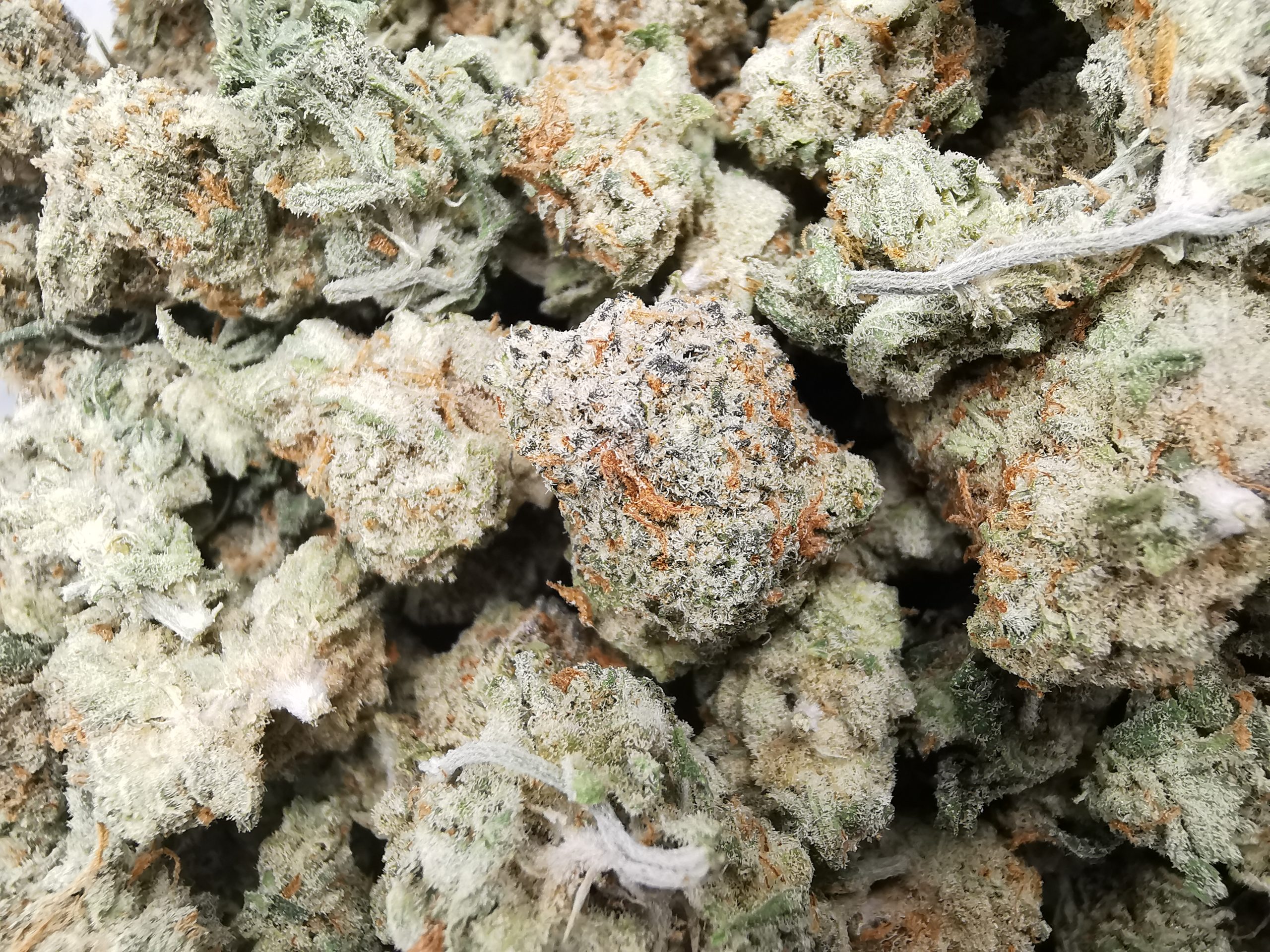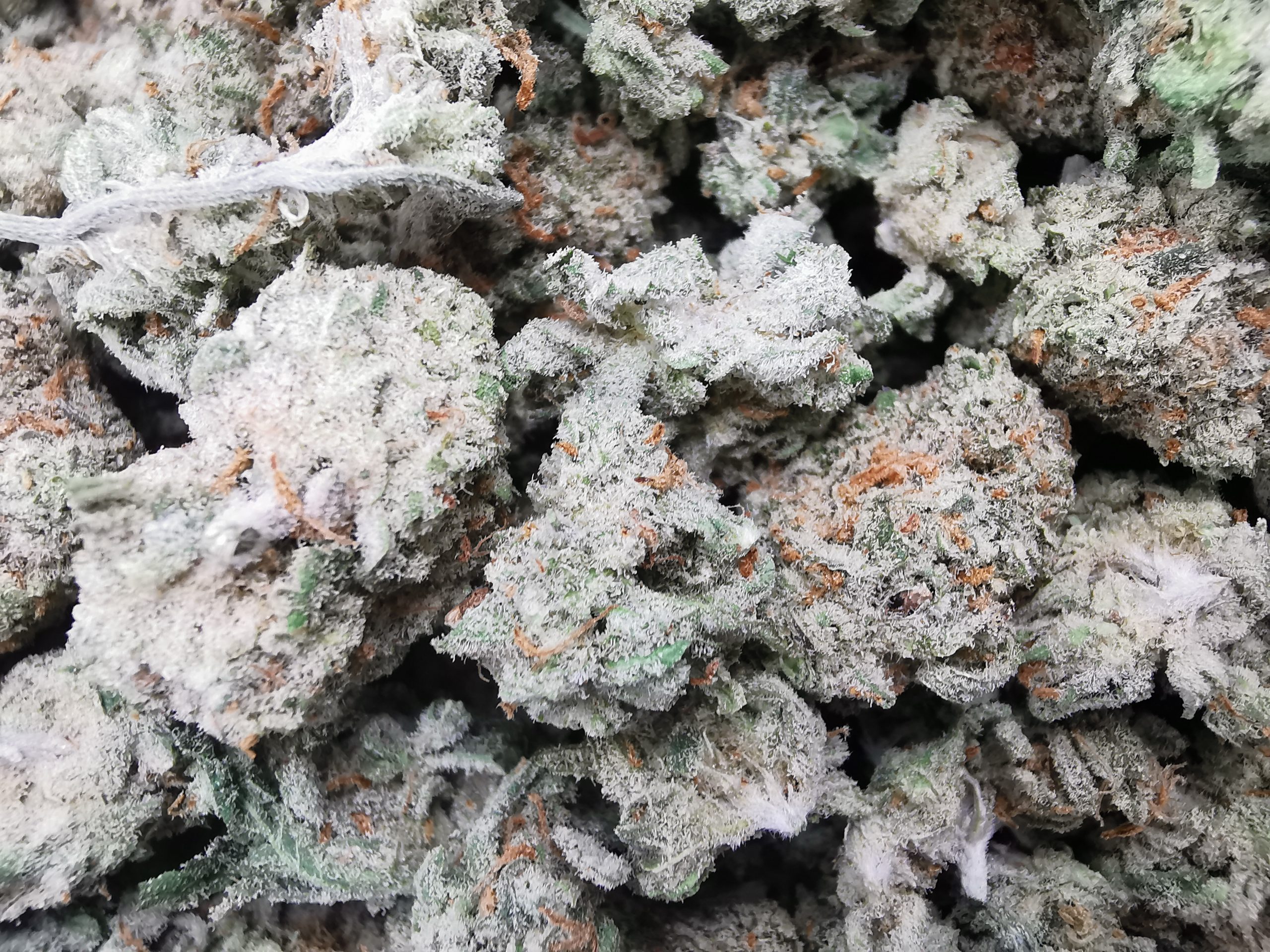 Mendo Breath is a super rare indica dominant hybrid strain created through crossing the classic OG Kush Breath with the rare Mendo Montage strain. This hard to find bud brings on the potency, with a THC level that bottoms out at about 21-26% on average and dazzling full bodied effects. Mendo Breath comes on pretty quickly after your first few hits, filling your mind and body with a happy tingly effect. This tingle quickly turns into a full on buzz, washing over you physically and pulling you down into a heavy couch-locked body high. As you lose your physical form to happy sedation, your mind will lift into a state of hazy euphoria that leaves you unable to focus and pretty sleepy at times. Thanks to these nighttime effects and its high THC level, Mendo Breath is said to be perfect for treating conditions such as chronic pain, inflammation, muscle spasms or cramps, and chronic stress. This bud has a sweet vanilla caramel candy flavor and a fresh earthy aroma to match. Mendo Breath buds have lumpy round minty green nugs with furry orange hairs and a thick frosty coating of tiny bright white crystal trichomes.