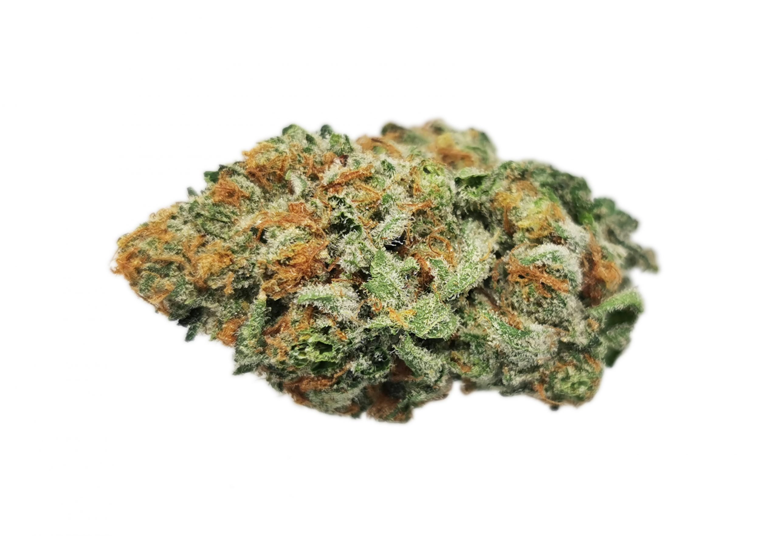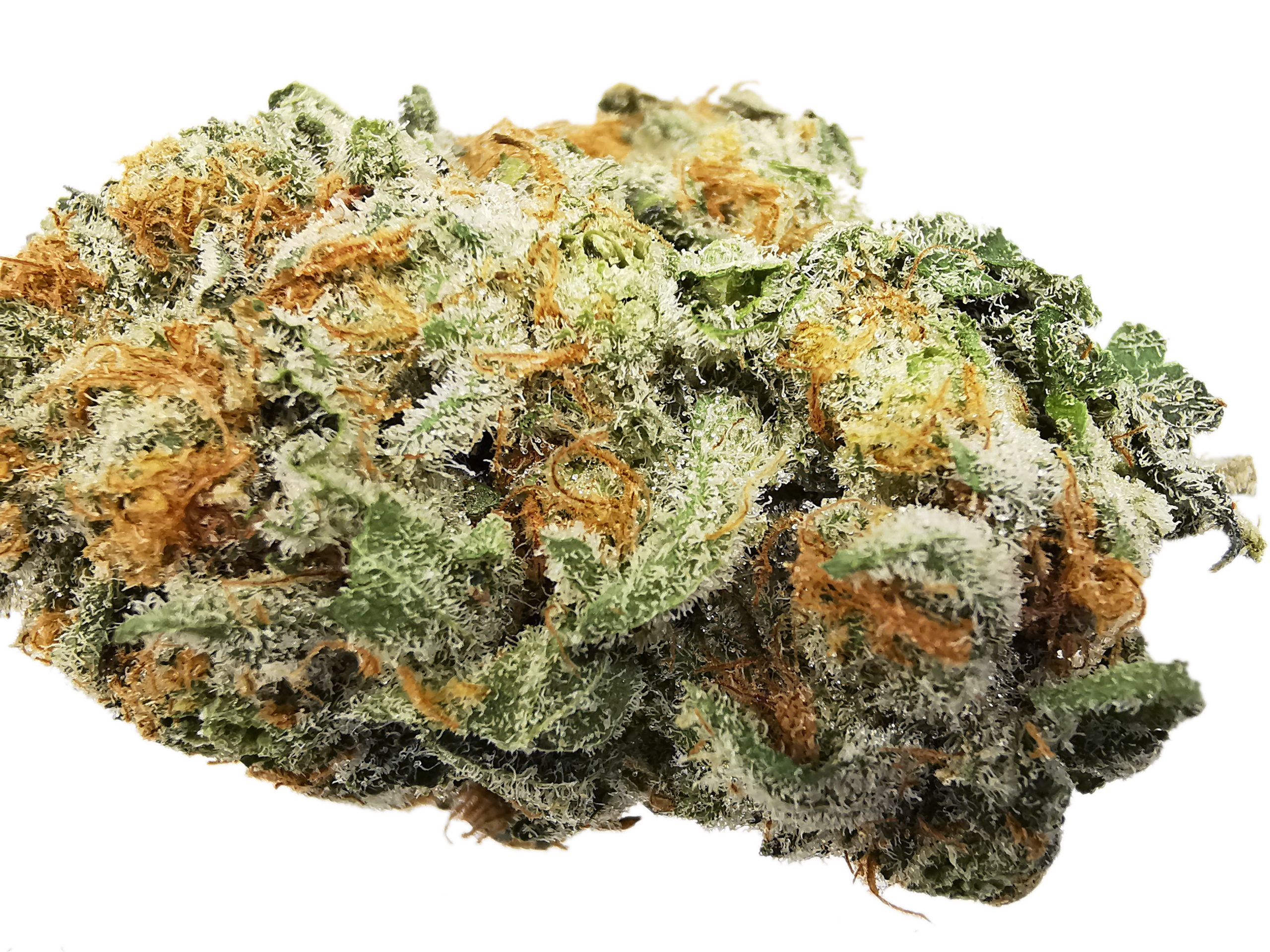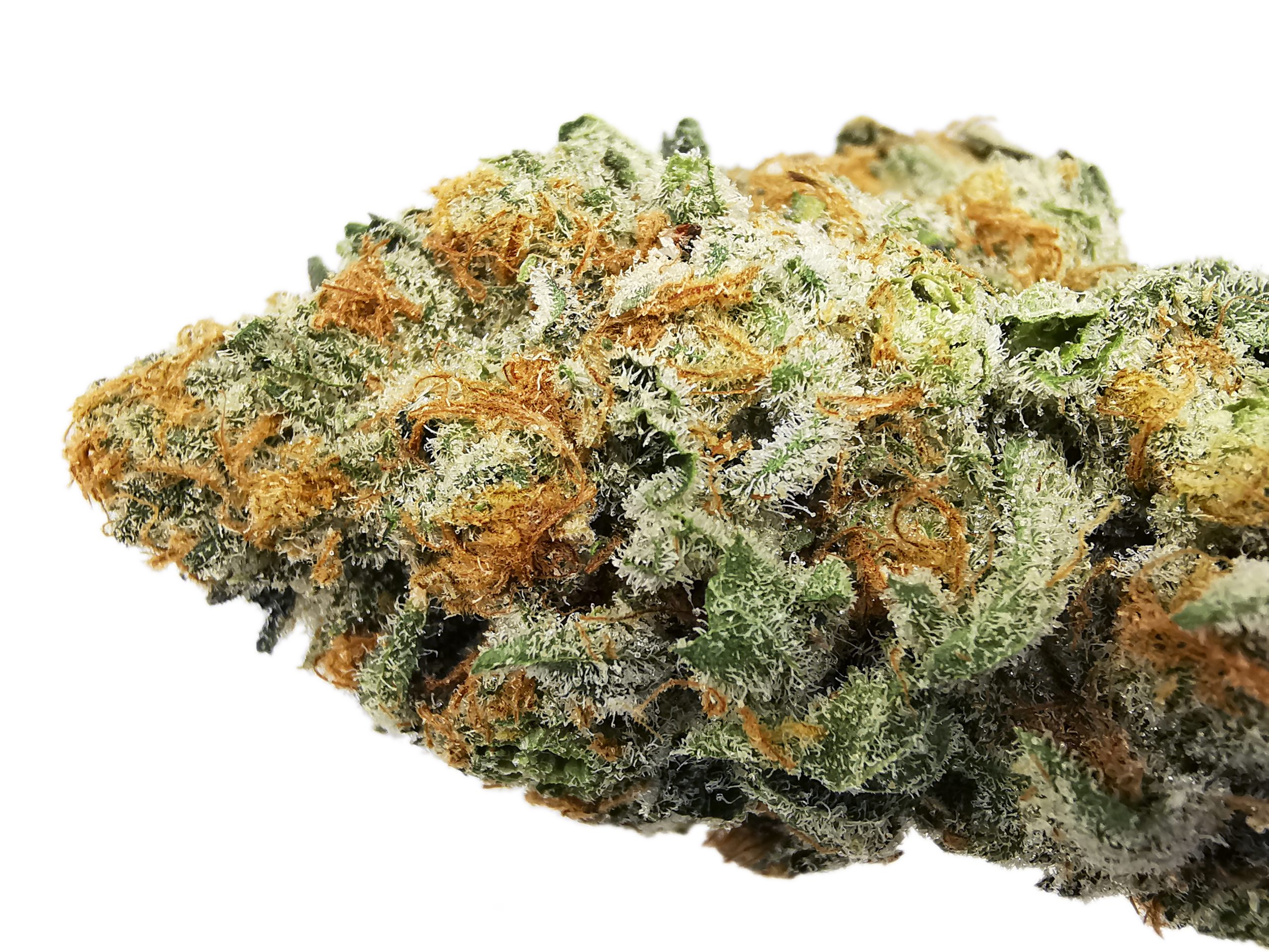 Known for its citrus aroma, Orange Push Pop is a popular sativa-dominant hybrid that delivers moderate cerebral effects (80:20 sativa/indica ratio). THC levels top out at about 28%, so it isn’t the most potent medical strain. But the euphoric effects are pleasant, with increased energy and creativity. CBD levels are very low, about 0.05%, so this strain isn’t ideal for patients whose disorders respond to that substance. Orange Push Pop is the offspring of California Orange, and Blueberry, an indica.