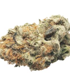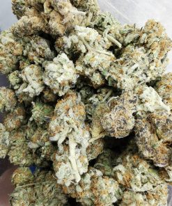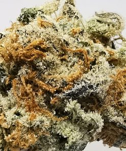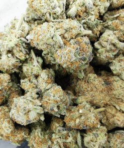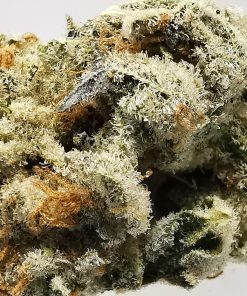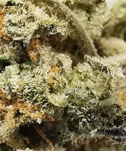 This is a rare evenly balanced hybrid strain (50% indica/50% sativa) created through crossing the classic Dosidos X Mendobreath F2 strains. With this bud, the name says it all – the flavor is nutty and earthy with a rich herbal overtone. The aroma follows the same profile, with an earthy herbal overtone that’s accented by rich nuttiness. As soon as you exhale, the effects of Peanut Butter Breath will sink in, starting with a cerebral lift before spreading throughout the rest of your body in tingly waves of energy. These tingles start in the back of your neck and spine before spreading their buzzing tendrils throughout the entirety of your body, leaving you hopelessly relaxed, kicking back without a care in the world – that is, until the munchies hit. Be sure to have some snacks on hand, since you won’t really be able to get up off the couch to hunt for any at this point. With these long-lasting effects and its high 21-28% average THC level, Peanut Butter Breath is often chosen to treat conditions such as appetite loss or nausea, depression, chronic stress, or chronic pain. This bud has long grape-shaped olive green nugs with bright red-orange hairs and a coating of thick frosty white purple-tinted crystal trichomes.