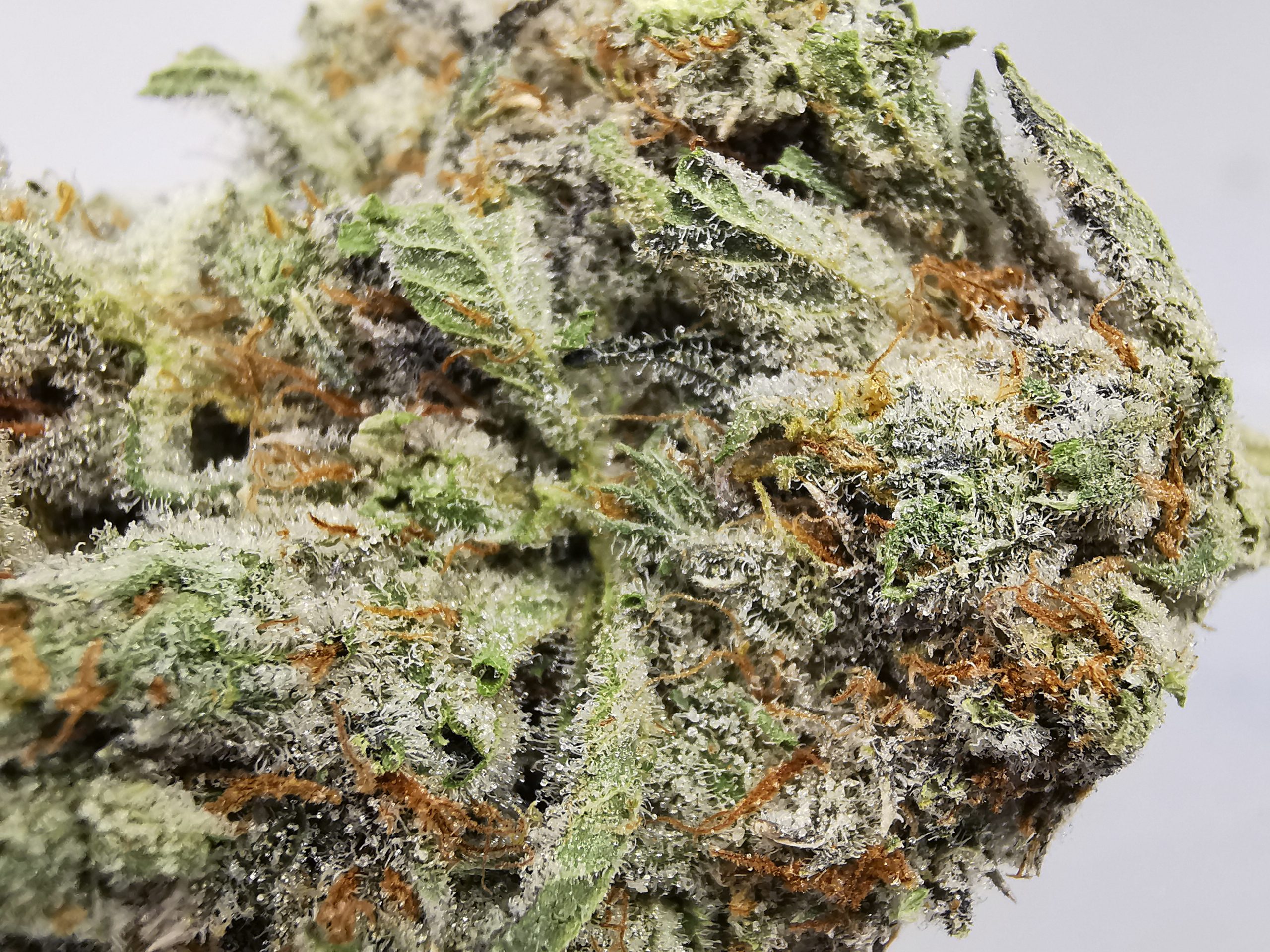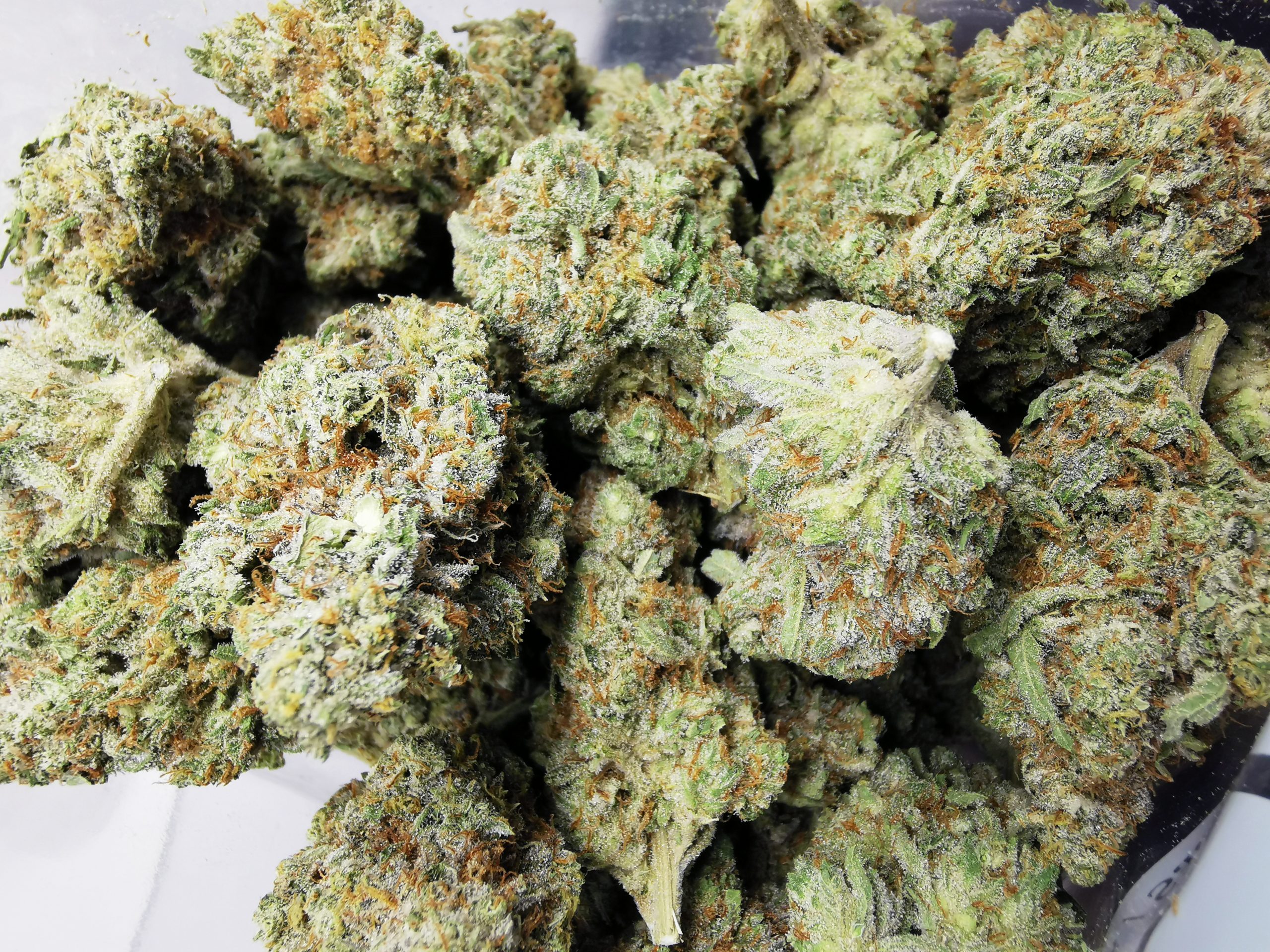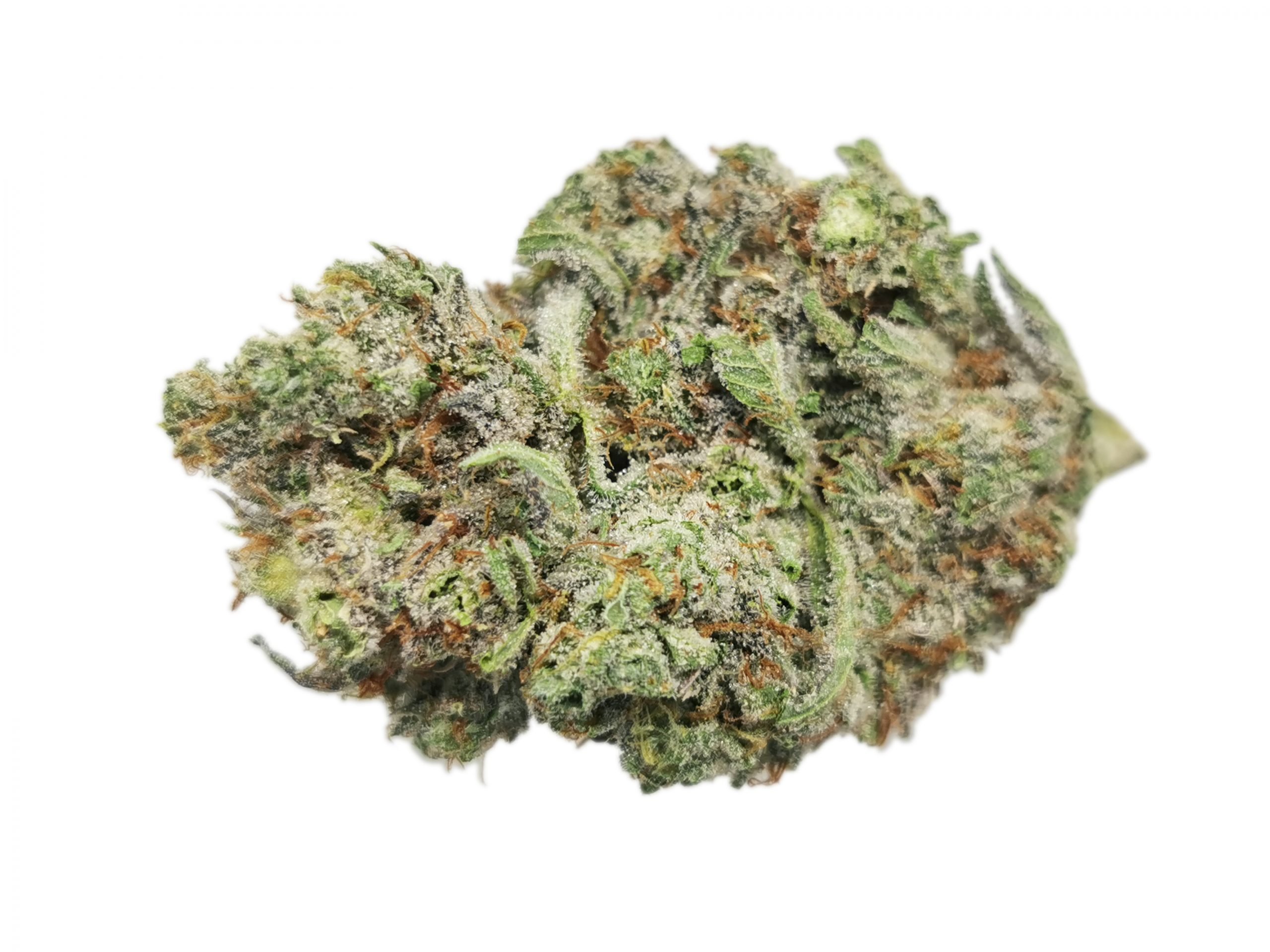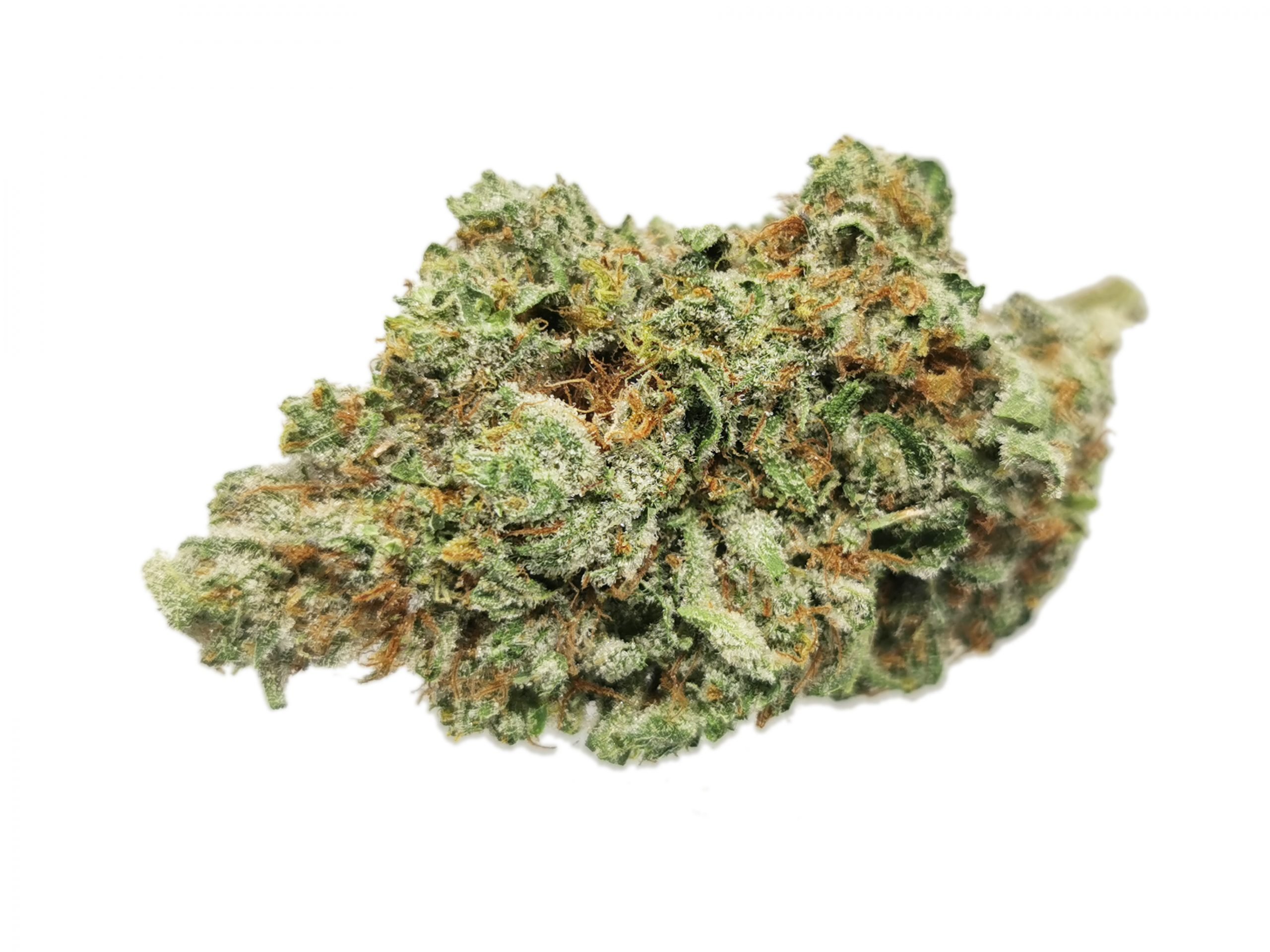Trainwreck didn’t get its name or claim to fame in the marijuana community for no reason at all. This exhilarating hybrid strain has mind blowing components that will hit you like a train after just a couple of hits. A combination of 2 sativas (Mexican and Thai) and one indica (Afghani), this strain is nothing short of a mental roller coaster ride. Although Trainwreck is mainly sativa dominant (80:20 sativa/indica ratio), you can expect a mellowing body high in addition to a cognitive high that administers imaginative and inventive thoughts. Patients commonly use Trainwreck to relieve pain, PTSD and stress. You can smoke this strain comfortably throughout the day even with its super high potency. It’s long green leaves are accompanied by a pine/citrus aroma that can’t be mistaken. You can expect a noticeable after taste of lemon with a slight cough when inhaling this strain.. There’s definitely a heavy amount of trichomes (hairs) on this strain which gives it a light green color and sometimes a subtle hint of gray.