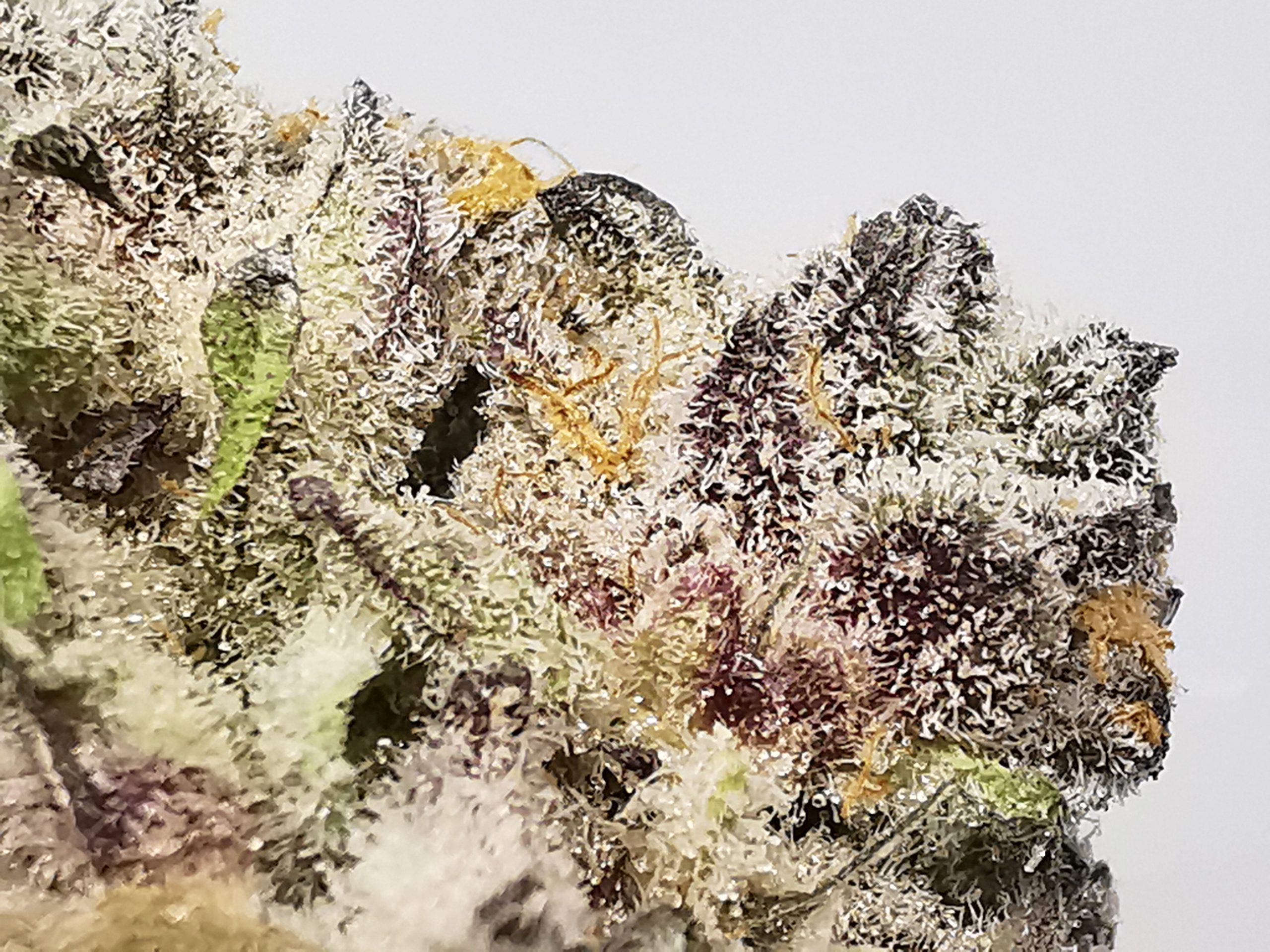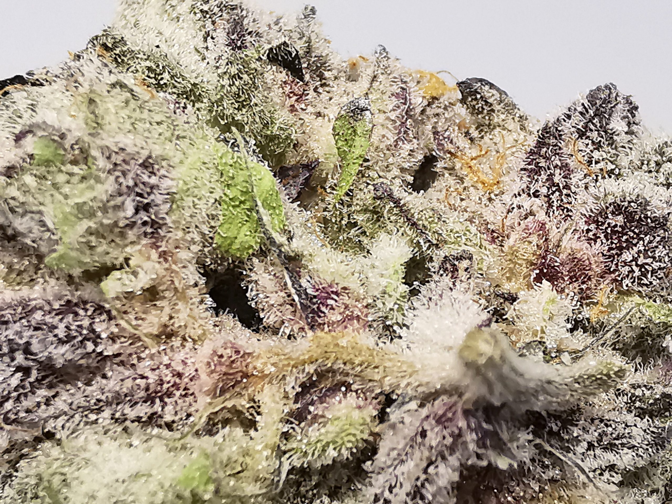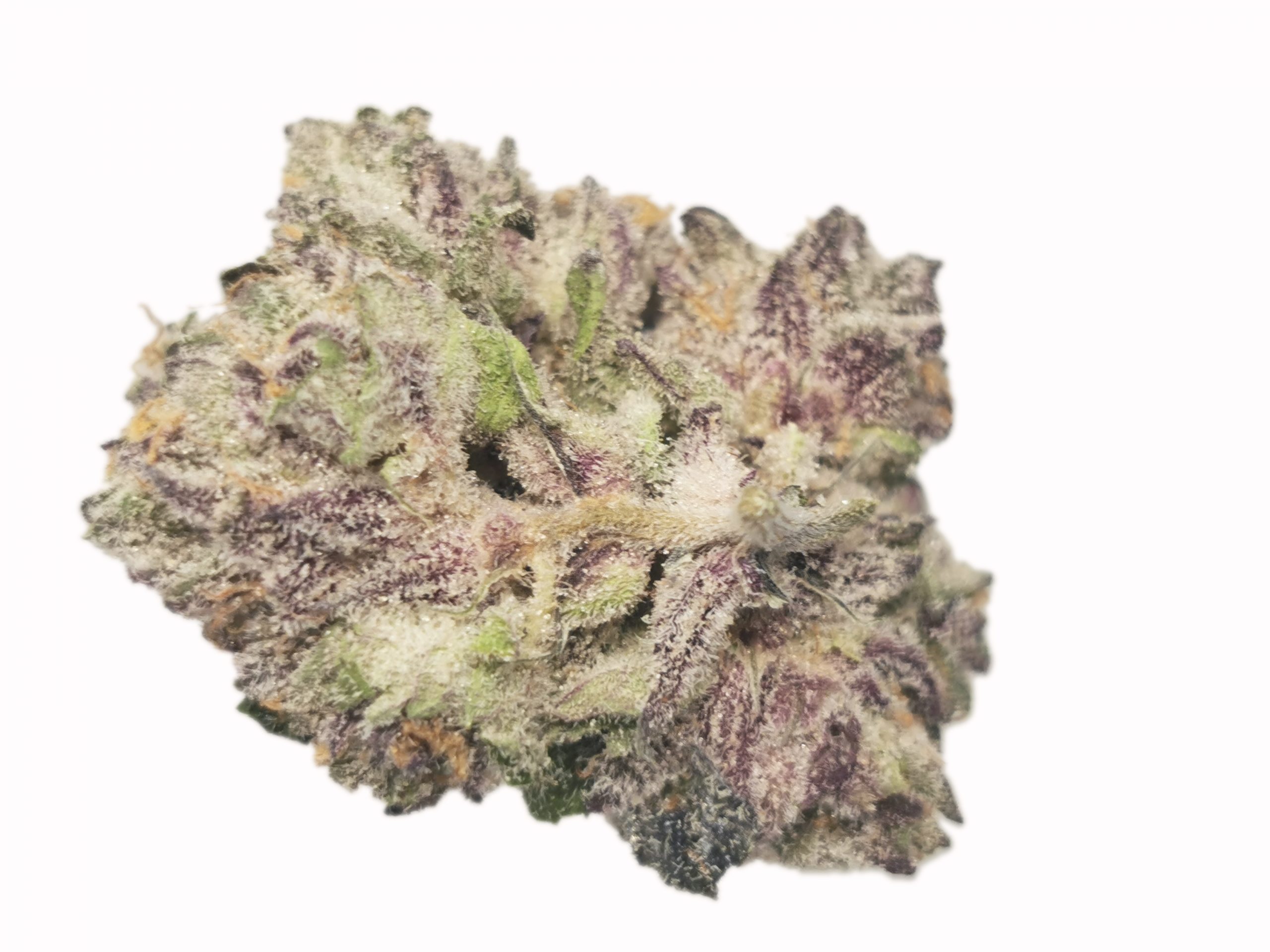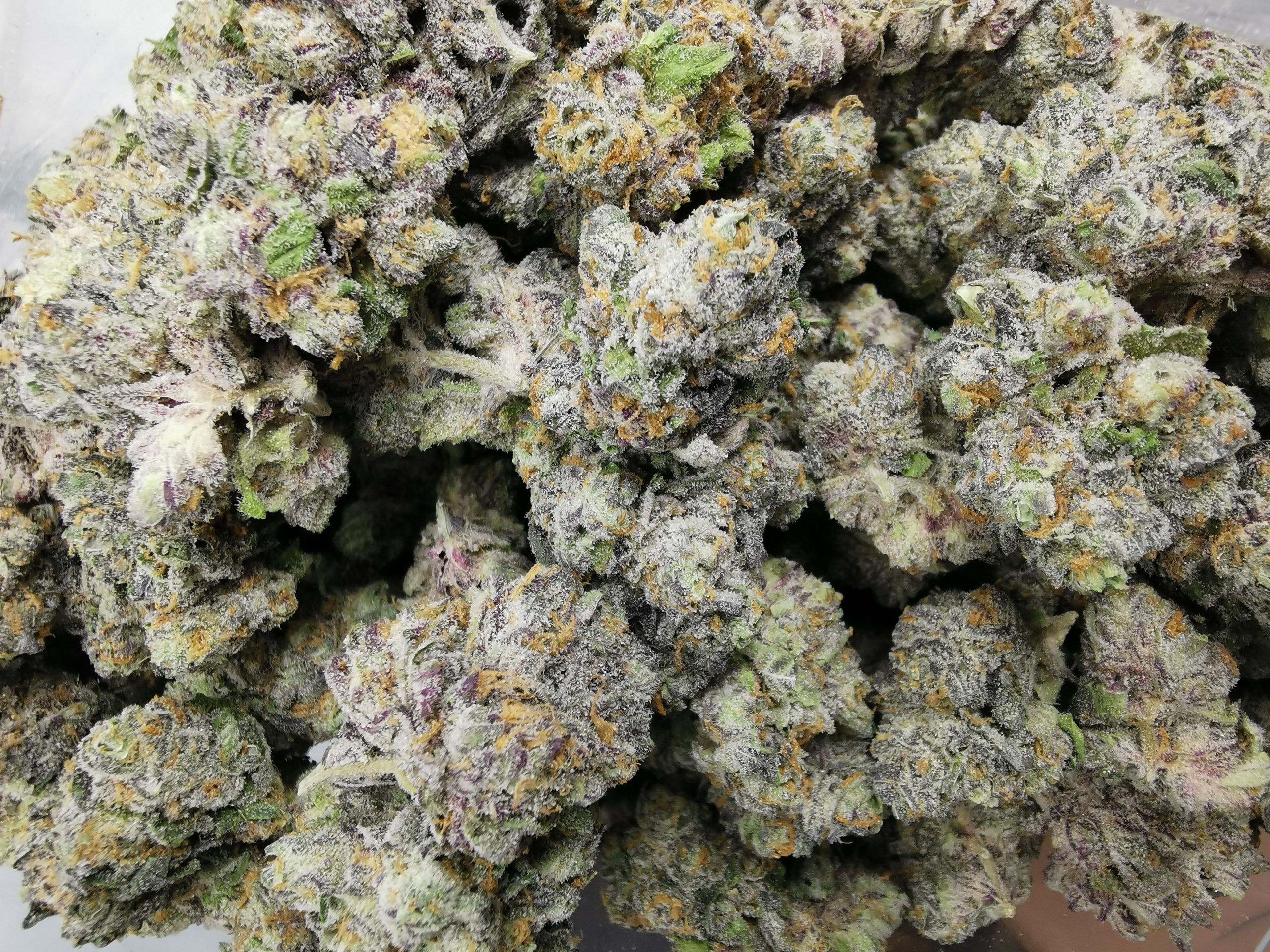 Caked out tight and dense buds with lots purple color.