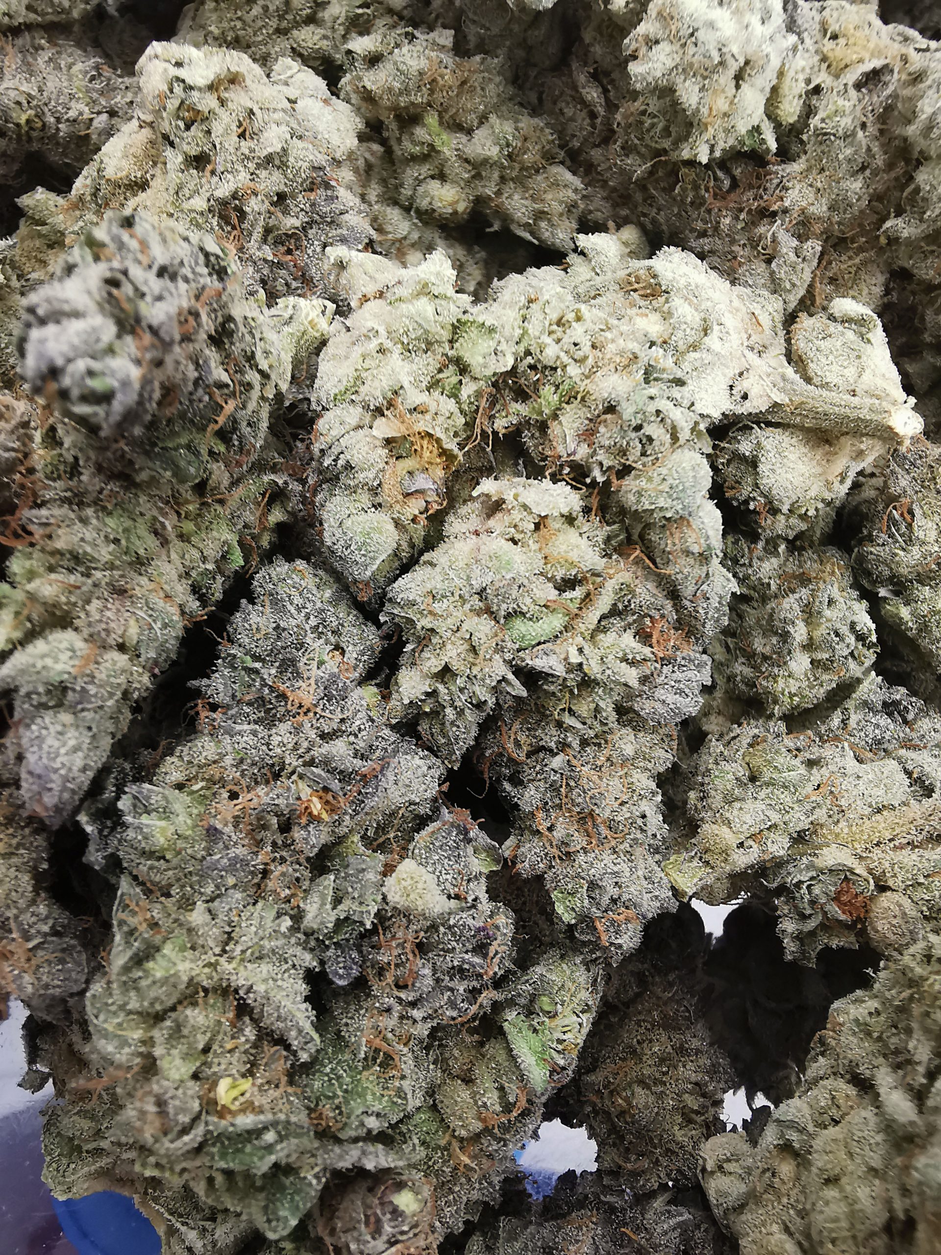 Huge buds coated with thriomes all over, lots of purple color.