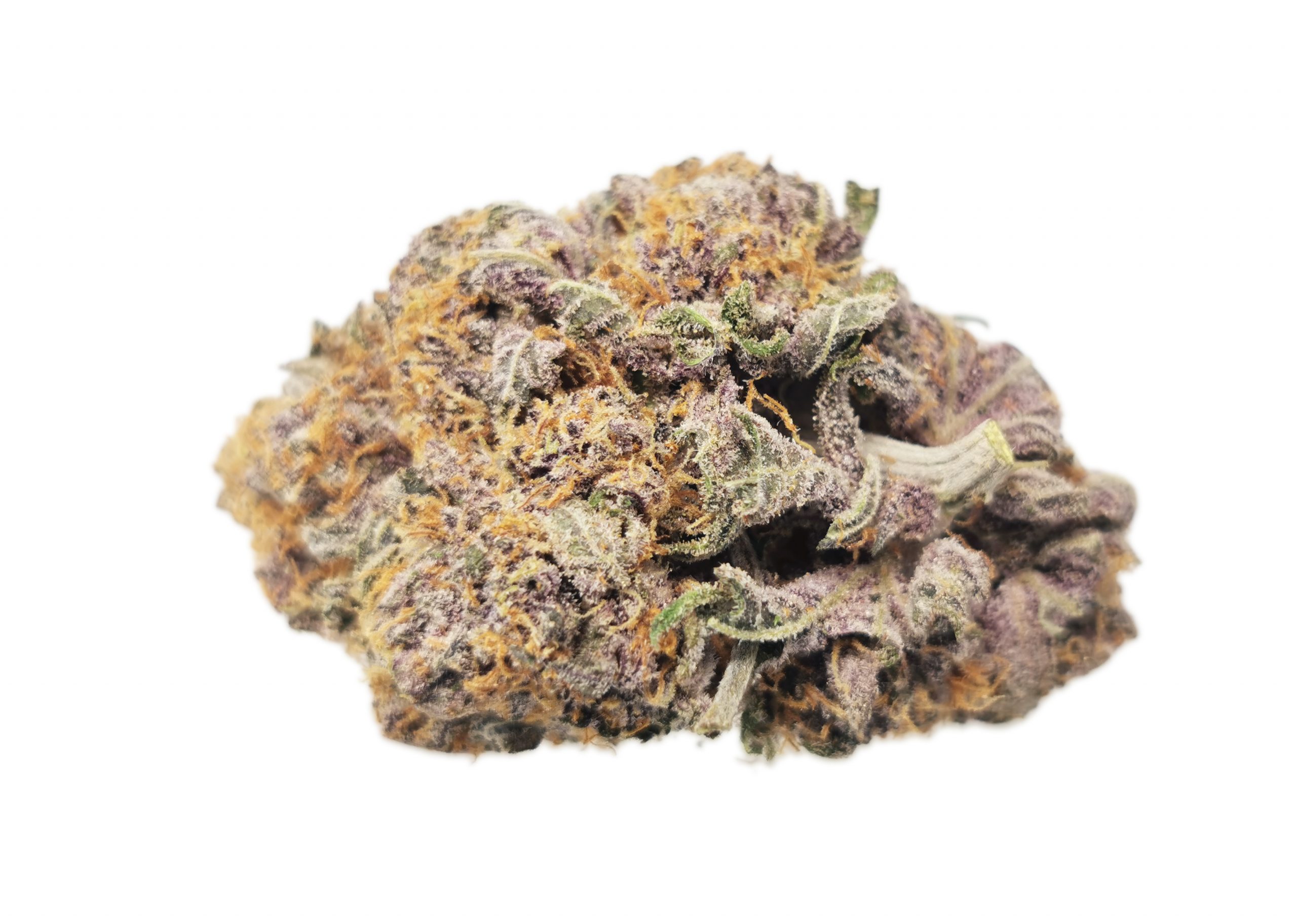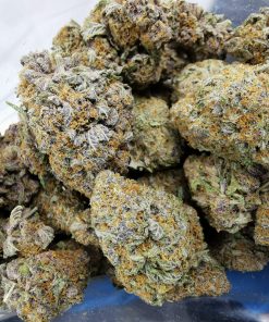 K.E. – Mendo Montage AAAA+ is an evenly balanced hybrid strain (50% indica/50% sativa) created through crossing the classic Mendocino Purps X Crystal Locomotive F1 strains. Known for its super heavy high, Mendo Montage hits mind and body with almost unmatched potency. The high comes on with a super strong effect right out of the gates, launching your mental state into a happy buzz. This will ease away any negative or racing thoughts, leaving you in a hazy bliss. A relaxing body high comes next, slowly building before suddenly taking hold, leaving you immediately couch-locked and totally immovable for hours on end before you finally fade away into a deep and peaceful long lasting sleep. Thanks to these effects and its moderately high 14-16% average THC level, Mendo Montage is often chosen to treat those suffering from conditions such as insomnia, chronic pain, muscle spasms or cramps and depression. This bud has a sweet fruity candy flavor wit ha lightly spicy grape exhale. The aroma is of earthy herbs and flowery grape with a fruity spicy overtone that lingers pleasantly. Mendo Montage buds have tight grape-shaped forest green nugs with light lavender undertones, clear hairs and a coating of lavender-tinted clear crystal trichomes.