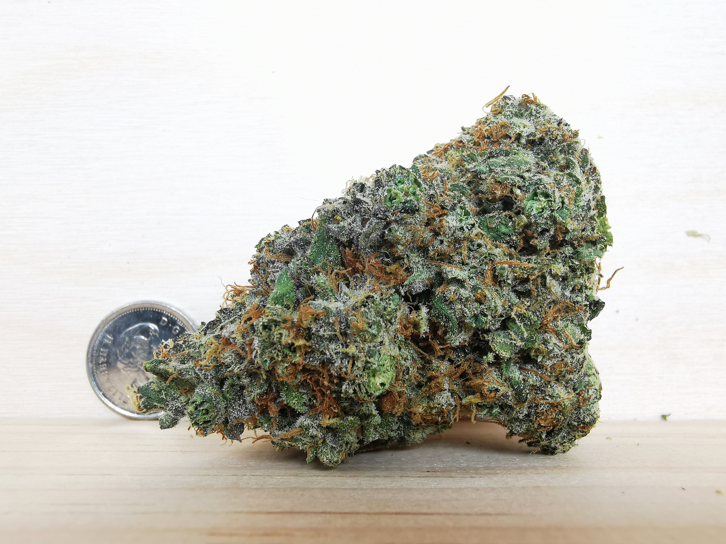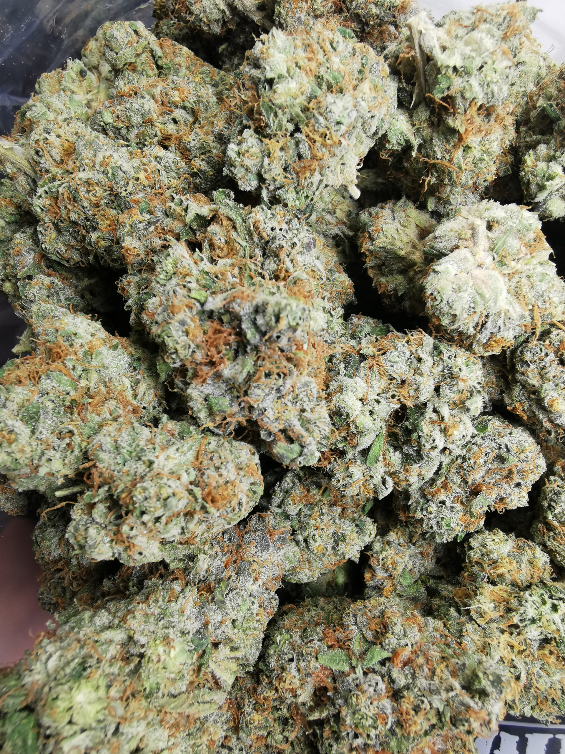 great gas indica strain, light green buds covered with crystal.
