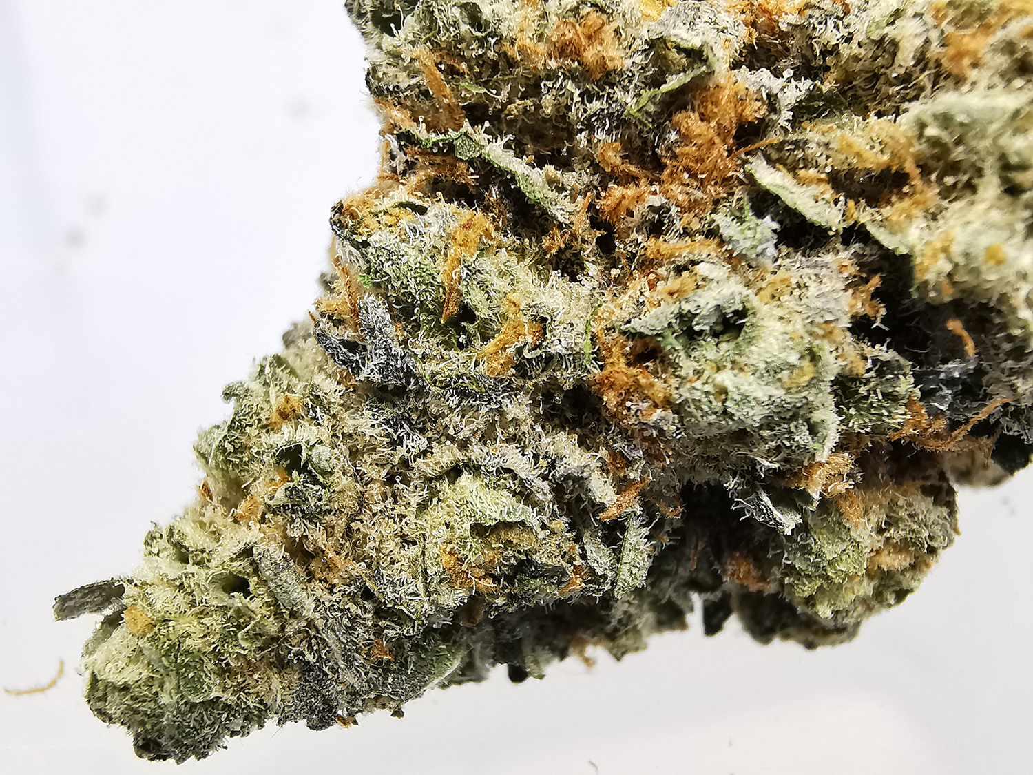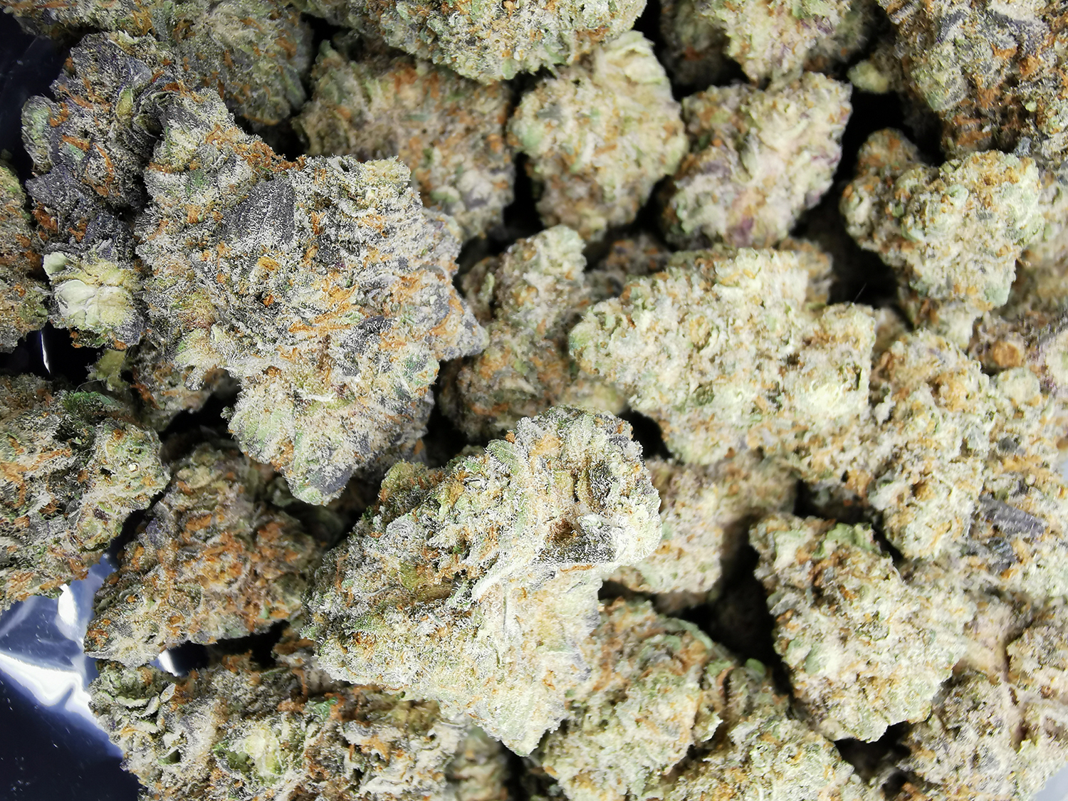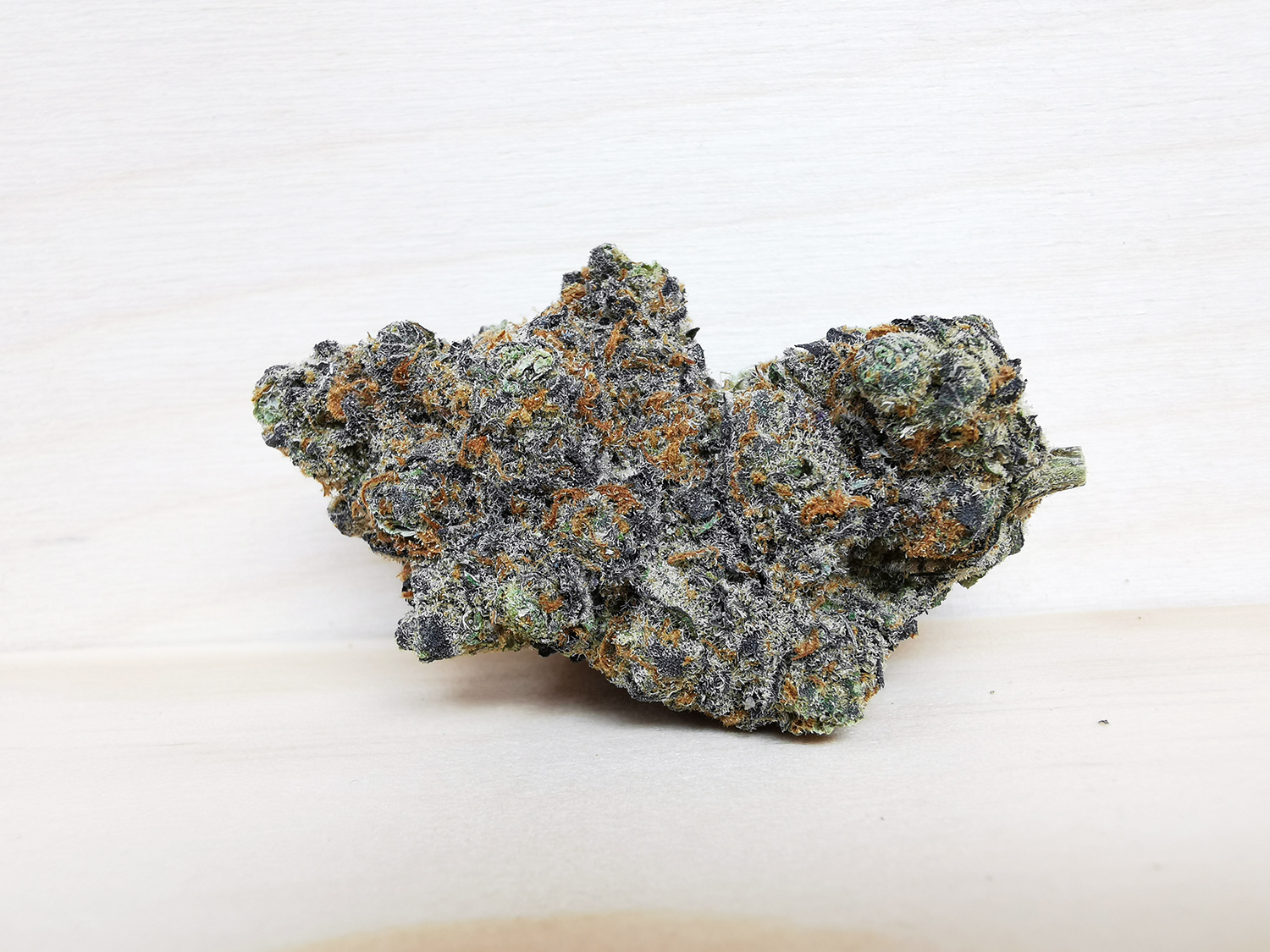 Gelato is a slightly indica dominant hybrid (55% indica/45% sativa) strain created through a cross of the infamous Sunset Sherbet X Thin Mint Girl Scout Cookies strains. This dank bud is infamous for its insanely delicious flavor and hugely powerful effects that are fueled by a THC level that hits its low point at 20% on average. Gelato has a flavor that’s said to be much like a sweet sherbet, with fruity blueberry and orange flavors. The aroma is just as sickly sweet, with a lavender citrus berry bouquet that has a woody effect as the nugs are broken apart and smoked. Although it has a tasty flavor, Gelato is definitely best loved for its effects. Even with its slight indica dominance, the high is head heavy in nature and won’t leave you sedated or couch-locked. It starts with a cerebral head rush that hits you in the forehead with an uplifted euphoria and a sense of slightly focused energy. As this head high blissfully builds, a creeping body buzz will slowly wash over you, leaving you completely relaxed and calm with a sense of peace and well being. These powerful and surprisingly well balanced effects make Gelato the perfect choice for patients suffering from muscle spasms, chronic pain, inflammation, chronic fatigue, and headaches or migraines. Gelato buds have large and lumpy super dense grape-shaped dark forest green nugs with rich purple and orange hairs and a super sticky coating of visible resin droplets.