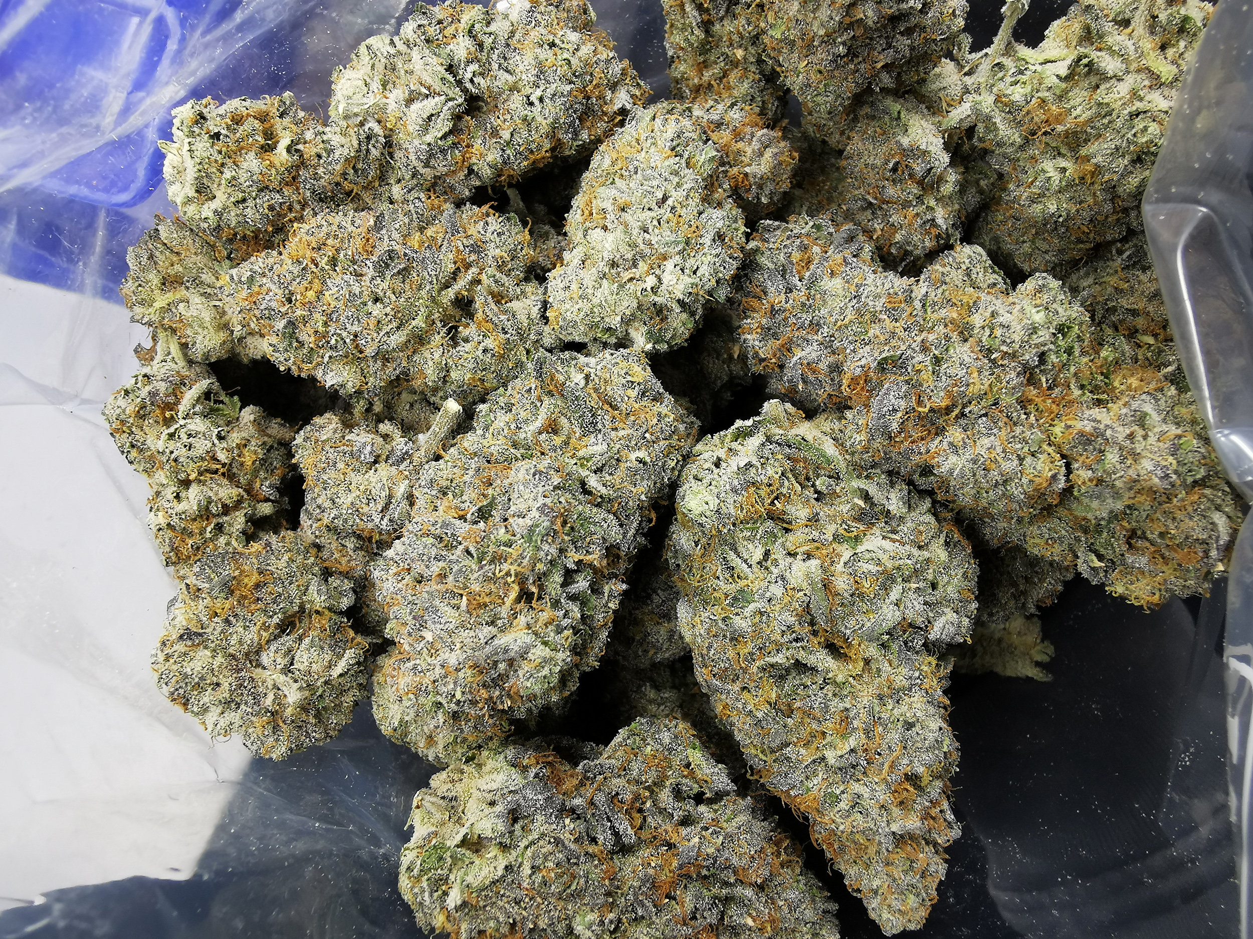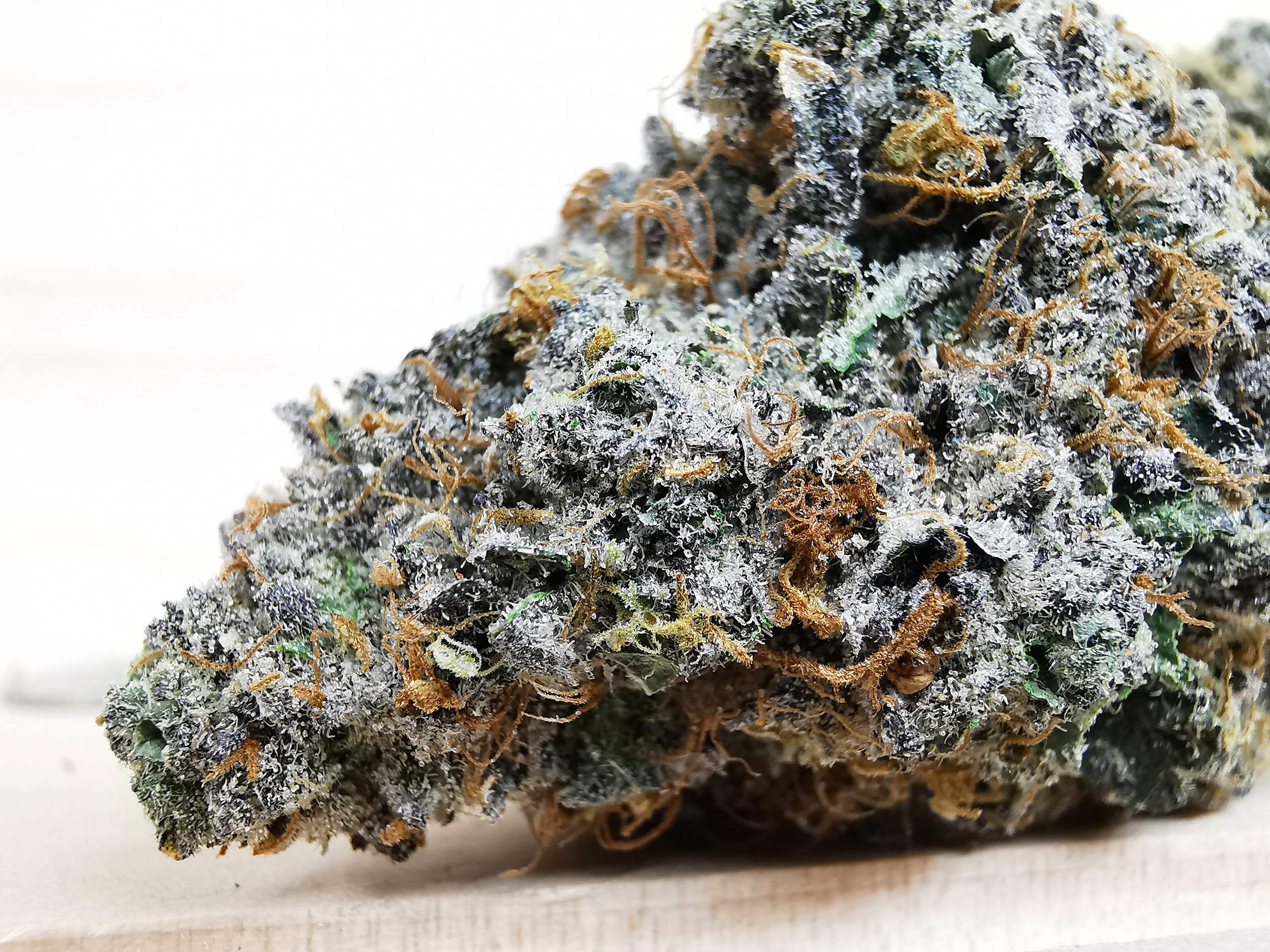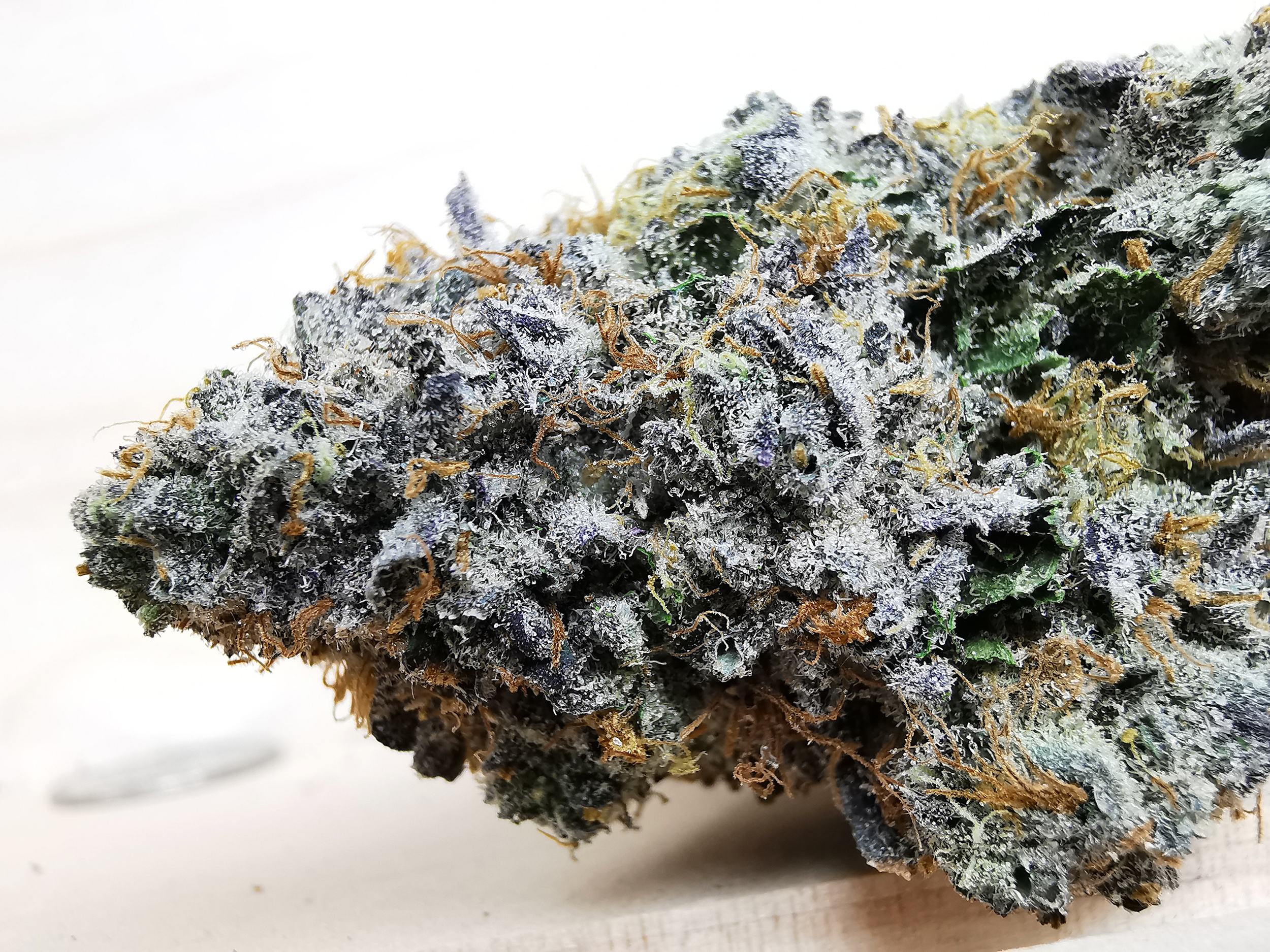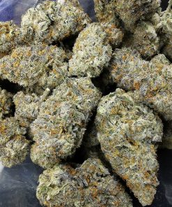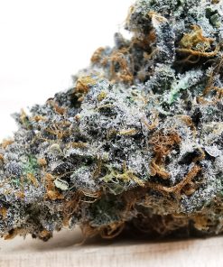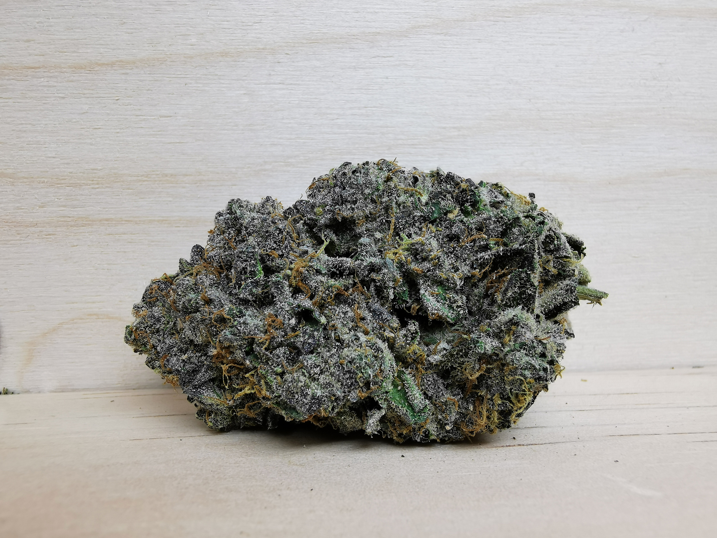 Runtz is an evenly balanced hybrid strain (50% indica/50% sativa) created through a delicious cross of the infamous Zkittlez X Gelato strains. Named for the iconic candy, Runtz brings on a super delicious fruity flavor with tropical citrus and sour berries galore. The aroma is very similar, although with a sharp spicy pineapple effect that turns slightly pungent as the sticky little nugs are broken apart and burned. The Runtz high comes roaring in a few minutes after your final toke, first hitting your head with a calming lift before spreading its tingly tendrils throughout the rest of your body. As the Runtz high expands, you’ll begin to feel a deeply calming effect spread through your limbs, leaving you totally sedated and couch-locked, immovable for hours and hours on end before you finally fall into a deep and peaceful sleep. Thanks to these effects and its super high 19-29% average THC level, Runtz is often said to be perfect for treating conditions such as insomnia, chronic pain, appetite loss or nausea and chronic stress or anxiety. This bud has dense grape-shaped olive green nugs with thin orange hairs, dark purple undertones and a coating of frosty tiny white purple-tinted crystal trichomes.