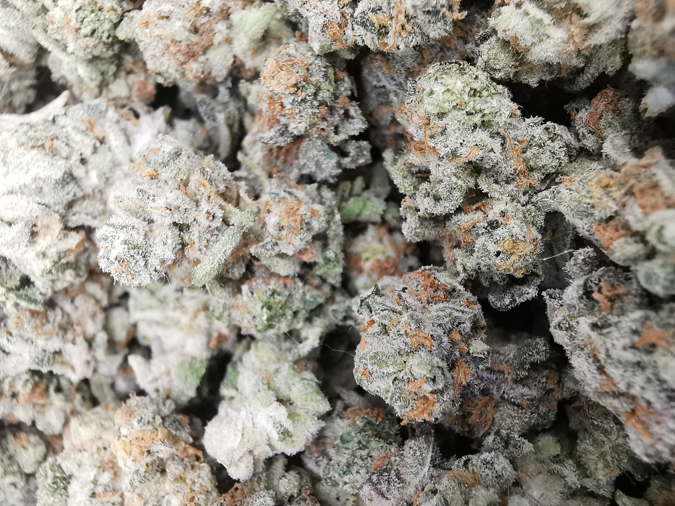 MAC, also known as “Miracle Alien Cookies,” is an evenly balanced hybrid strain (50% indica/50% sativa) created through crossing the infamous Alien Cookies X (Colombian X Starfighter) strains. Perfect for any hybrid lover who appreciates a super heavy flavor and high, MAC brings on the hard-hitting effects that will have you feeling totally happy with the world around you in no time at all. It starts with a rush of heady effects that fill your mind with a sense of happy creativity and pure euphoria. This is accompanied by a deep-felt relaxation that permeates your very being, leaving you totally calm in both mind and body without a care or pain in the world. Thanks to these effects and its high 14-20% average THC level, MAC is said to be perfect for treating those suffering from conditions such as insomnia, appetite loss or nausea, chronic stress, depression, chronic pain and mood swings. This bud has a dank sour citrus flavor with a spicy earthy overtone that sweetens upon exhale. The aroma is of earthy herbs and pungent diesel, all wrapped up in a sour dank overtone that fills any room with its heavy stench. MAC buds have super sticky long grape-shaped minty green nugs with sparse orange hairs and a coating of tiny white crystal trichomes.