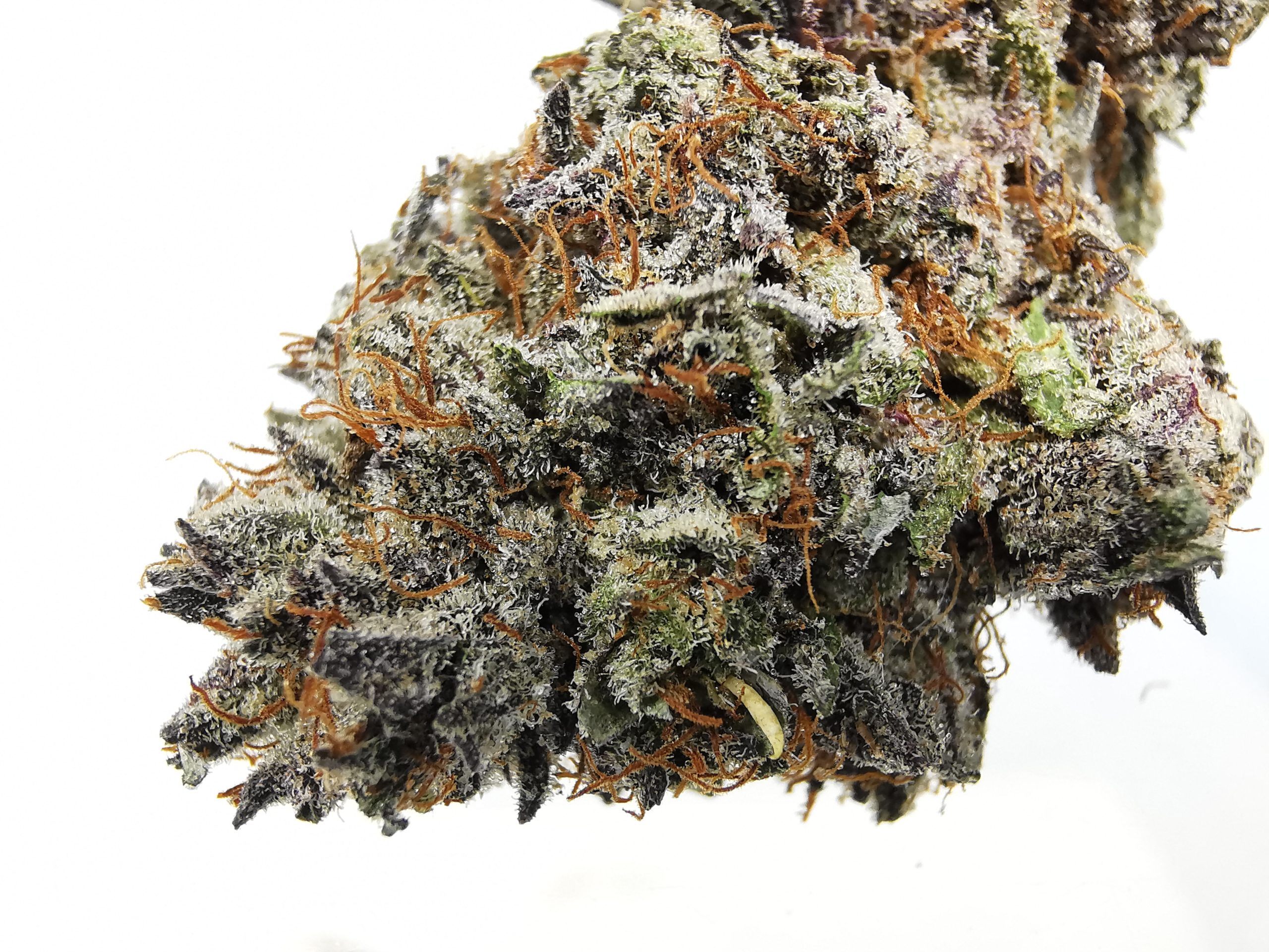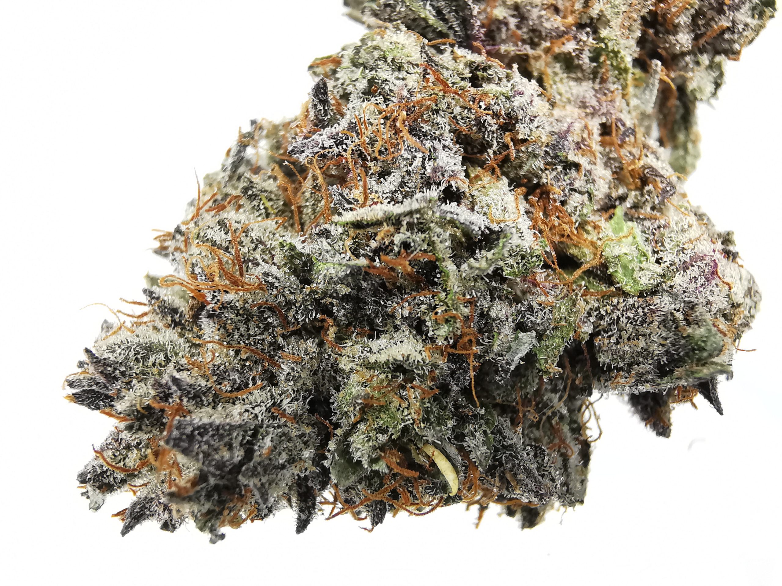 Mandalorian is a super rare indica dominant hybrid strain. If you’re looking for a high to stimulate a nonexistent appetite or lift dampened spirits, you’ve found it! Mandalorian brings a full-bodied high to the table that will leave you ravenous and in good spirits long after your last toke. You’ll feel a rush of creative energy first that doesn’t do much in terms of productivity but will leave you daydreaming with blissful colorful visions. As your mind falls into this introspective almost psychoactive state, a tingle will start to spread from limb to limb before transforming into a body high and pulling you down into a state of couch-lock. As your entire body settles into deep relaxation, your stomach will take hold, leaving you reaching for anything edible in the area, never satisfied with what you find. These effects and its high THC level that bottoms out at 28% make Mandalorian perfect to treat appetite disorders, chronic pain, depression, and stress. It has a sweet sugary cherry flavor and smell with hints of rich skunky coffee on each smooth exhale. Mandalorian buds have lumpy light green nugs with purplish undertones, furry amber hairs, and a thick frosty coating of bright white trichomes.