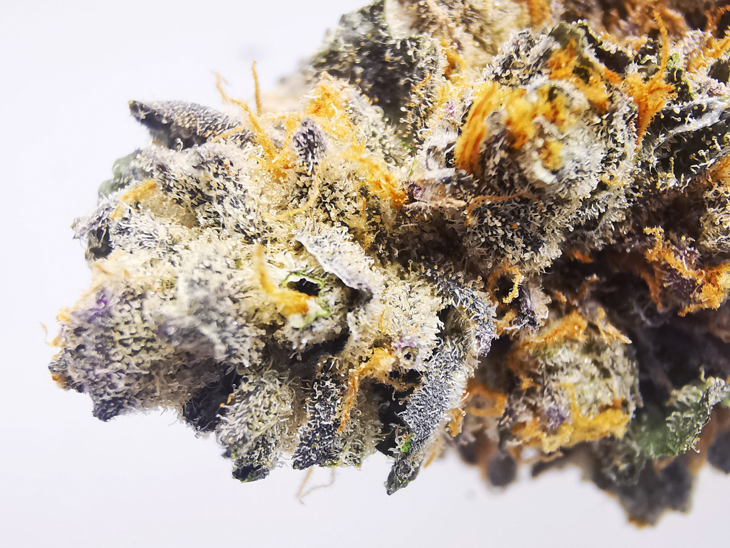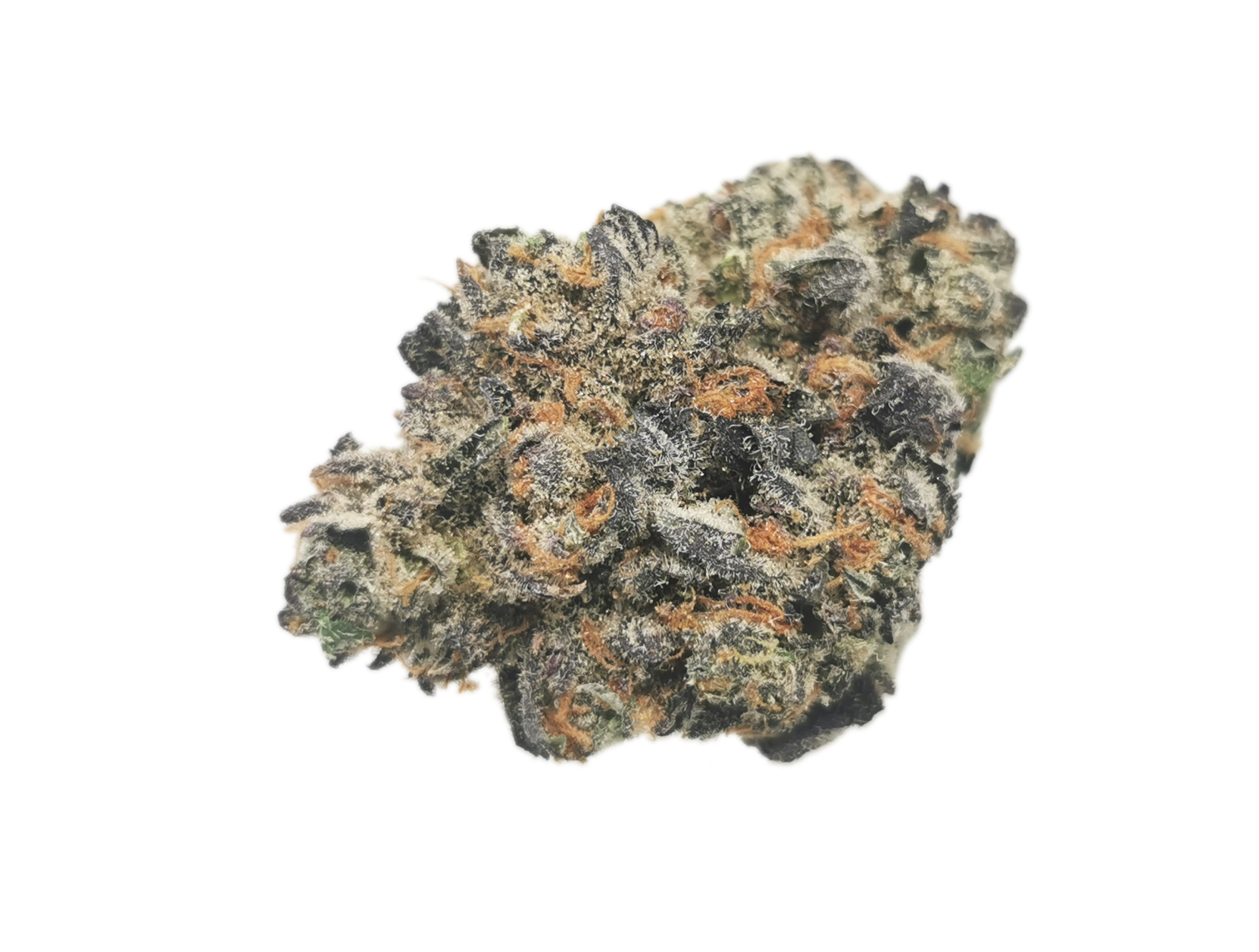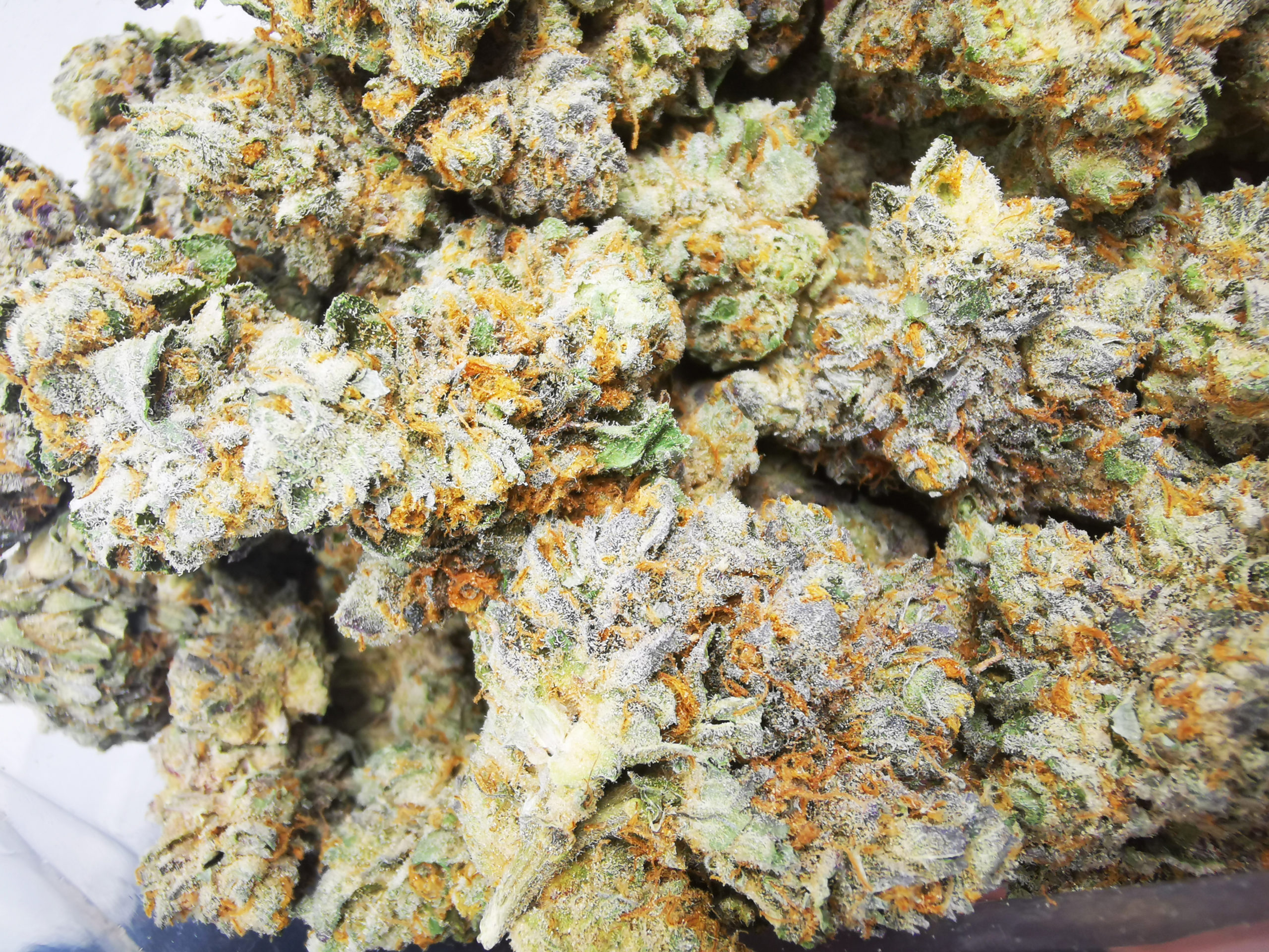 Amazing Hybrid strain by Kootenayz Exoticz, Big Dense funky looking purple and orange looking nugs with intense pungent and pine aroma.
